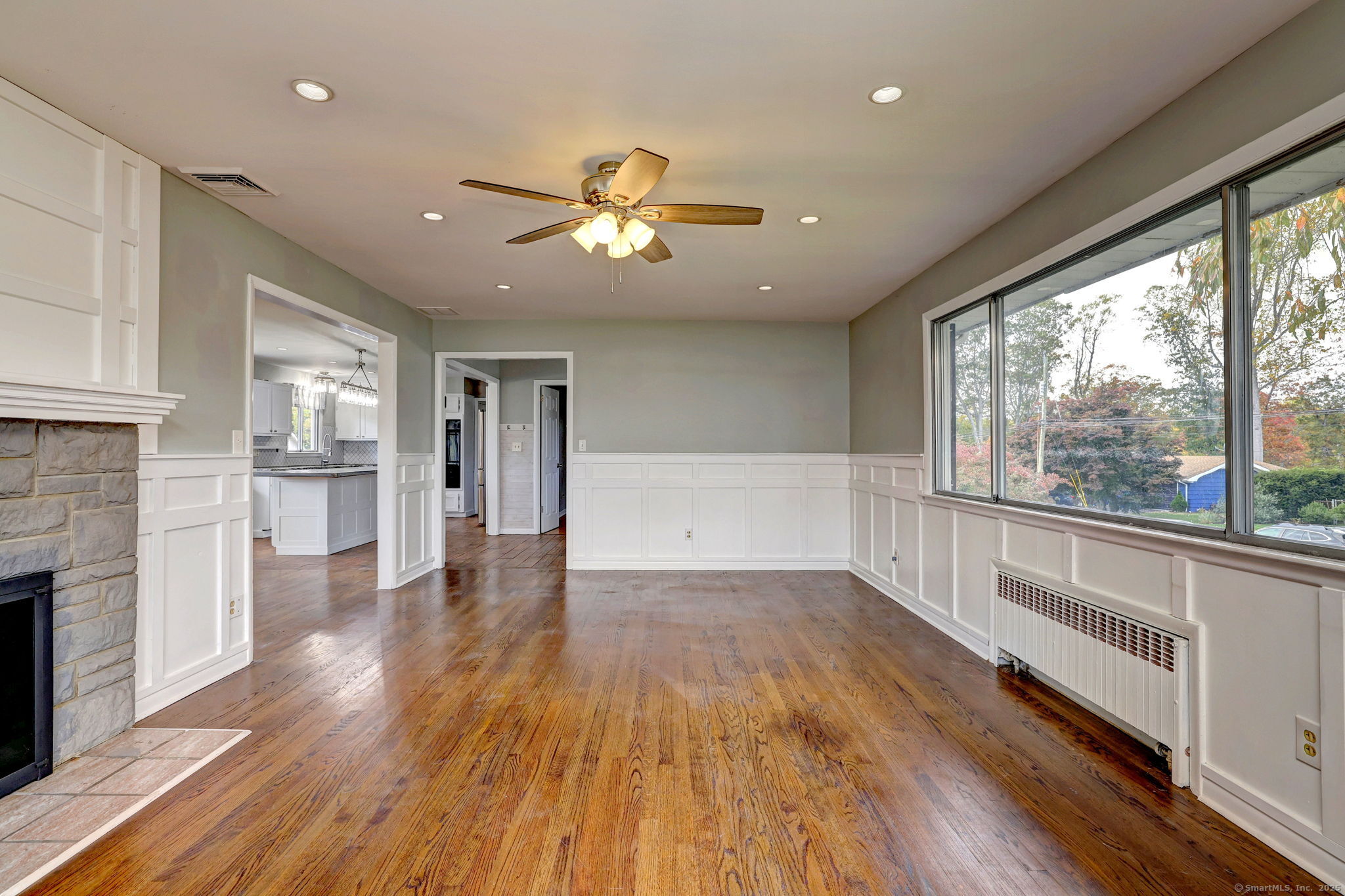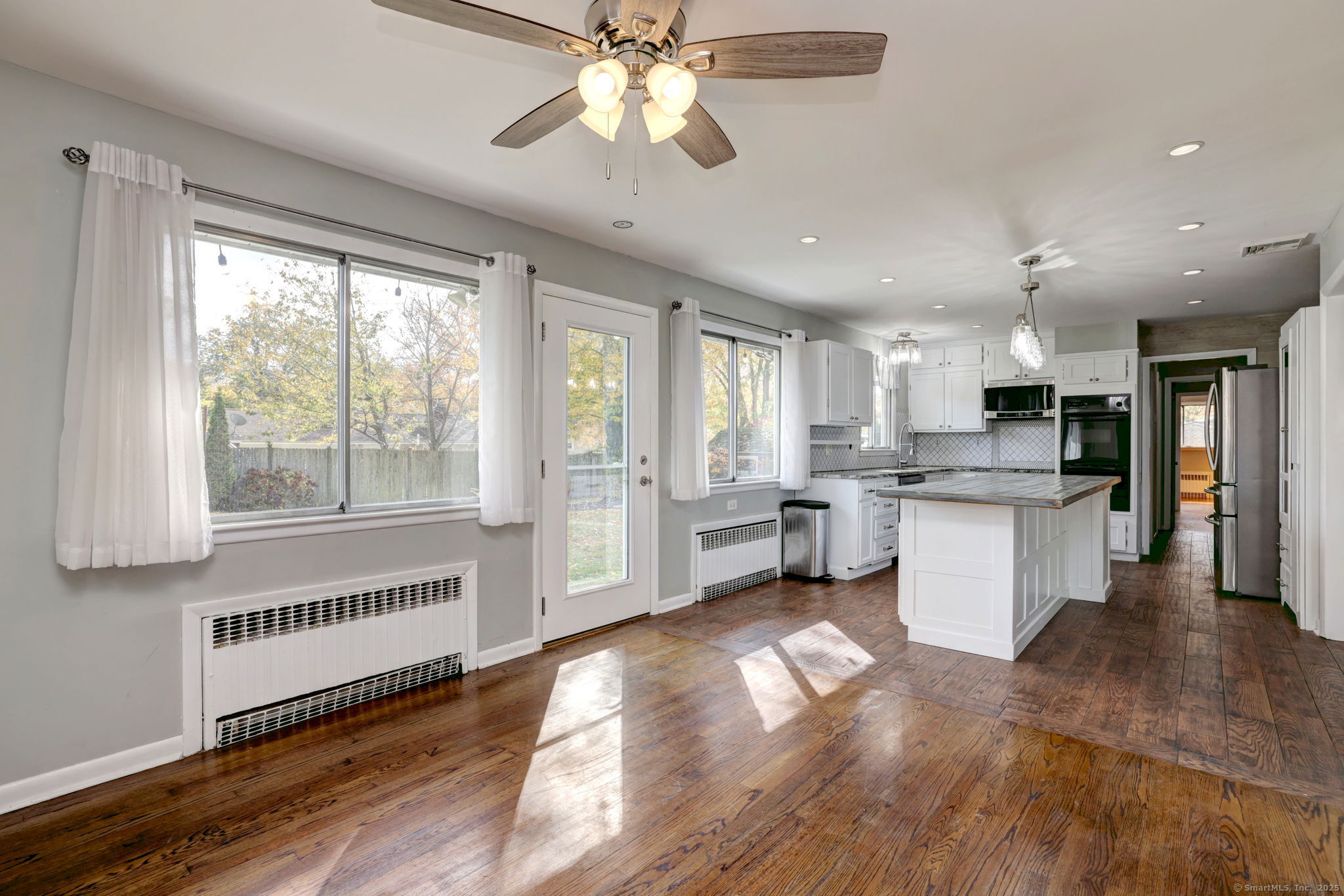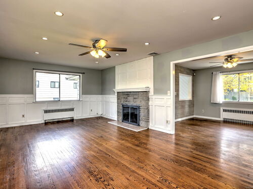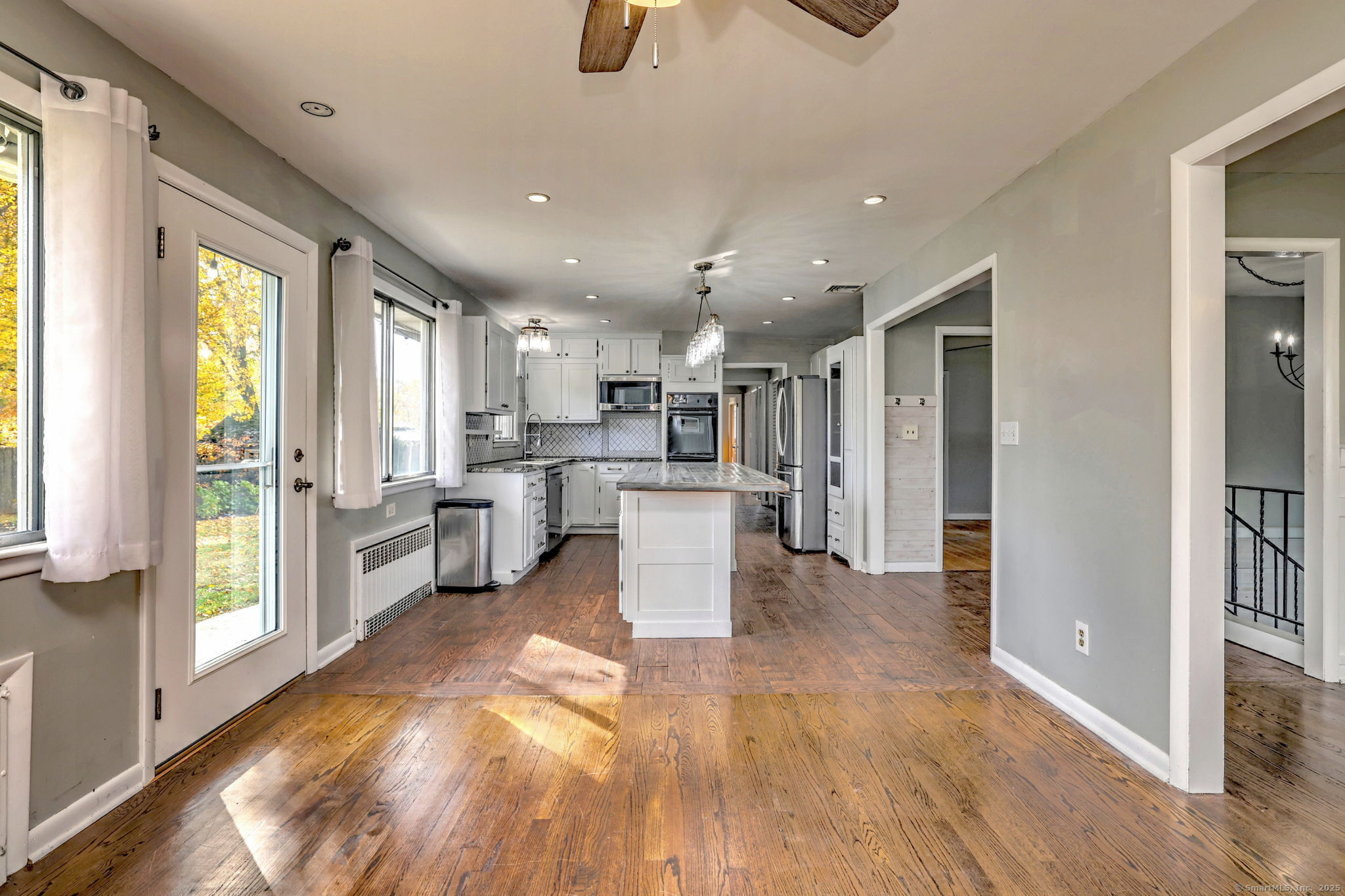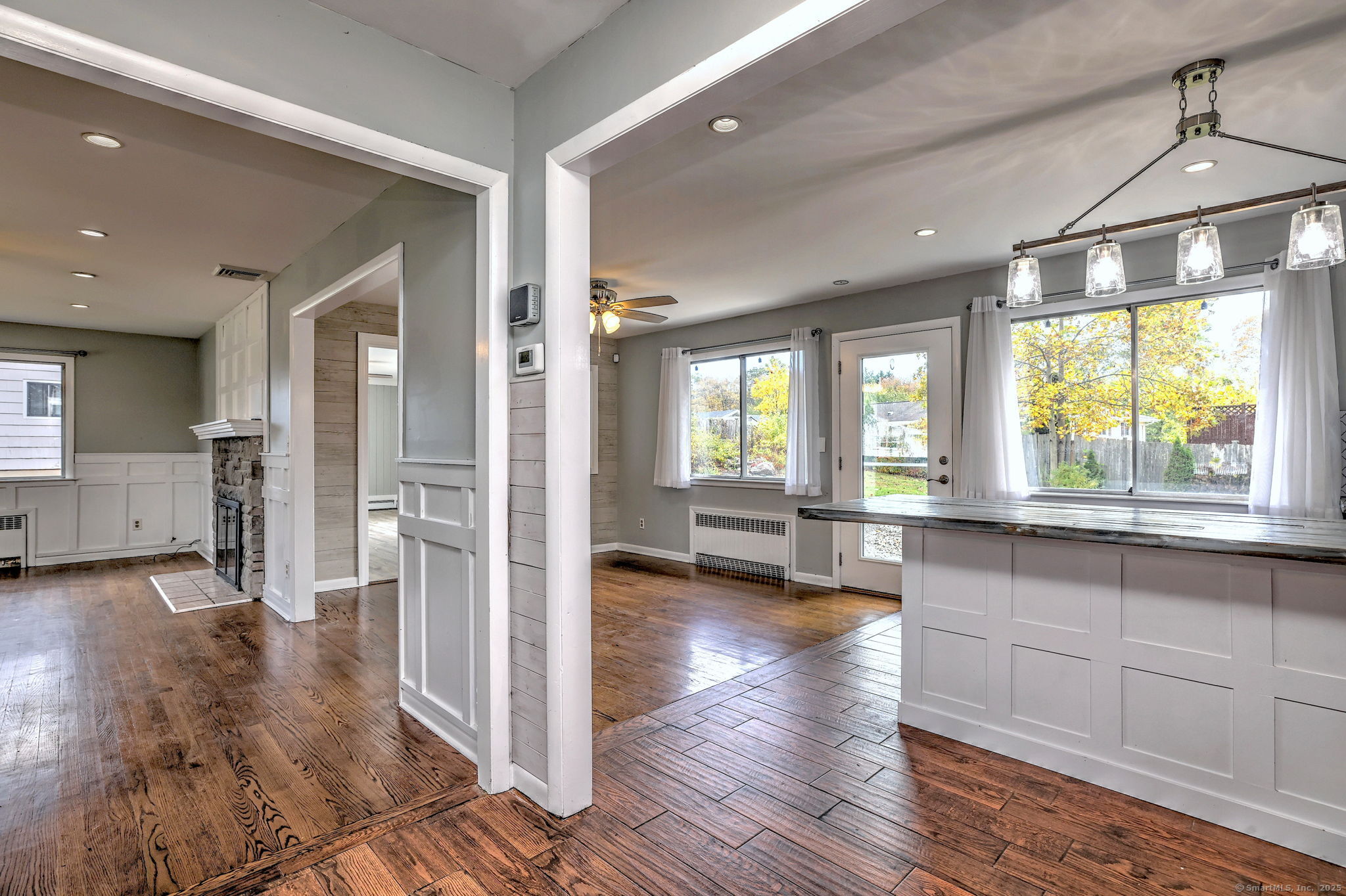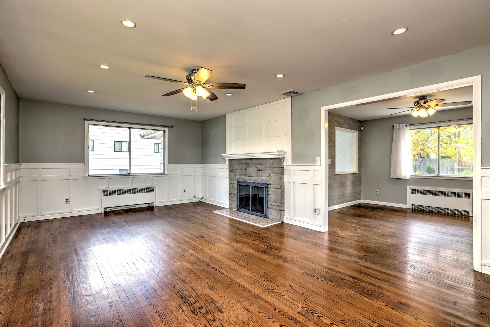 Welcome to this beautifully maintained 4-5 bedroom, 2 full bath ranch-style home located in the sought-after North End of Stratford. Boasting over 2,000 sq ft of main-level living space and an additional 756 sq ft of finished lower-level flex space, this home offers room for everyone and every need. Step into a bright and inviting living room featuring gleaming hardwood floors, a cozy fireplace, and abundant natural light. The open floor plan flows seamlessly into the eat-in kitchen, complete with a large island, generous cabinet and pantry space, and an adjacent dining area-perfect for entertaining or everyday living. A door from the kitchen leads to a back patio, ideal for outdoor dining and relaxation. Just off the kitchen, a versatile bonus room with sliders to the patio can serve as a formal dining room, home office, or playroom. Down the hall, you'll find three spacious bedrooms, two full bathrooms, and a convenient laundry room with direct access to the backyard. The fourth bedroom, located at the front of the house, is perfect for guests or a quiet office space. The finished lower level offers endless possibilities-additional bedroom, a rec room, office space, or even an in-law setup. Additional features include central air, solar panels, and hardwood flooring throughout most of the main level. Enjoy the peace and privacy of a quiet neighborhood with a flat, spacious backyard-ideal for gatherings, gardening, or play. Time to make this beautiful house your new home!