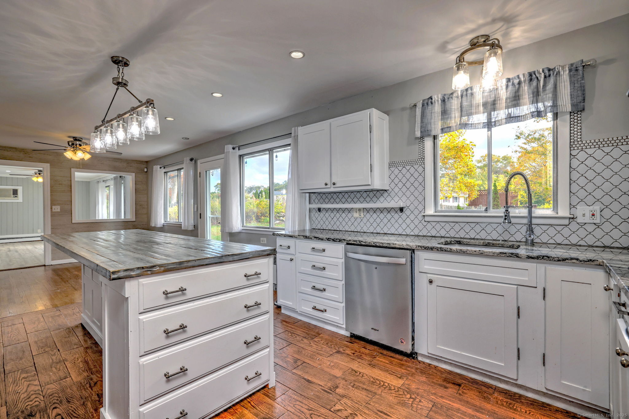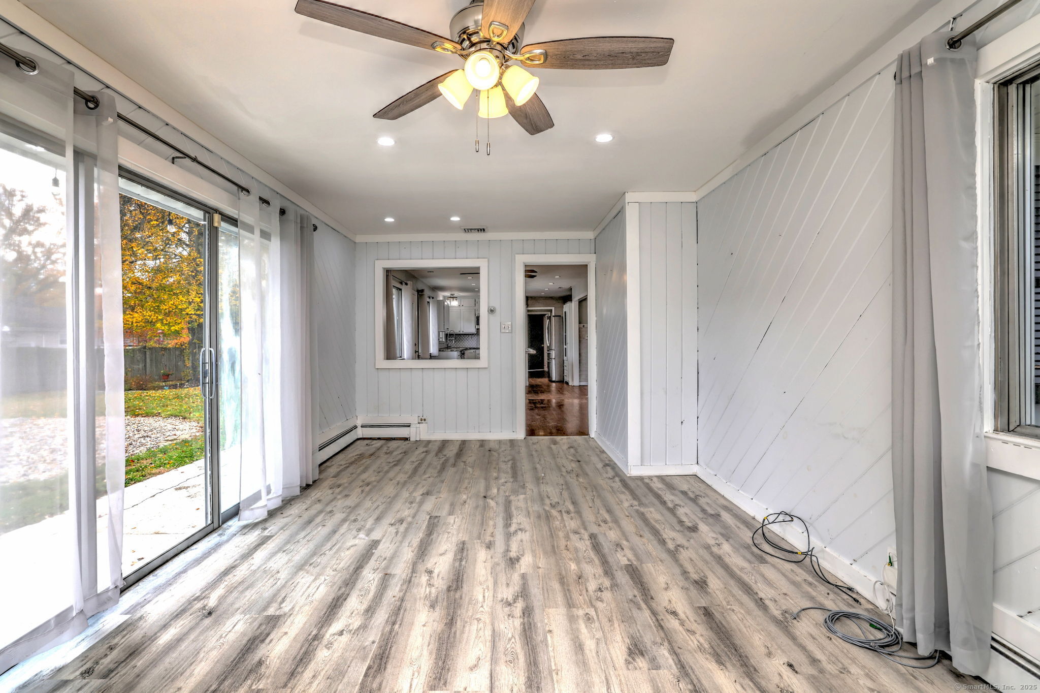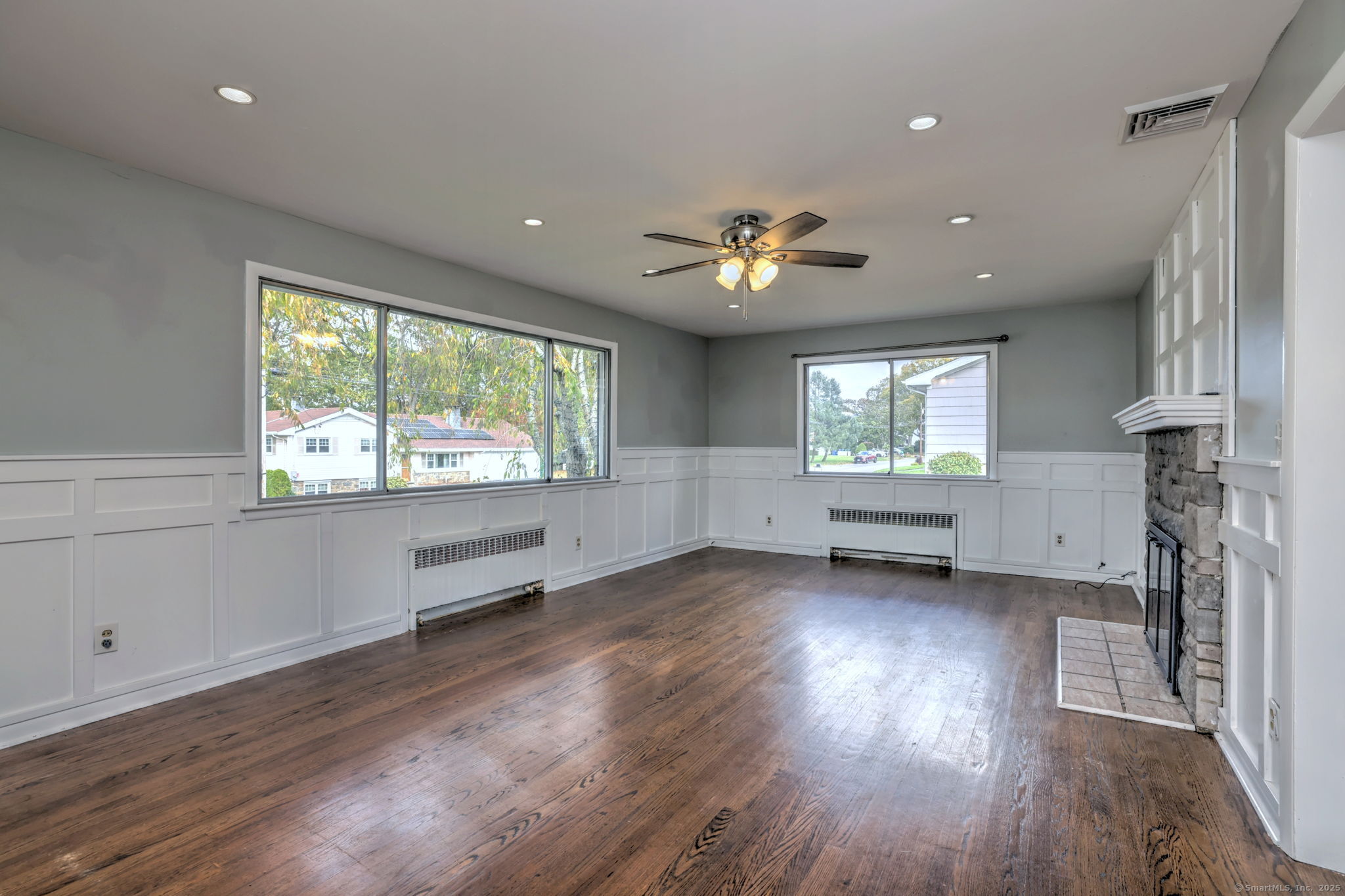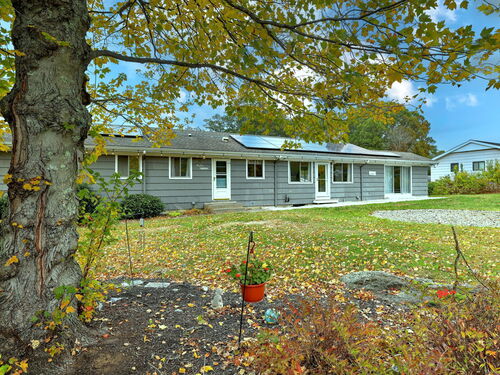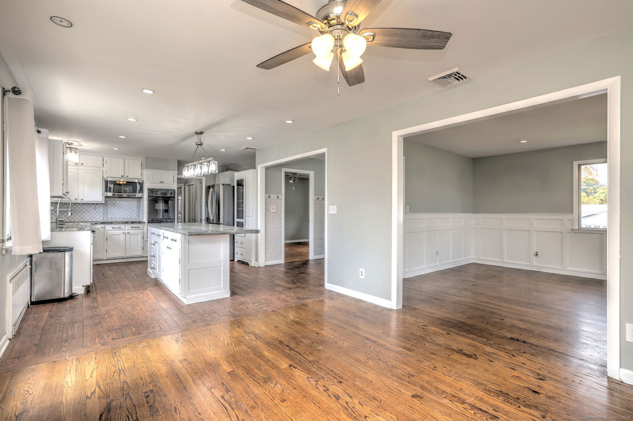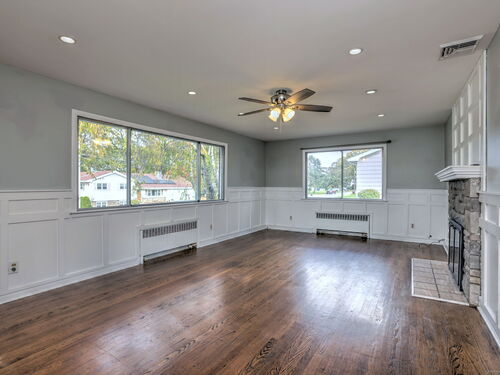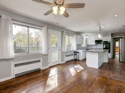 Welcome to this beautifully maintained 4-5 bedroom, 2 full bath ranch-style home located in the sought-after North End of Stratford. Boasting over 2,000 sq ft of main-level living space and an additional 756 sq ft of finished lower-level flex space, this home offers room for everyone and every need. Step into a bright and inviting living room featuring gleaming hardwood floors, a cozy fireplace, and abundant natural light. The open floor plan flows seamlessly into the eat-in kitchen, complete with a large island, generous cabinet and pantry space, and an adjacent dining area-perfect for entertaining or everyday living. A door from the kitchen leads to a back patio, ideal for outdoor dining and relaxation. Just off the kitchen, a versatile bonus room with sliders to the patio can serve as a formal dining room, home office, or playroom. Down the hall, you'll find three spacious bedrooms, two full bathrooms, and a convenient laundry room with direct access to the backyard. The fourth bedroom, located at the front of the house, is perfect for guests or a quiet office space. The finished lower level offers endless possibilities-additional bedroom, a rec room, office space, or even an in-law setup. Additional features include central air, solar panels, and hardwood flooring throughout most of the main level. Enjoy the peace and privacy of a quiet neighborhood with a flat, spacious backyard-ideal for gatherings, gardening, or play. Time to make this beautiful house your new home!