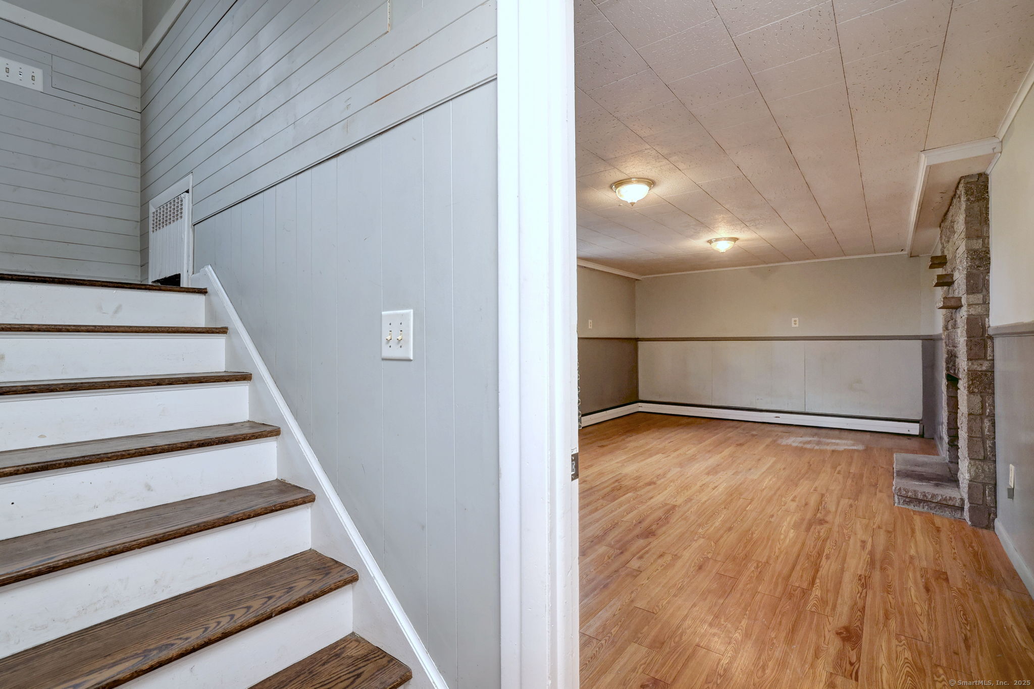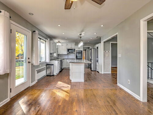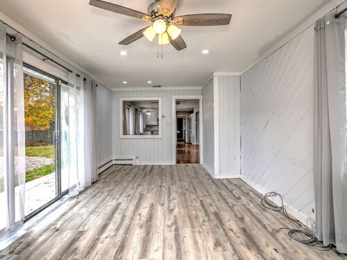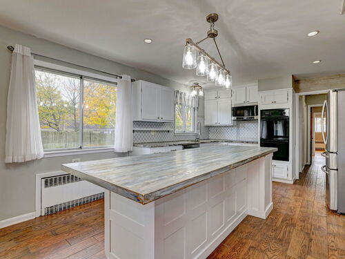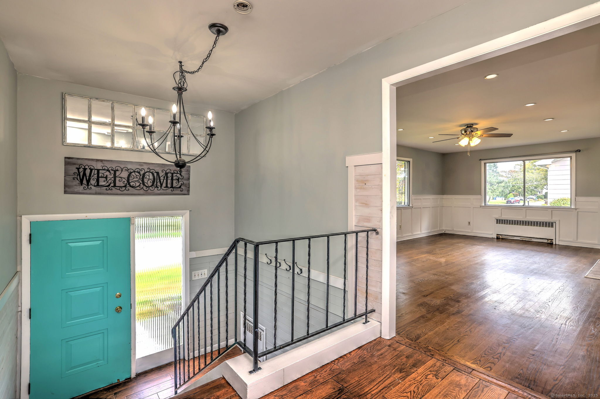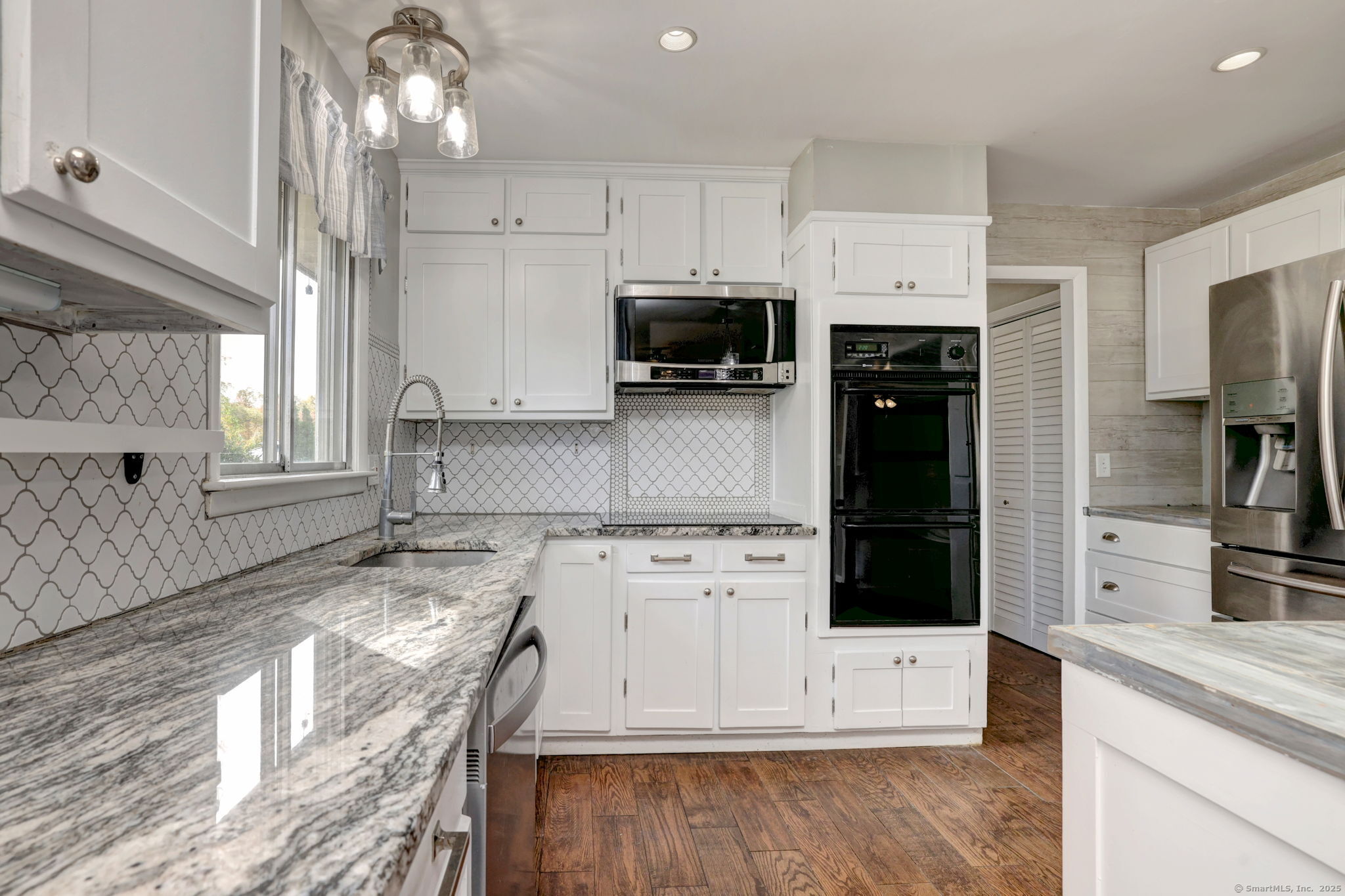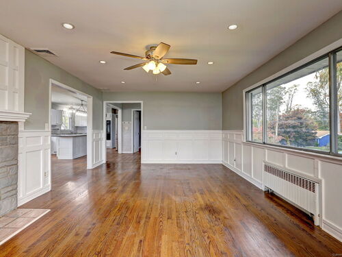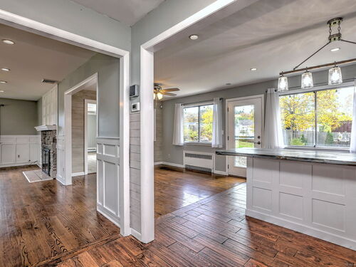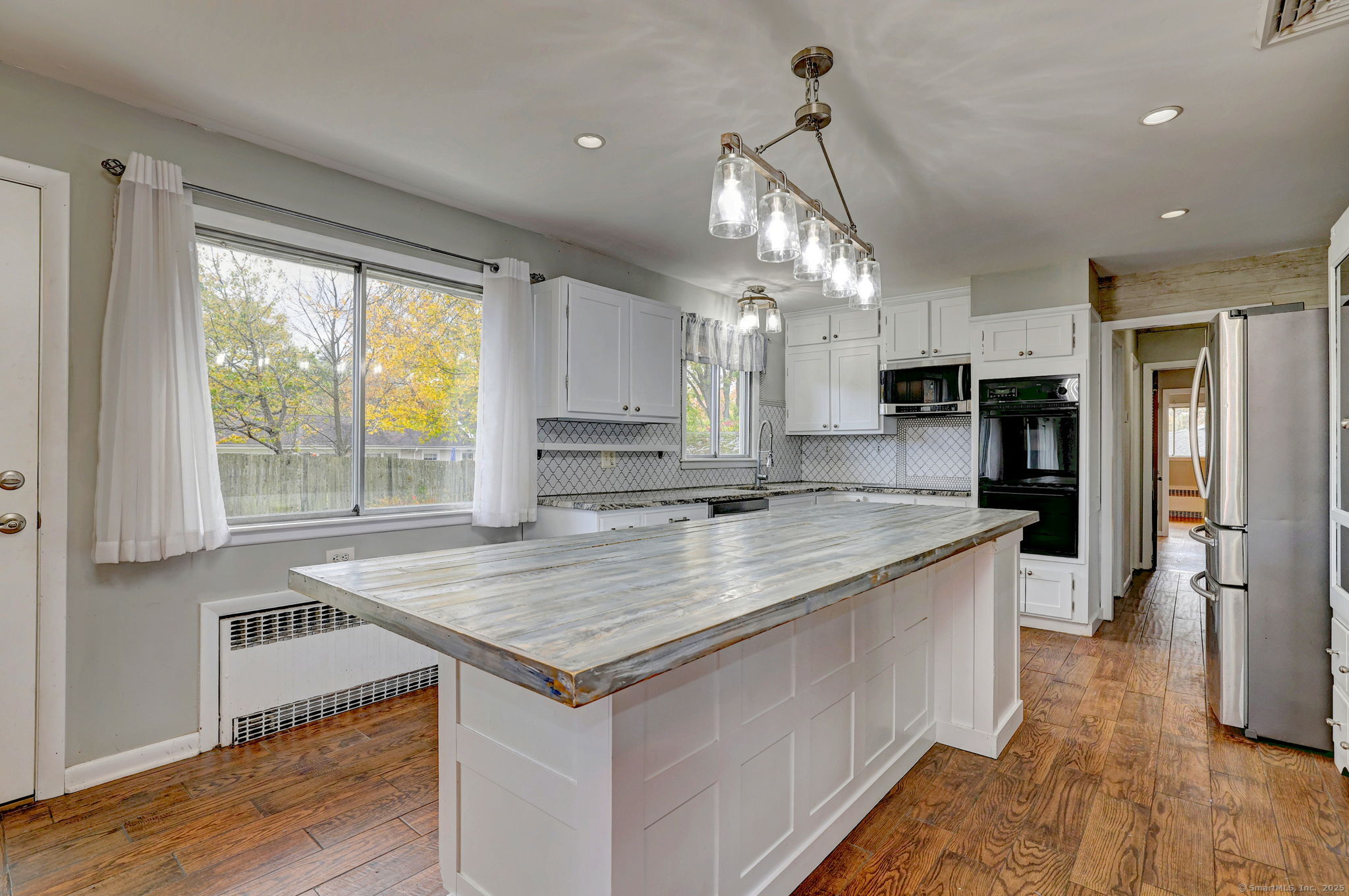 Welcome to this beautifully maintained 4-5 bedroom, 2 full bath ranch-style home located in the sought-after North End of Stratford. Boasting over 2,000 sq ft of main-level living space and an additional 756 sq ft of finished lower-level flex space, this home offers room for everyone and every need. Step into a bright and inviting living room featuring gleaming hardwood floors, a cozy fireplace, and abundant natural light. The open floor plan flows seamlessly into the eat-in kitchen, complete with a large island, generous cabinet and pantry space, and an adjacent dining area-perfect for entertaining or everyday living. A door from the kitchen leads to a back patio, ideal for outdoor dining and relaxation. Just off the kitchen, a versatile bonus room with sliders to the patio can serve as a formal dining room, home office, or playroom. Down the hall, you'll find three spacious bedrooms, two full bathrooms, and a convenient laundry room with direct access to the backyard. The fourth bedroom, located at the front of the house, is perfect for guests or a quiet office space. The finished lower level offers endless possibilities-additional bedroom, a rec room, office space, or even an in-law setup. Additional features include central air, solar panels, and hardwood flooring throughout most of the main level. Enjoy the peace and privacy of a quiet neighborhood with a flat, spacious backyard-ideal for gatherings, gardening, or play. Time to make this beautiful house your new home!