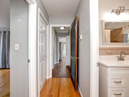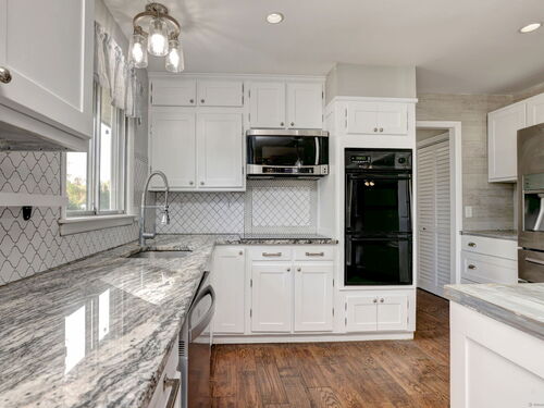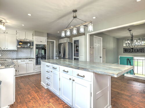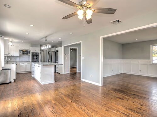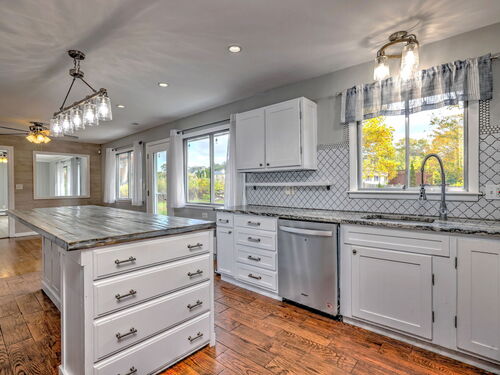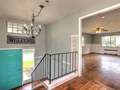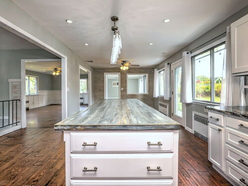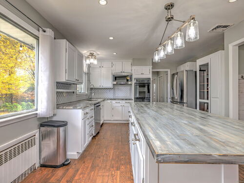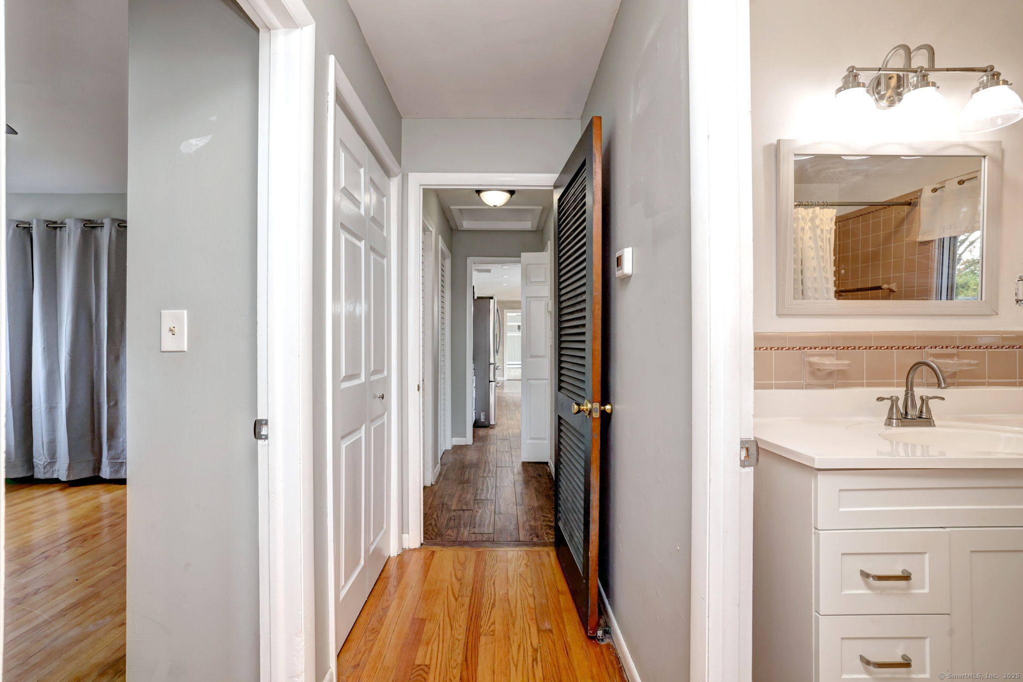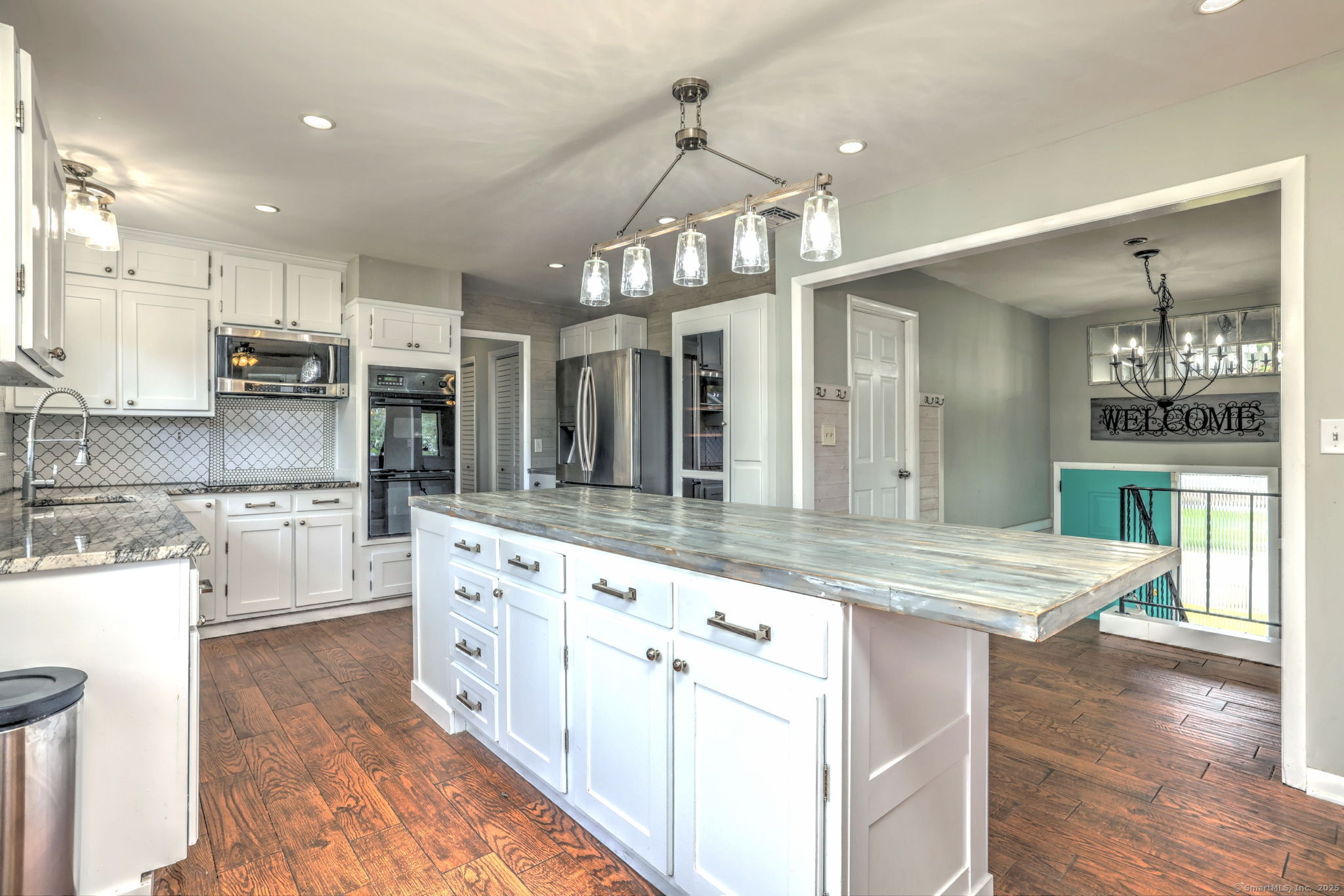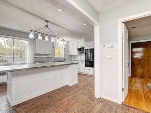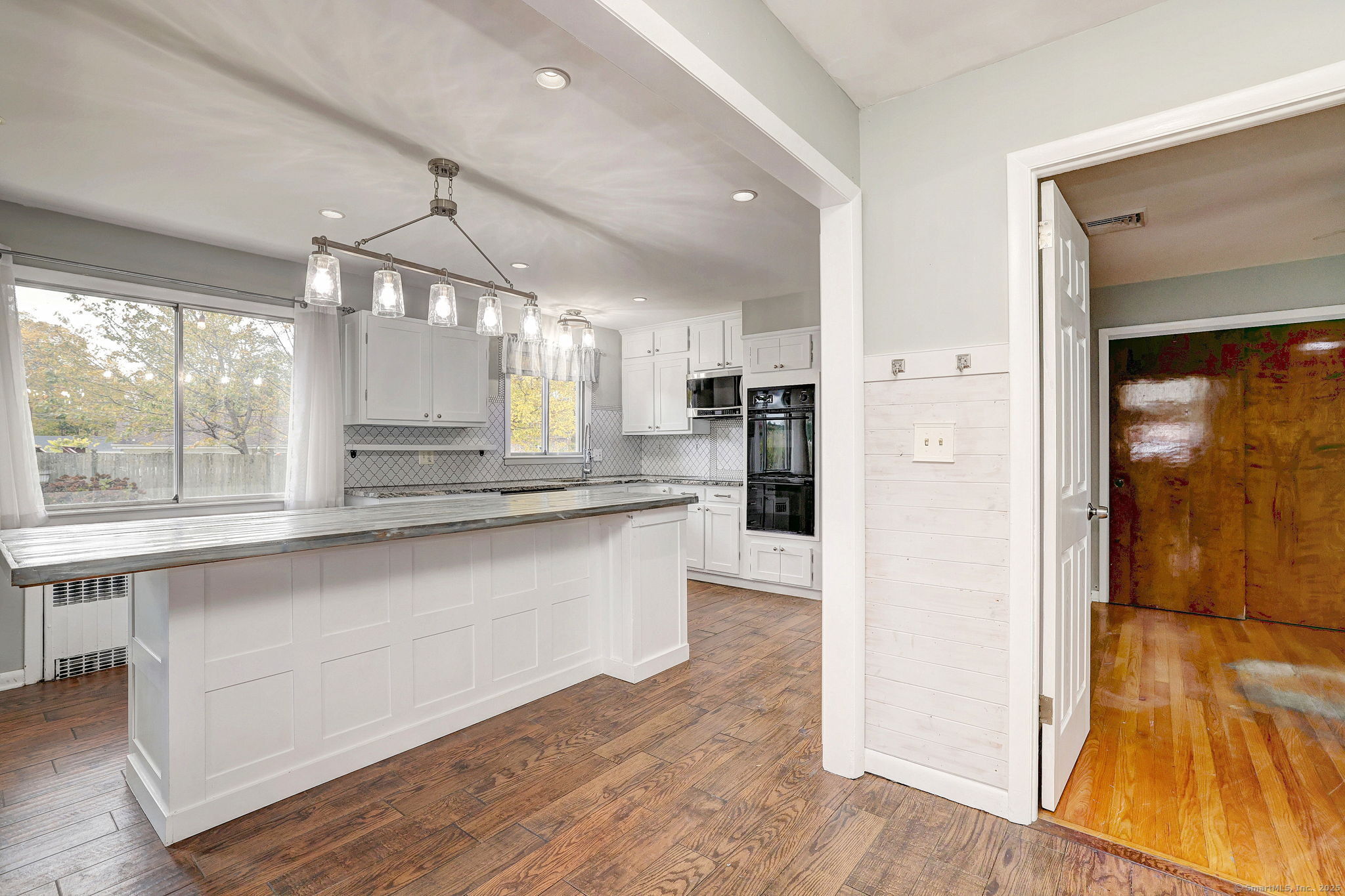 Welcome to this beautifully maintained 4-5 bedroom, 2 full bath ranch-style home located in the sought-after North End of Stratford. Boasting over 2,000 sq ft of main-level living space and an additional 756 sq ft of finished lower-level flex space, this home offers room for everyone and every need. Step into a bright and inviting living room featuring gleaming hardwood floors, a cozy fireplace, and abundant natural light. The open floor plan flows seamlessly into the eat-in kitchen, complete with a large island, generous cabinet and pantry space, and an adjacent dining area-perfect for entertaining or everyday living. A door from the kitchen leads to a back patio, ideal for outdoor dining and relaxation. Just off the kitchen, a versatile bonus room with sliders to the patio can serve as a formal dining room, home office, or playroom. Down the hall, you'll find three spacious bedrooms, two full bathrooms, and a convenient laundry room with direct access to the backyard. The fourth bedroom, located at the front of the house, is perfect for guests or a quiet office space. The finished lower level offers endless possibilities-additional bedroom, a rec room, office space, or even an in-law setup. Additional features include central air, solar panels, and hardwood flooring throughout most of the main level. Enjoy the peace and privacy of a quiet neighborhood with a flat, spacious backyard-ideal for gatherings, gardening, or play. Time to make this beautiful house your new home!