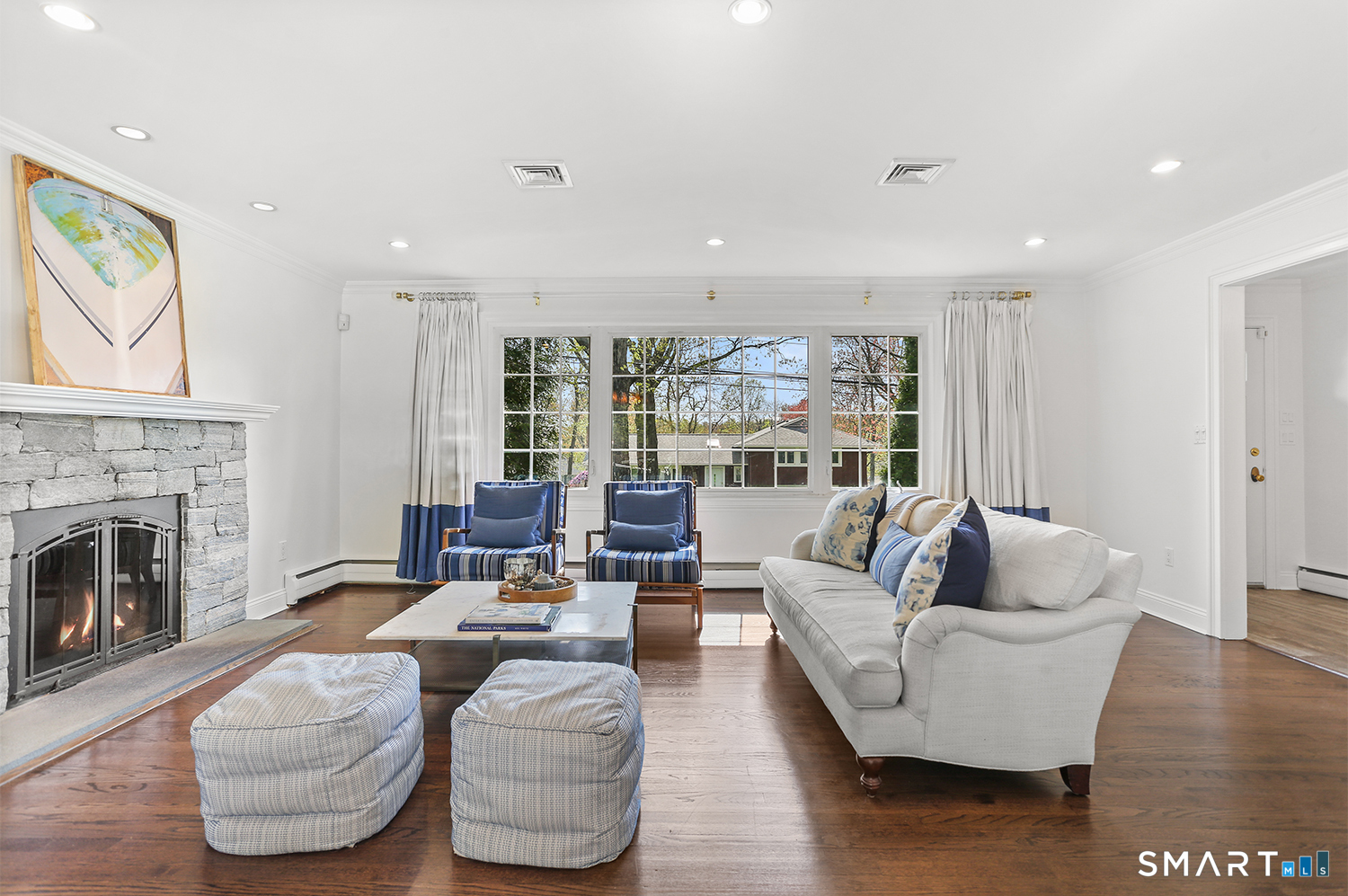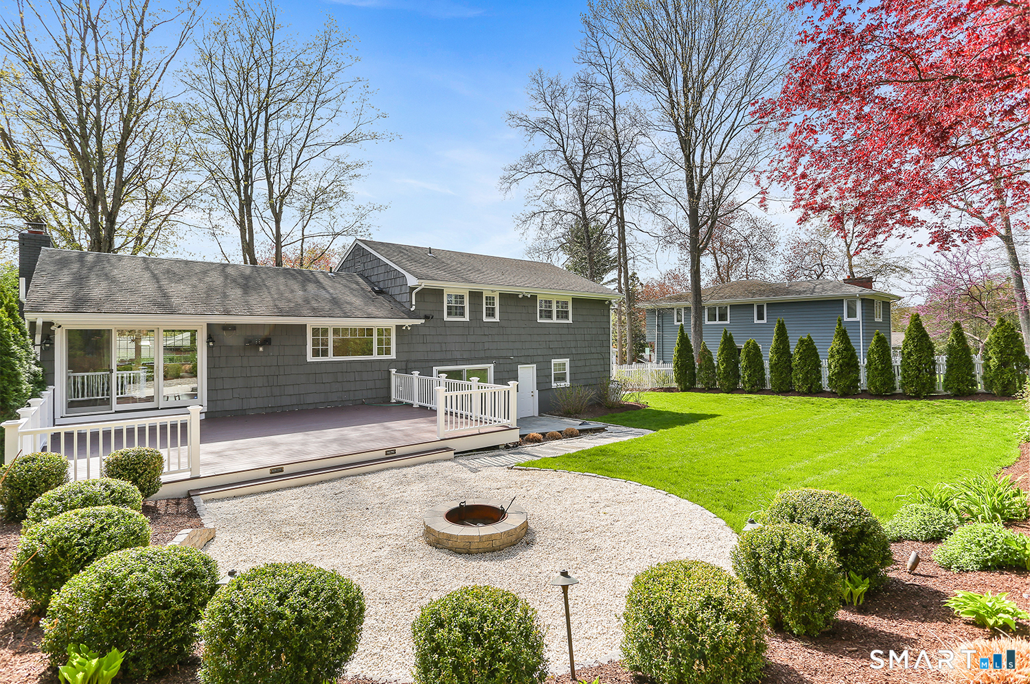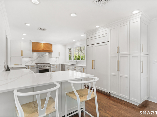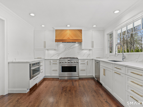 Turnkey multi-level 4-Bedroom, 2 1/2 Bath Home located on a tree-lined street in the quiet North Stratfield Neighborhood. Entertaining is a breeze welcoming guests into a spacious living room with wood burning fireplace, separate dining room and a powder room on main level. Completely remodeled kitchen (2020) with quartz countertops and stainless-steel appliances. Sunny and bright with large window overlooking a sprawling yard on .3 acres. Four sizable bedrooms -including a primary bedroom en suite just a few steps up give privacy from your day to day - and is equipped 2 full bathrooms. Just a few steps down from main level is a family room with separate laundry/mudroom and access to a 2-car garage. Private yard is a beautiful, lush oasis surrounded by arborvitaes, mature greeneries, meticulous landscaping and a wildlife fence. Entertain three - even all four seasons round with new deck, built-in fire pit, outdoor landscaping lights, and outdoor speakers. Extra Basement Space offers Entertainment/TV Room, Office, PLUS 2 Storage Closets and separate utility closet, sump pump, CT Basement System (2012) - Lifetime Warranty. INCLUSIONS: Lighting Fixtures, Curtains & Shades. MECHANICALS: Boiler 5yrs, HVAV 5yrs, Oil Tank ~10yrs. NOTABLE UPGRADES: Alarm System, Sprinkler System, Nest Thermostats, CT Basement System, Sani Dry Dehumidifier, Outside landscape lighting and outdoor speakers.