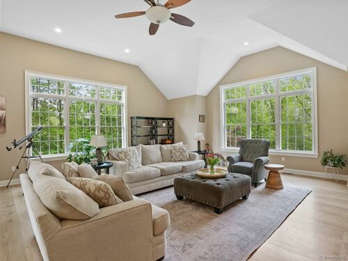 ***Seller is open to paying for a rate buydown which would reduce the buyer's interest rate by 1% for the first 1-2 years.*** Tucked away on a quiet country road, this exquisite newer Colonial offers the perfect blend of seclusion and convenience - just minutes from the heart of Newtown. Set on 2 peaceful acres, the home features 4 spacious bedrooms (with potential for a 5th), 4 full bathrooms, 1 half bath, and a 3-car garage. Beautiful hardwood floors extend throughout the home. The main level boasts a grand foyer that leads into a chef's kitchen outfitted with generous cabinetry, a center island with seating, wall oven, and granite countertops. Sliding doors open to a large back deck - ideal for outdoor entertaining. The oversized family room, complete with high ceilings and a fireplace, offers a welcoming space to relax or gather. Adjacent to the family room is a bright sunroom, perfect for a seating area or home office.