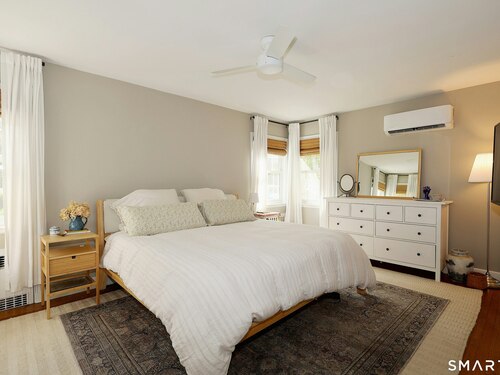 Idyllic country cape on picture perfect level lot, set back privately with fenced in backyard, new spacious deck for entertaining, plus built-in wading pool for summer fun. Perfection inside & out with updated kitchen, baths, hardwood floors, charming arched doorways, & modern open flow. The spacious living room features an inviting fireplace with woodstove insert plus elegant wood surround flanked by wall of custom built-in bookshelves with lower cabinetry. The dining room is wide open to both the living room & the inviting remodeled kitchen with sparkling white cabinets, subway tiled backsplash, granite counters, & S/S appliances. This home is drenched in natural light from the oversized windows & offers flexible living space with total 2,315 sf, 4 bedrooms, 2 full baths & 3 finished levels. Enjoy primary bedroom options on either the main or 2nd floor, each floor with gorgeous updated baths featuring double vanities. The lower level provides more room to spread out with options for family/media room & private home office. Many recent improvements include: new deck with removable awning; extensive landscaping including split rail fence; ductless mini splits for cooling/secondary heating option; new wood stove insert; custom built-ins; & more. Enjoy historic Newtown, known for its blend of small-town charm, New England character, and convenient location near NYC, offering picturesque rolling hills, a vibrant Main St., & historical landmarks like the iconic flagpole. Special!