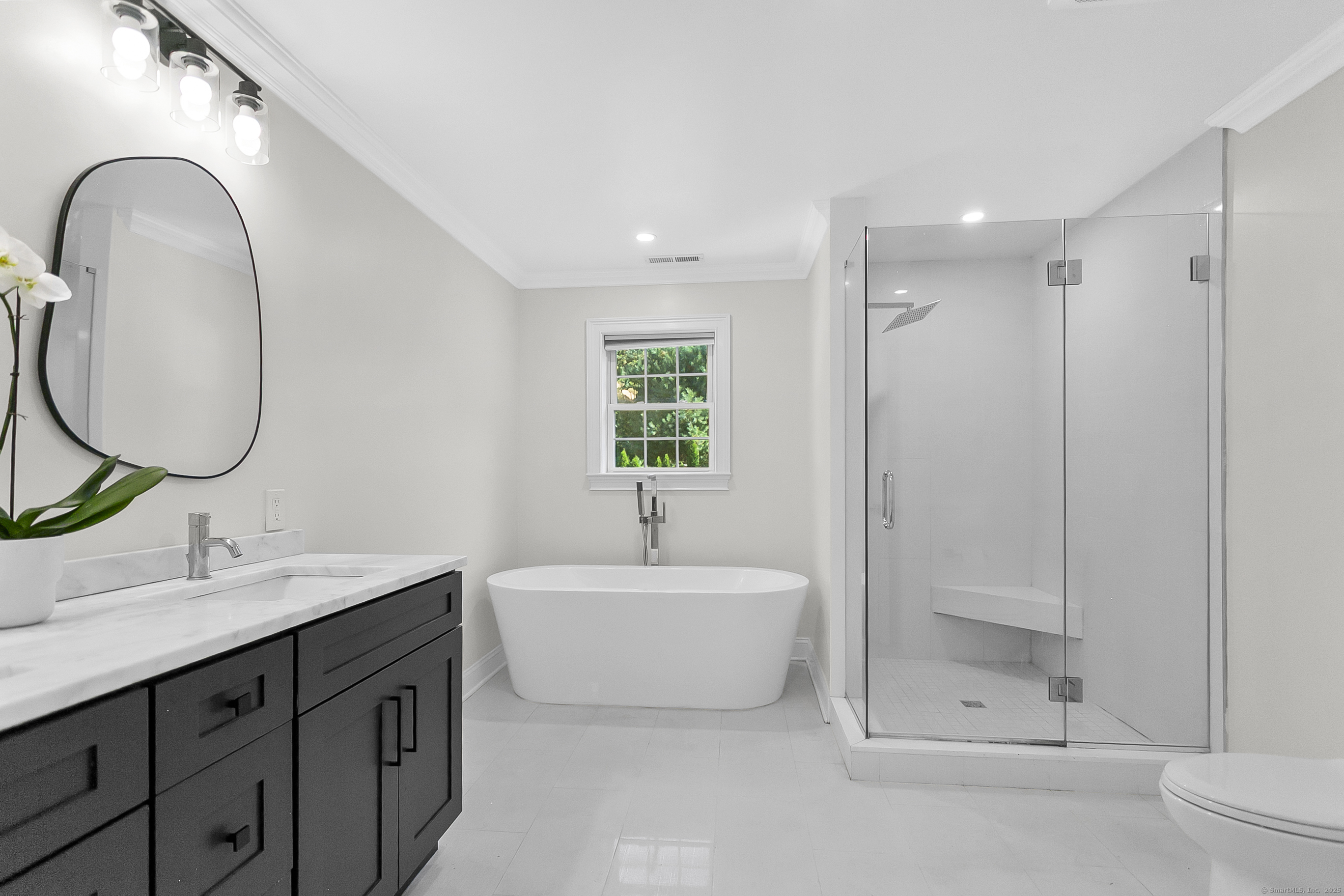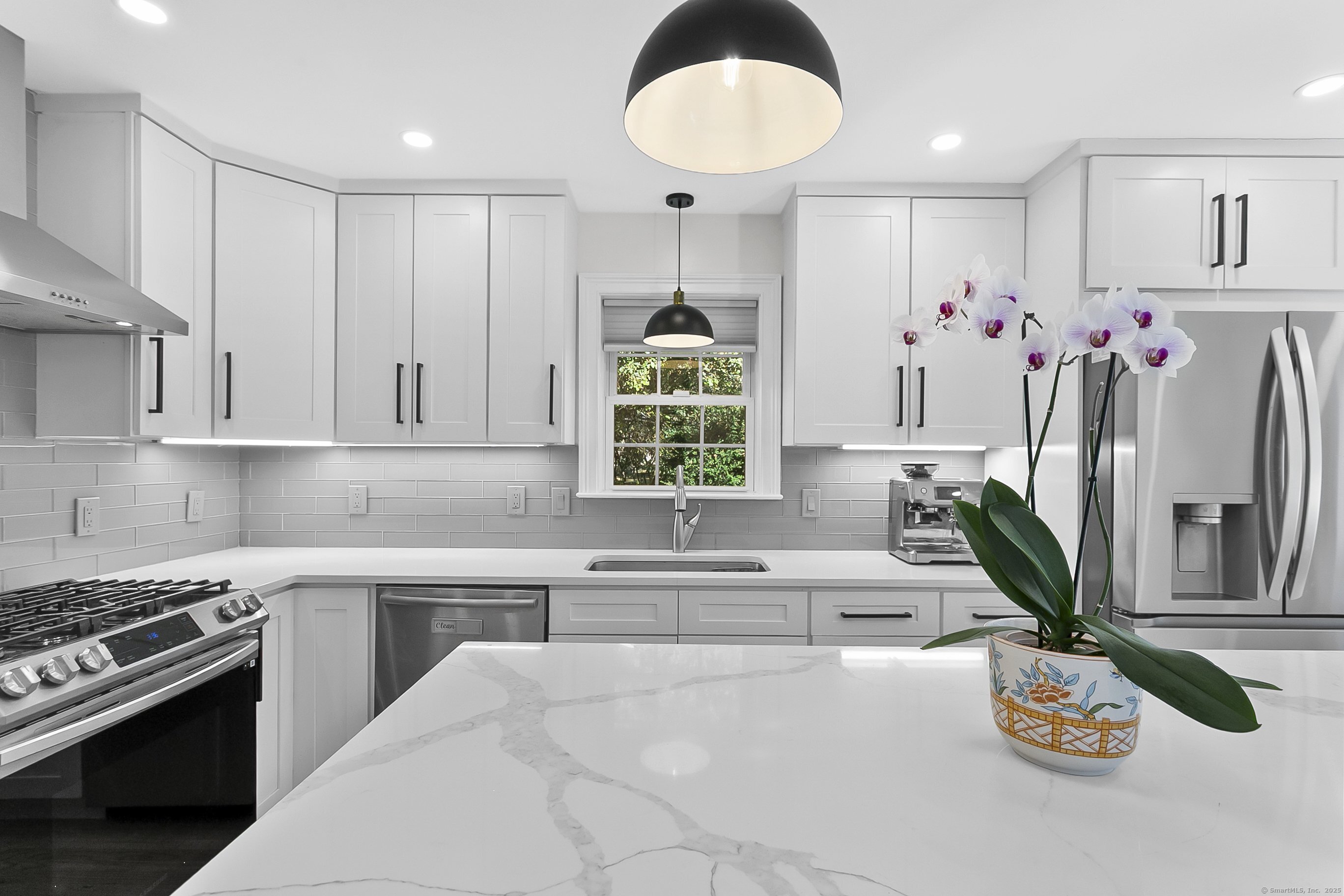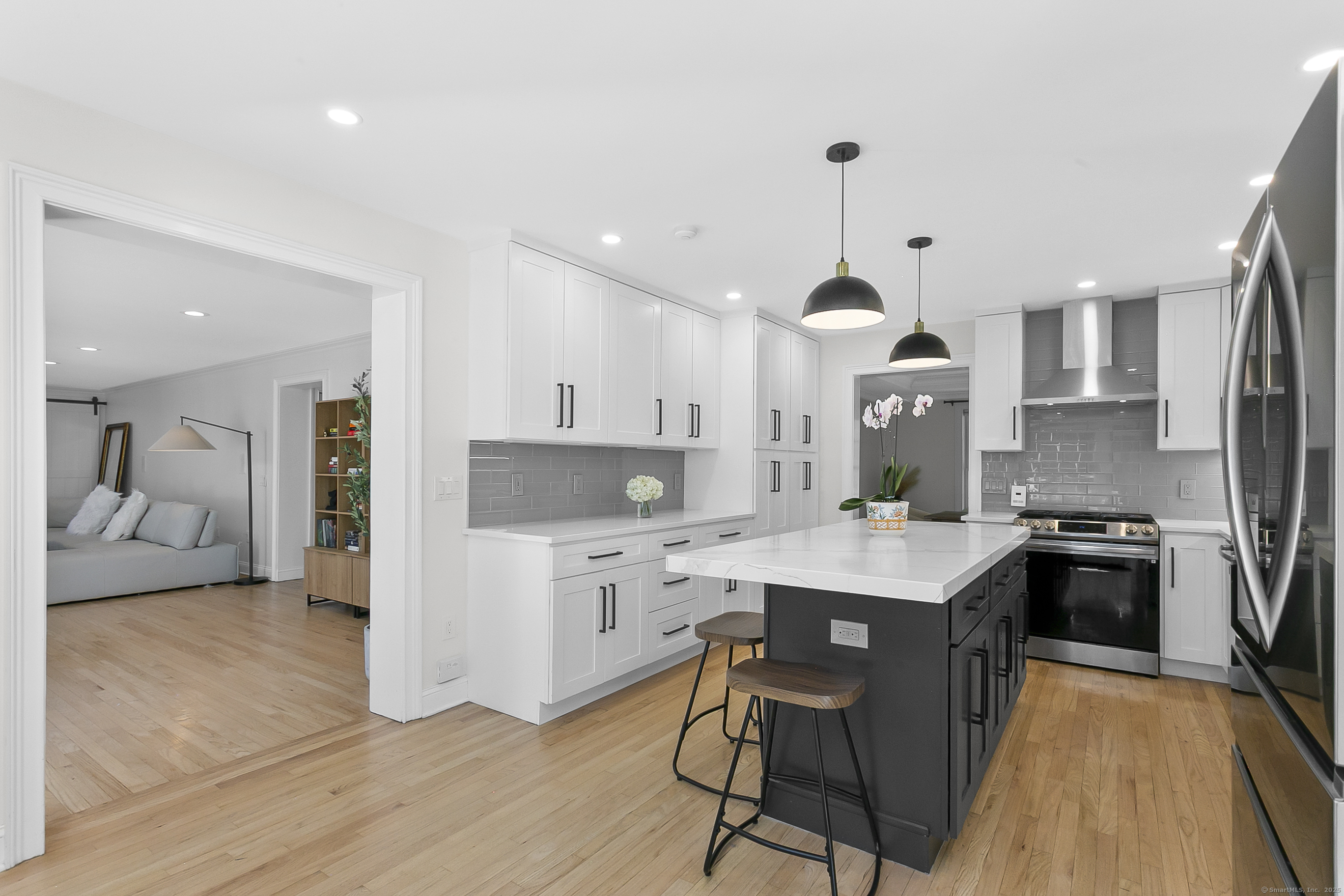 Welcome to 180 East Rocks Road in the desirable Cranbury neighborhood. Experience comfort and luxury in this stunning home with its open concept living -- what buyers are looking for today. Chefs will delight in this gourmet kitchen with ample white shaker style cabinets, stainless appliances, and gorgeous glass tile backsplash, complemented by delightful bay windows. Cooking becomes a joy with the large island providing plenty of room for culinary creations. Enjoy the oversized living room with sliders leading to the huge deck, ideal for entertaining or simply relaxing in the peaceful surroundings of your private backyard, adorned with lovely trees. Ample sized dining room with tray ceiling to host all of your holidays adds to the perfection. Large playroom/rec room (currently used as a bedroom) will add to this unique floor plan. And there's more! Need to work from home? Office and den and full bath complete the first floor. Upstairs boasts a spectacular primary bedroom with large walk-in-closet and spa-like bath with soaking tub, double sink vanity and huge shower. Three additional bedrooms, another full bath and convenient second floor laundry complete this space. Enormous unfinished basement is perfect for all of your storage needs and with the potential to finish can add even more fabulous living space. With a lower level home theatre in place, all that is needed is the equipment. Move right in to this impeccable home and start living the dream!