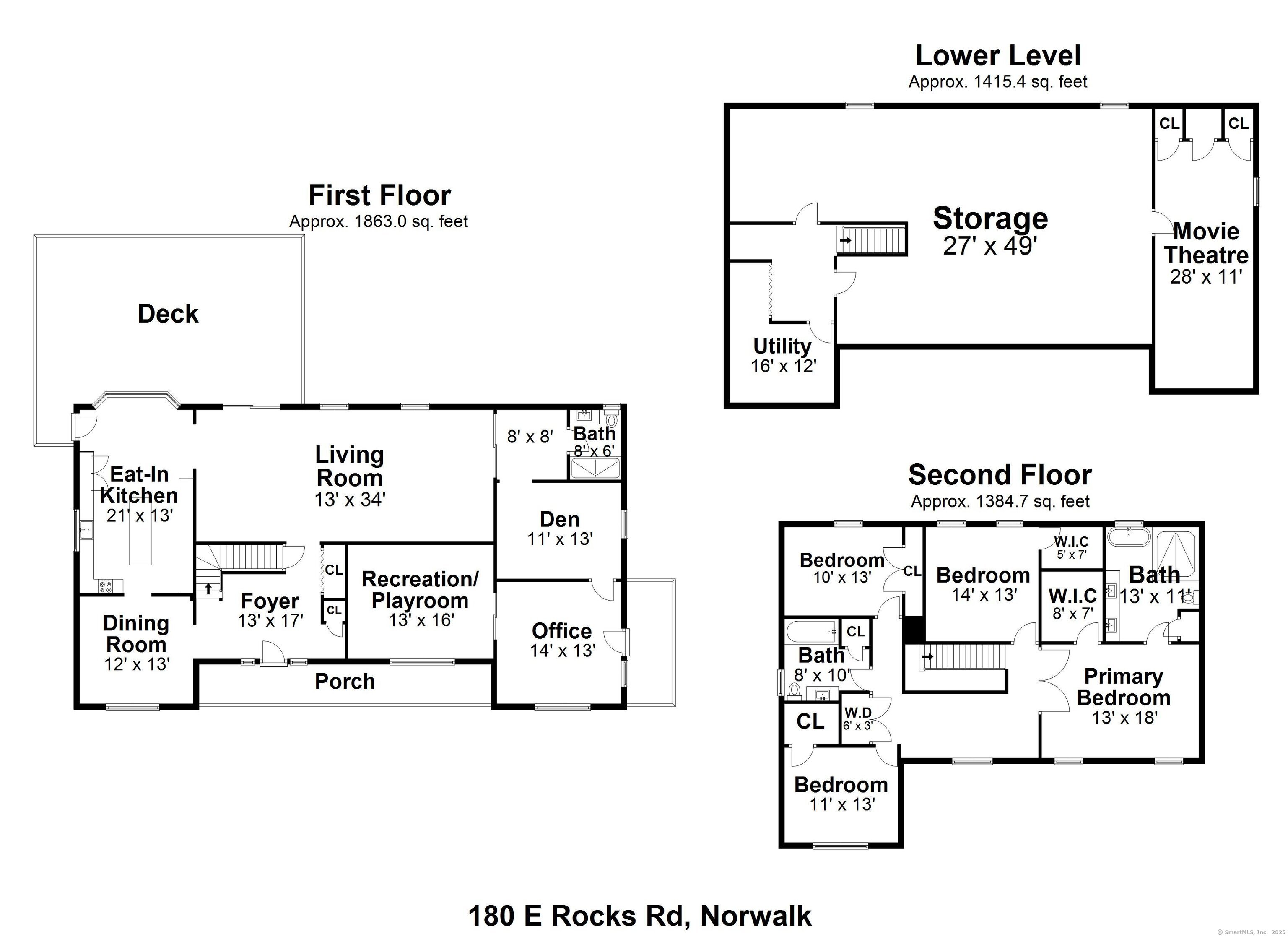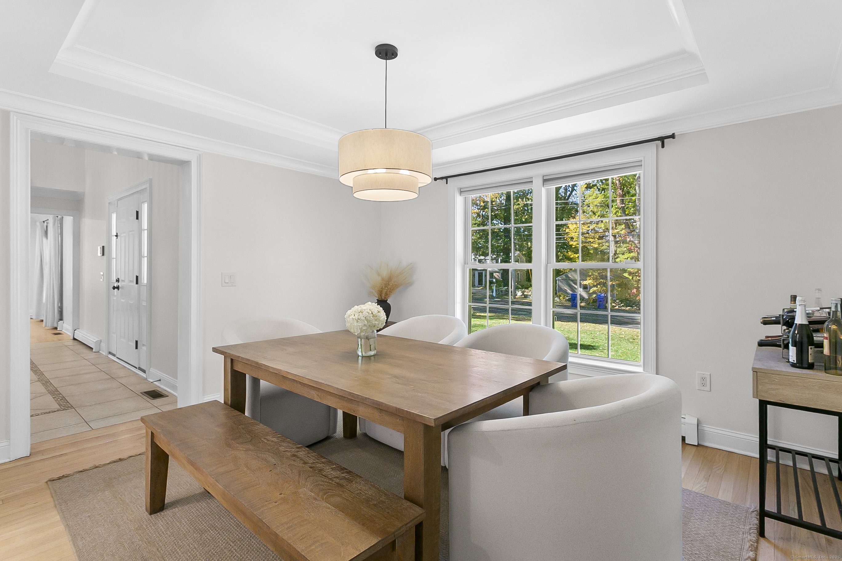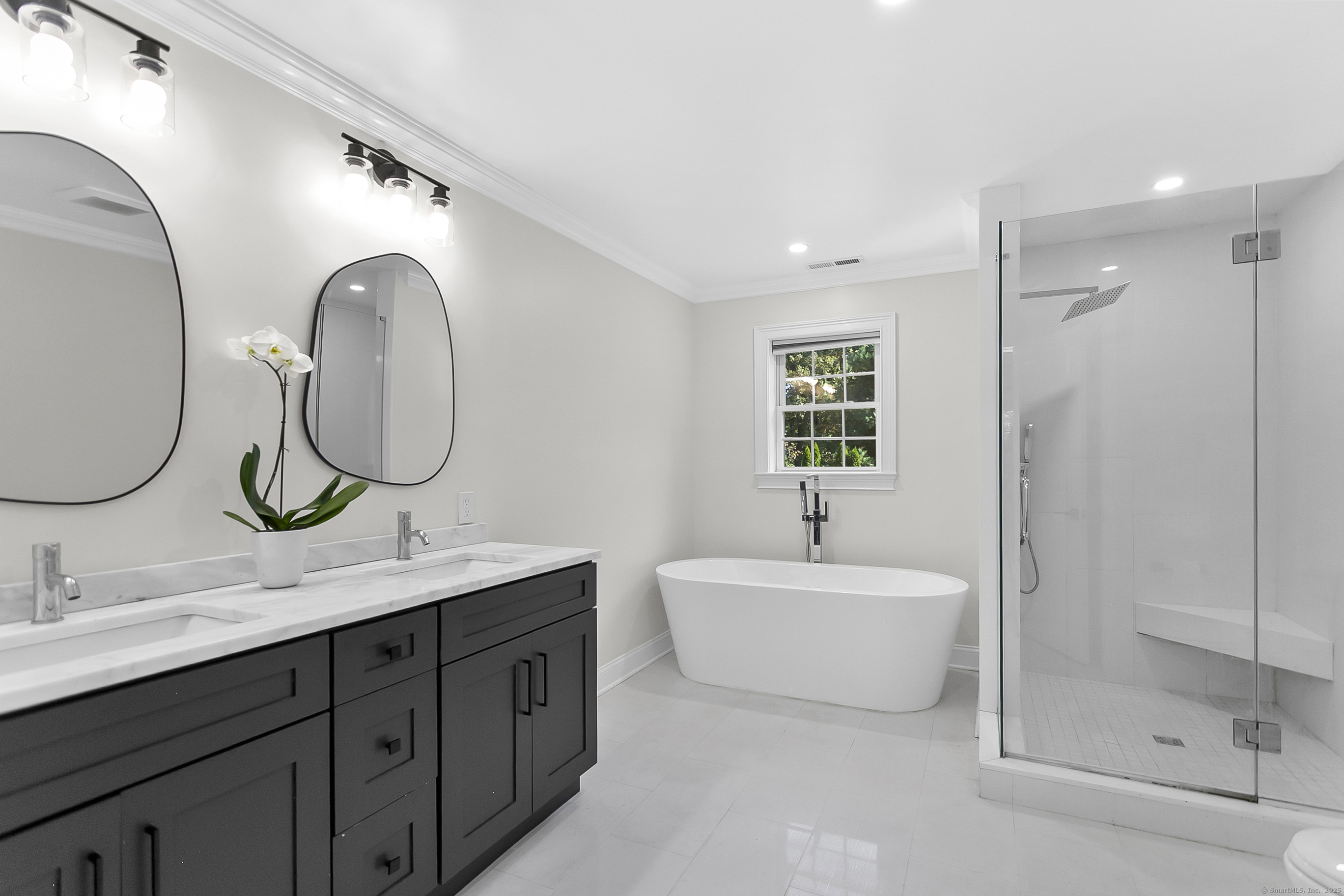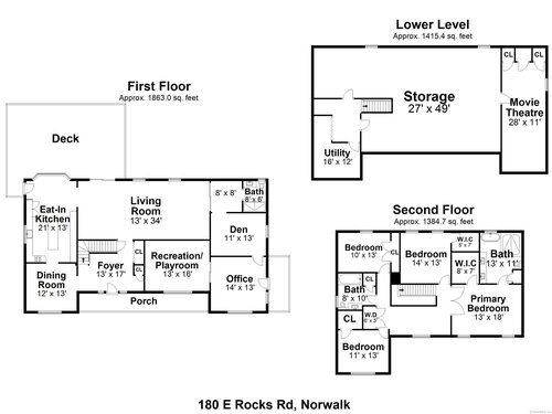 Welcome to 180 East Rocks Road in the desirable Cranbury neighborhood. Experience comfort and luxury in this stunning home with its open concept living -- what buyers are looking for today. Chefs will delight in this gourmet kitchen with ample white shaker style cabinets, stainless appliances, and gorgeous glass tile backsplash, complemented by delightful bay windows. Cooking becomes a joy with the large island providing plenty of room for culinary creations. Enjoy the oversized living room with sliders leading to the huge deck, ideal for entertaining or simply relaxing in the peaceful surroundings of your private backyard, adorned with lovely trees. Ample sized dining room with tray ceiling to host all of your holidays adds to the perfection. Large playroom/rec room (currently used as a bedroom) will add to this unique floor plan. And there's more! Need to work from home? Office and den and full bath complete the first floor. Upstairs boasts a spectacular primary bedroom with large walk-in-closet and spa-like bath with soaking tub, double sink vanity and huge shower. Three additional bedrooms, another full bath and convenient second floor laundry complete this space. Enormous unfinished basement is perfect for all of your storage needs and with the potential to finish can add even more fabulous living space. With a lower level home theatre in place, all that is needed is the equipment. Move right in to this impeccable home and start living the dream!
