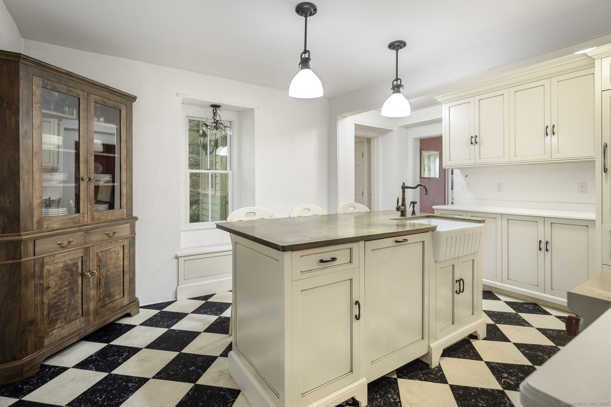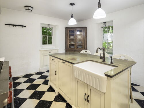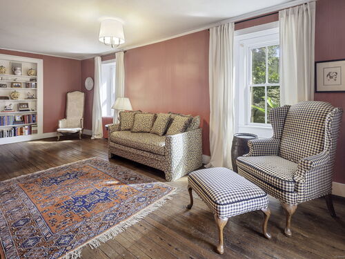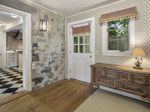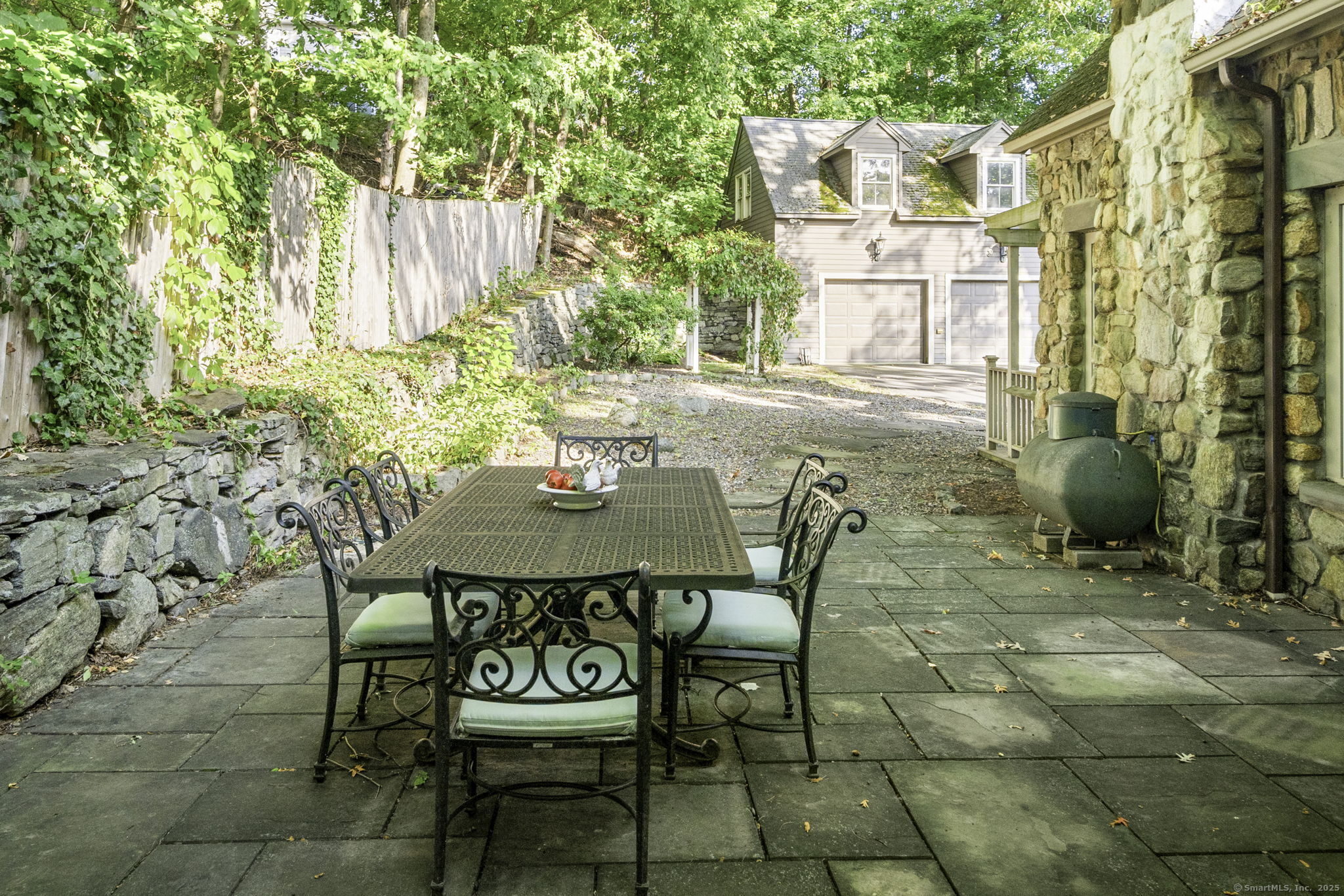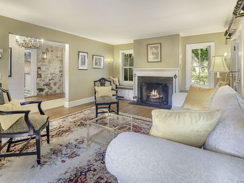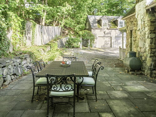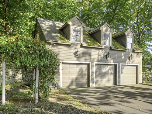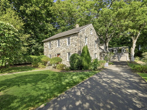 This enchanting stone home is on the market for the first time in 40 years. It is in the heart of downtown New Canaan presenting a rare opportunity to embrace a property rich in character. Nestled on nearly half an acre of meticulously landscaped grounds, this charming colonial offers a private and tranquil atmosphere just a short stroll from the vibrant town center. Over the years, certain areas of the home have been beautifully updated and maintained, while other areas may benefit from renovation. The home being sold "as is" spans 3,557 square feet across three levels, the generous first floor layout features a comfortably sized living and dining room filled with charm, leading to a well-equipped open-concept kitchen and a spacious family room with glass doors that open onto secluded patio areas. A first-floor full bath completes the main level. The second floor hosts the primary suite with a full bathroom, two additional bedrooms, and another full bath. The third floor can be utilized as extra sleeping quarters or office space. This property is enhanced by a detached oversized three-car garage which also includes a large loft above boasting over 700 square feet of unfinished space. It is a blank slate, ready to be transformed into additional living, work or studio space. This home is a unique gem in New Canaan, with immense potential to become a cherished town icon.