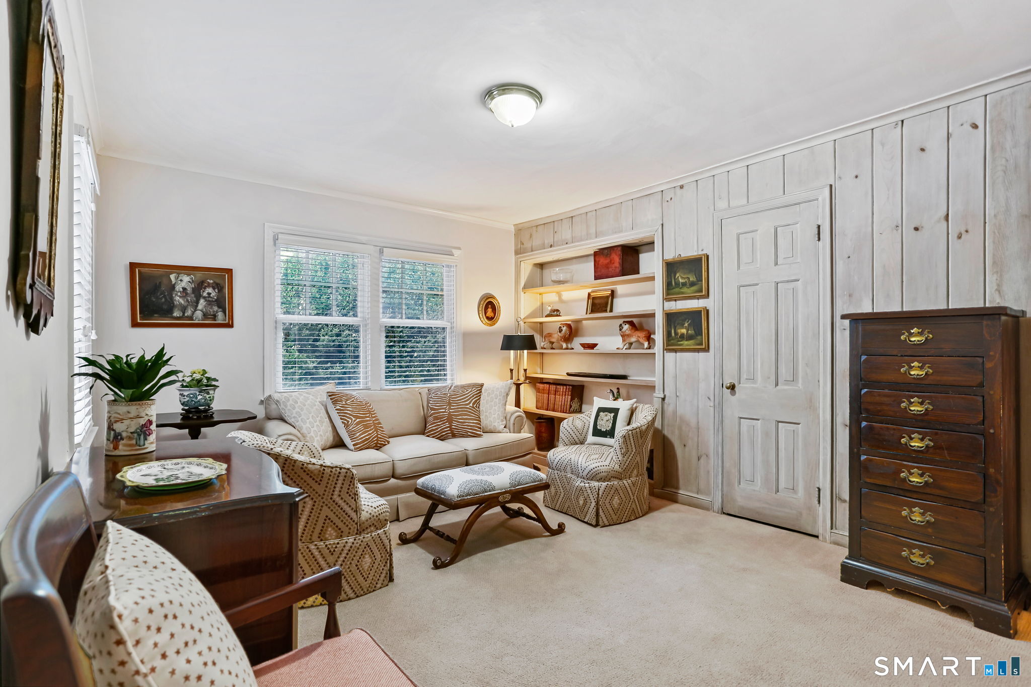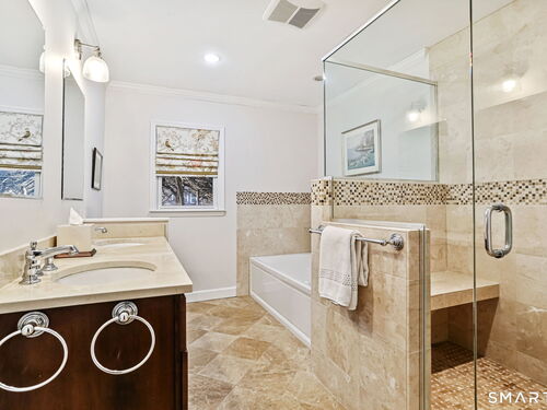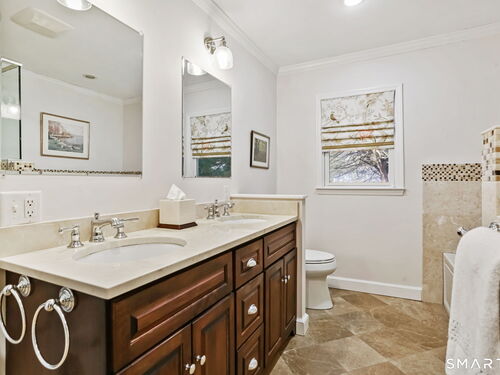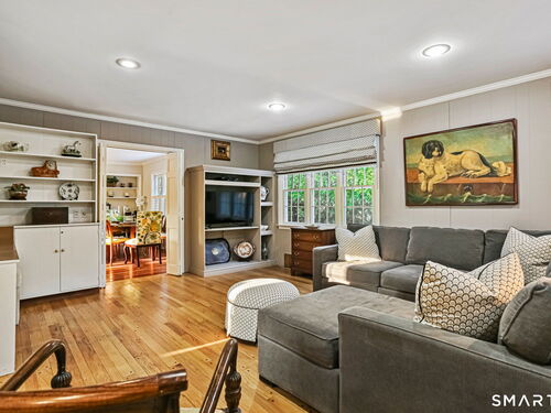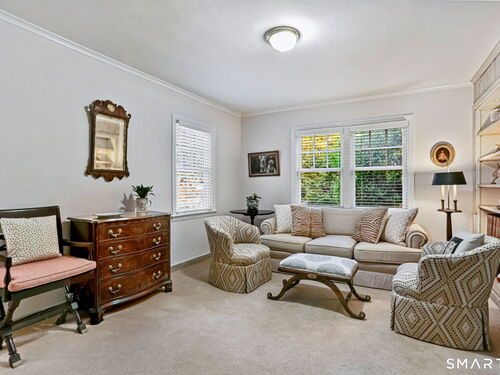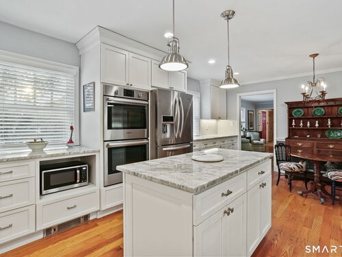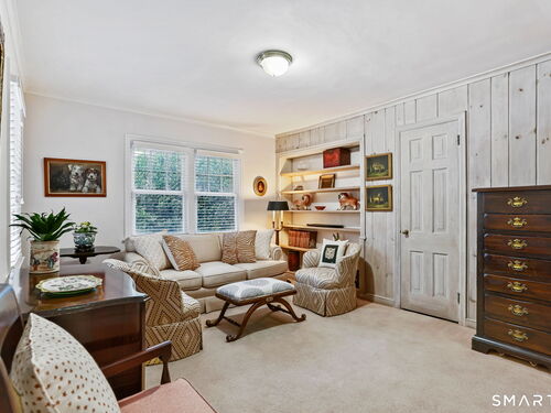 Welcome home to this charming Stratfield Gem! This beautifully maintained 4-bedroom, 3 bath residence offers the perfect blend of comfort, space, and convenience. The first floor features a spacious Primary Suite with separate closets and an ensuite bath complete with granite countertops and double sinks. A charming Den with custom built-ins offers flexibility as a home office or additional living space. The inviting Living Room showcases hardwood floors, plantation shutters, a cozy fireplace, and a formal dining area-perfect for entertaining. The updated Kitchen is equipped with hardwood floors, a center island, stainless steel appliances, and granite countertops. Just off the kitchen, the Family Room provides a comfortable gathering space with hardwood floors, built-ins, and custom blinds. There is also access to a bluestone patio for outdoor entertaining. A full bath along with a bedroom/great room above the garage complete the first level. The second floor offers a cedar closet, 2 bedrooms and a renovated full bath. The large basement is perfect for storage, workout space or playroom. Nestled in a quintessential desirable neighborhood, you'll enjoy easy access to parks, shopping, schools, and major highways. With generous living areas and a layout ideal for both everyday living and entertaining, this home is ready to fit your lifestyle.