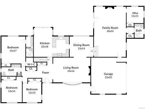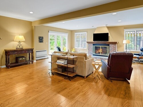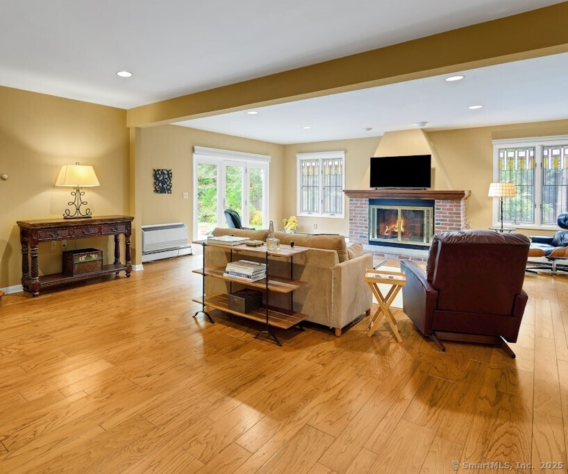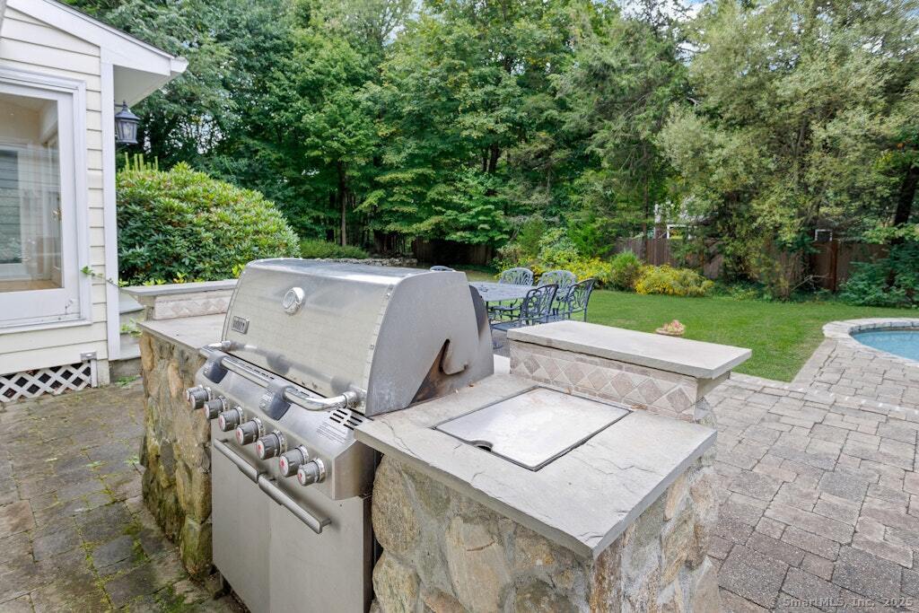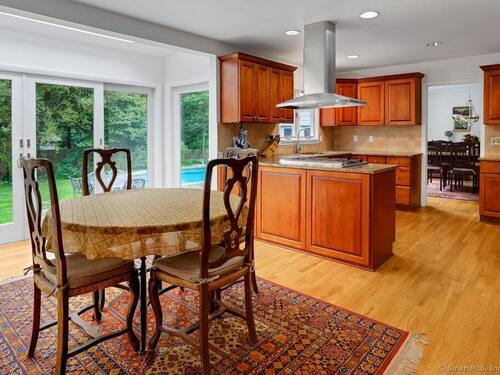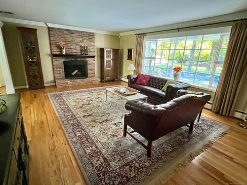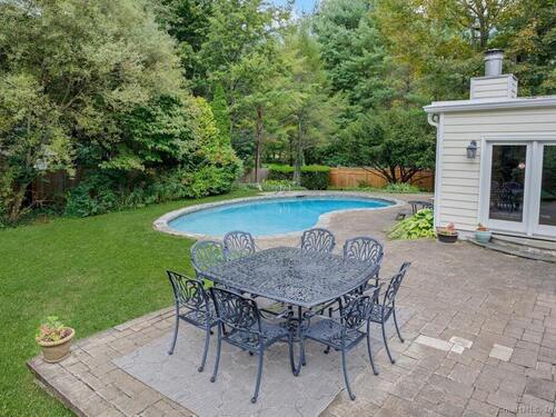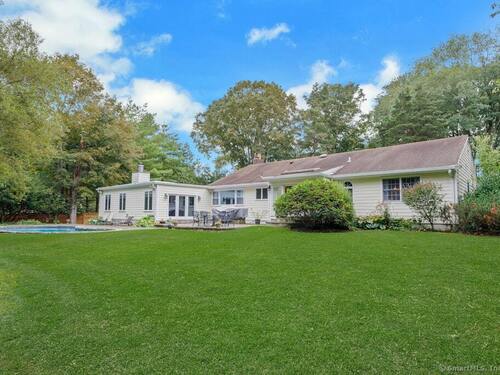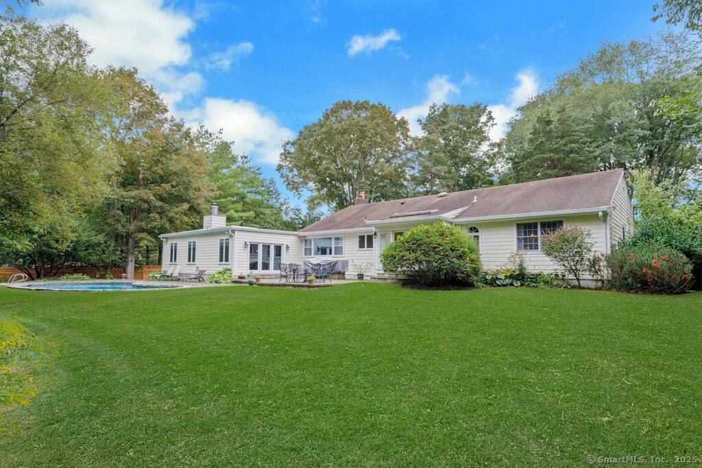 Beautifully landscaped and cared for one acre, this 3 bedroom, 3 bath Ranch offers over 3,000 square feet of living space providing comfortable indoor and refined outdoor living. The open concept floor plan, is filled with natural light throughout. The L.R. features a fireplace and a bow window overlooking a covered front patio providing a peaceful view of the professionally landscaped front yard. The adjoining D.R. is ideal for both casual meals and formal gatherings. The kitchen has granite counters, quality appliances and abundant storage. The skylight provides natural light in the breakfast nook that leads out to the expansive patio; blending indoors with outdoor living space. The spacious family room boasts custom leaded stained glass windows, a gas fireplace, and a full library wall, ideal for relaxation or entertaining. An office is located off the family room, along with a full bath near the pool and mudroom with exterior access. The bedroom wing features a spacious primary bedroom with a walk in closet and an updated full bath. Two addl. bedrooms share a full bath. The finished basement offers additional living space for recreation and the unfinished area provides lots of storage space. The outdoor patio features a built in gas grill surrounded with stone and a slate counter/prep station. A beautiful free form pool and expansive yard with mature plantings completes this fabulous home. Additional features include: generator, irrigation system, professional landscapin