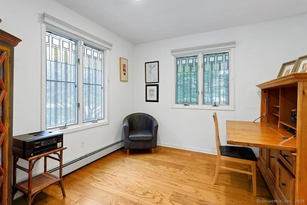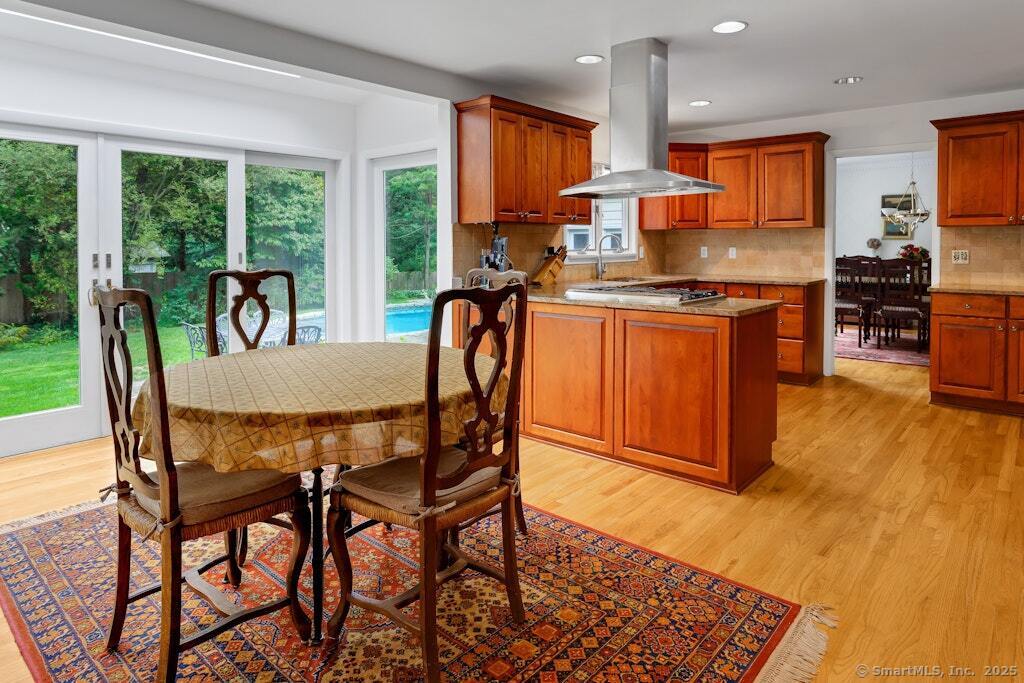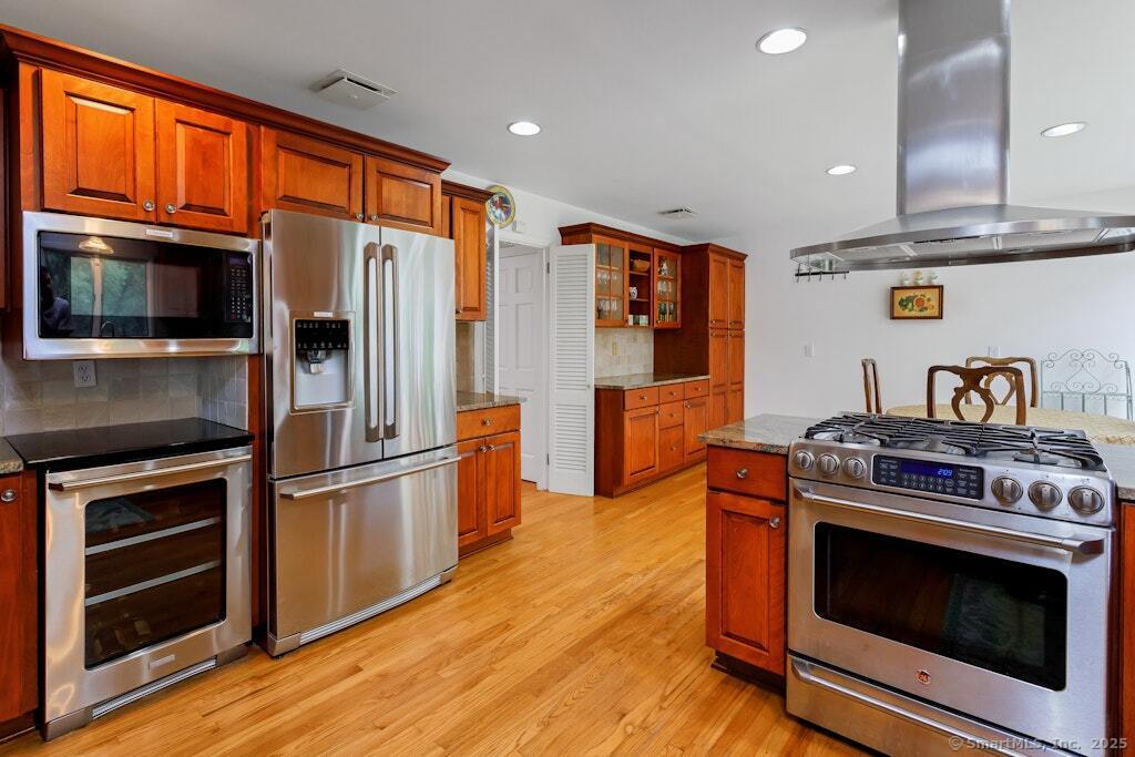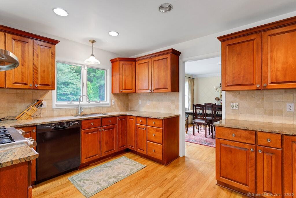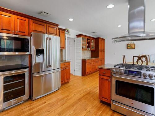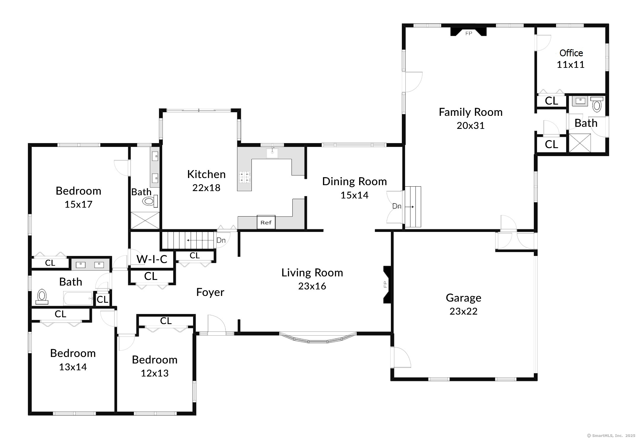 Beautifully landscaped and cared for one acre, this 3 bedroom, 3 bath Ranch offers over 3,000 square feet of living space providing comfortable indoor and refined outdoor living. The open concept floor plan, is filled with natural light throughout. The L.R. features a fireplace and a bow window overlooking a covered front patio providing a peaceful view of the professionally landscaped front yard. The adjoining D.R. is ideal for both casual meals and formal gatherings. The kitchen has granite counters, quality appliances and abundant storage. The skylight provides natural light in the breakfast nook that leads out to the expansive patio; blending indoors with outdoor living space. The spacious family room boasts custom leaded stained glass windows, a gas fireplace, and a full library wall, ideal for relaxation or entertaining. An office is located off the family room, along with a full bath near the pool and mudroom with exterior access. The bedroom wing features a spacious primary bedroom with a walk in closet and an updated full bath. Two addl. bedrooms share a full bath. The finished basement offers additional living space for recreation and the unfinished area provides lots of storage space. The outdoor patio features a built in gas grill surrounded with stone and a slate counter/prep station. A beautiful free form pool and expansive yard with mature plantings completes this fabulous home. Additional features include: generator, irrigation system, professional landscapin