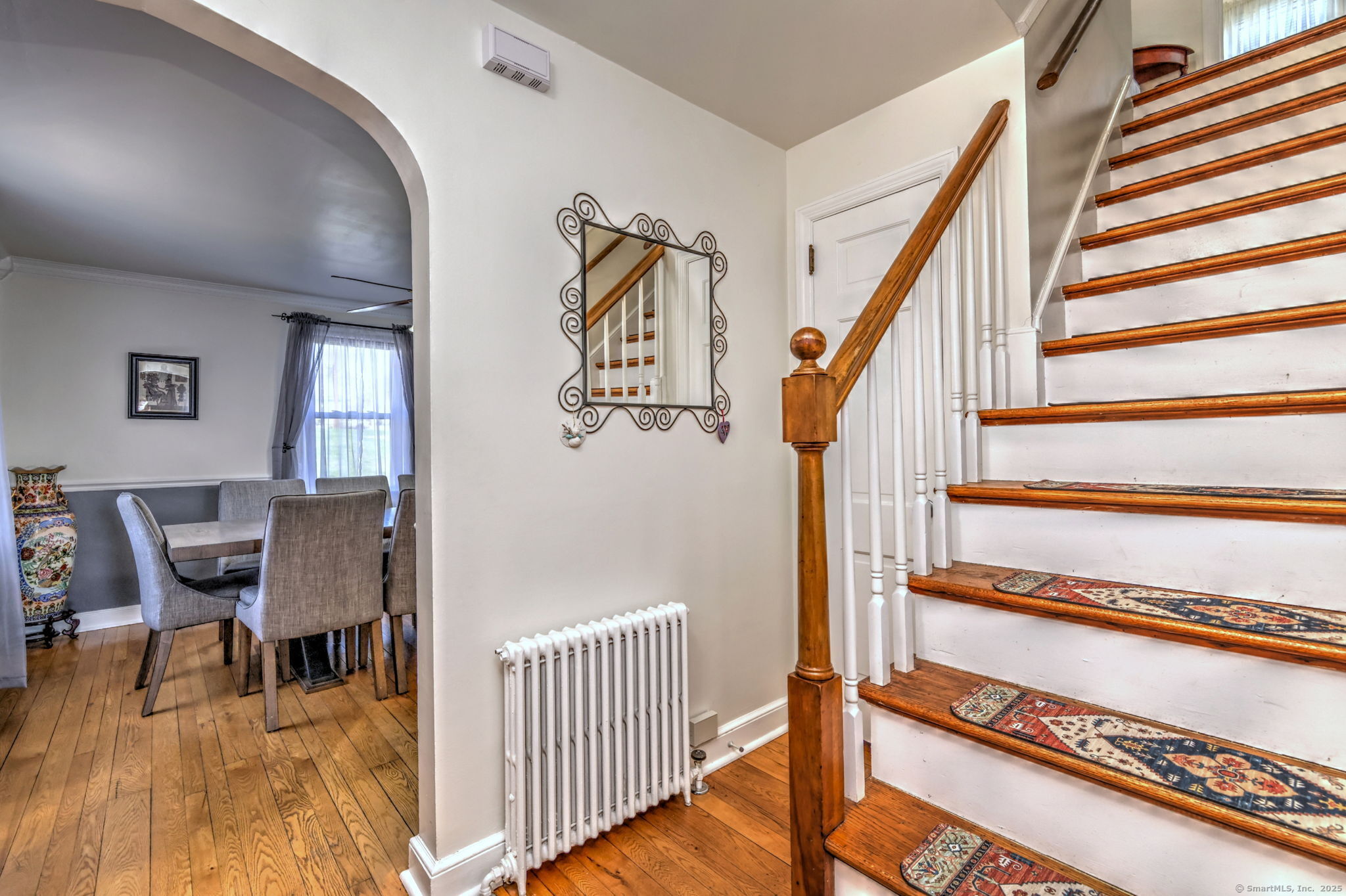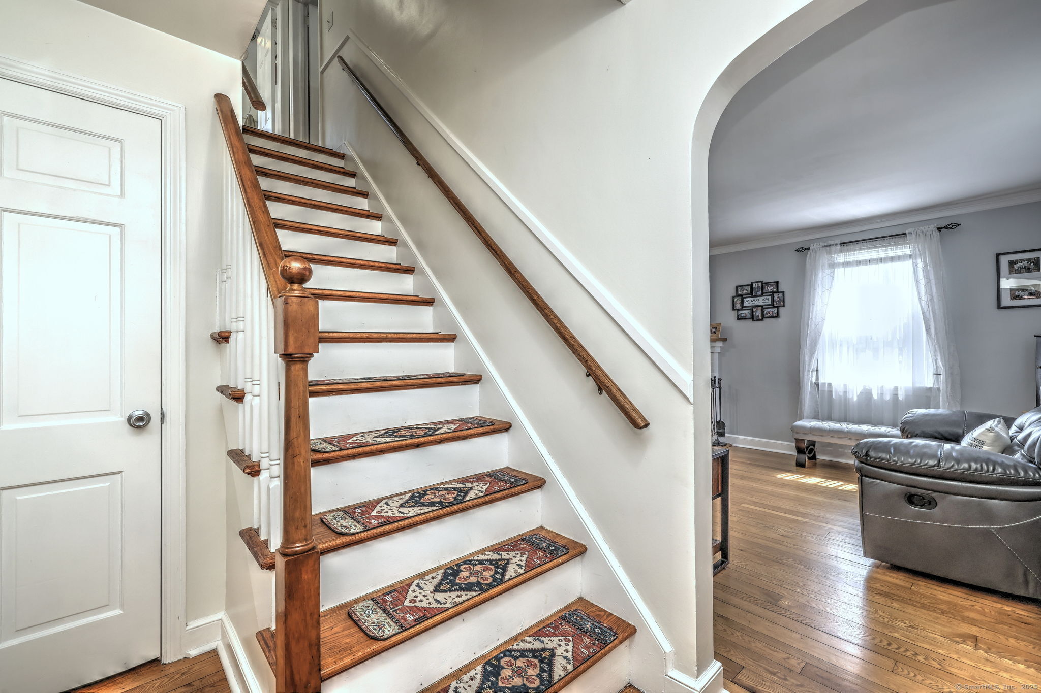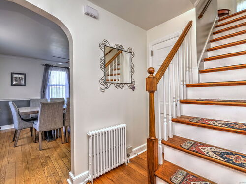 Spacious and elegant North End Brick Colonial ready for a small or large family. As you drive up the driveway you will immediately feel at home with the beautifully mature planting, pristine green lawn leading to your 2 car garage and additional parking for 3+ paved spots. Upon entering the front door you'll notice the bright hardwood floors. There is a living room to your right with wood burning fireplace as well as a 1/2 bath. To the left is the spacious dining room with space for 8-12 at the dining table. The kitchen has stainless steels appliances, oak cabinets and a dining area. Enjoy the convenient Mud room off the kitchen just steps from a large Sun room with wall to wall windows. The second floor offers 3 bedrooms with a hall full bath. The basement offers a family room with laundry. The exterior offers an above ground pool, level rear yard & fire pit area.