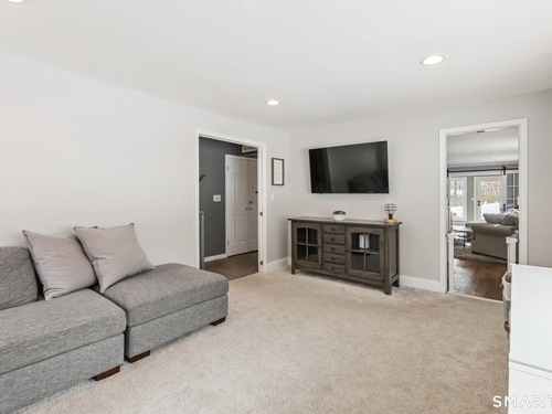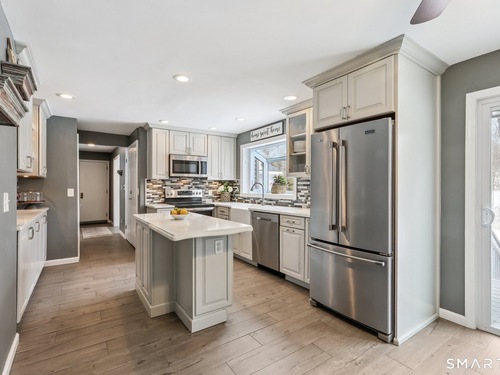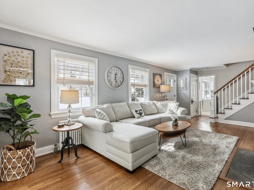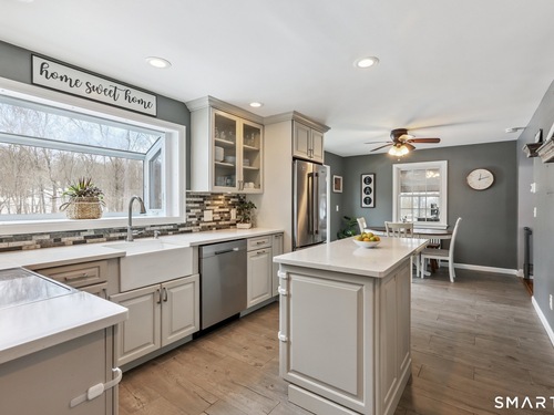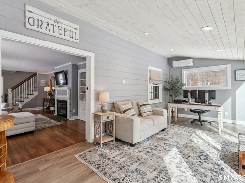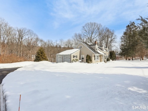 Welcome to this absolutely charming Cape Cod-style home, perfectly sited on a picturesque lot w/ over 2 acres in one of Danbury's most desirable locations. Offering timeless character & modern updates, this home is move-in ready. The main level offers a wonderful flow for everyday living and entertaining. A spacious, light-filled family room provides ample room to gather, while the inviting living room w/ a charming built in bookcase and cozy fireplace provides the perfect spot to unwind. A dedicated dining room just off the kitchen makes hosting effortless. The kitchen is beautifully appointed w/ quartz countertops, a center island, and abundant cabinetry for storage and functionality. A large garden window above the sink offers the perfect view of the gorgeous backyard and a very handy spot to grow herbs! A mudroom off the 2 car attached garage provides easy access directly into the home, along with convenient laundry, storage, and half bath. The upper level provides a lovely primary bedroom, with it's own private en suite with tub/shower combo, double closets, and mini split system for added comfort. A fully remodeled hall full bathroom offers a deep tub, all new fixtures, composite subway tile shower surround for easy maintenance, shiplap walls - designed w/ today's style in mind. 2 additional bedrooms offer comfortable & inviting spaces, each featuring beautiful hardwood floors and soft, neutral paint tones to create a calm and versatile backdrop for any decor style.