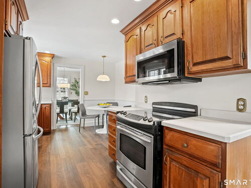 Experience the unbeatable location of 188 Henderson Rd. Imagine starting your perfect day with a short stroll to Starbucks and Pop Up Bagels. After enjoying your morning treats, you can walk a few doors down to Mill River and easily launch your kayak or canoe right at the water's edge. For lunch, grab a delicious sandwich at No Pine Creek Deli. Just a short walk away is the Sportsplex, where you'll find plenty of options to work out. In the evening, you can either walk into town for a dinner date or catch a concert. You'll fall in love with this charming colonial home situated on a .26-acre lot in a peaceful cul-de-sac. This property has so much to offer, including 3 bedrooms, 1.5 bathrooms, a Living Room with a wood-burning fireplace and built-ins, a Dining Room, a home office, a Family Room, and an eat-in kitchen with a pantry. Additionally, there's a Sunroom added in 2002, a two-car garage, central air conditioning (2020), a high-quality roof (2010) with a lifespan of 45-50 years, 200 amp service, and an adorable children's playhouse awaiting your personal touch. When spring finally arrives, you'll be delighted to find this property blossoming with flowering perennials and trees. The neighborhood is a true slice of Americana, featuring block parties, Halloween parades, and friendly dog walkers. An allowance will be provided for the kitchen range, which can be either electric or gas, and there is a gas line already connected to the house.