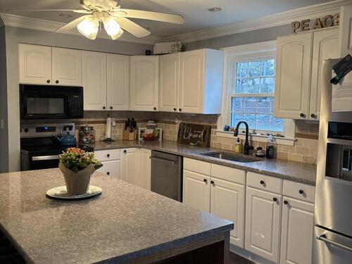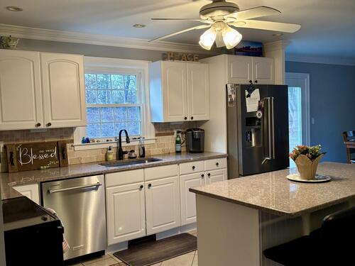Updated 3 bdrm, 3 bath colonial including master bath, with open concept, hardwood floors throughout, kitchen with an island, and new Kitchen Aid appliances on 1 level acre. Roof, siding, doors, and windows replaced in 2020. Well pump replaced and septic pumped in 2026. Updated and underground electric service. Wrap around driveway.