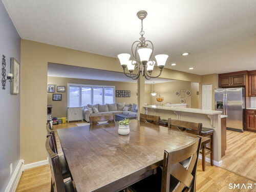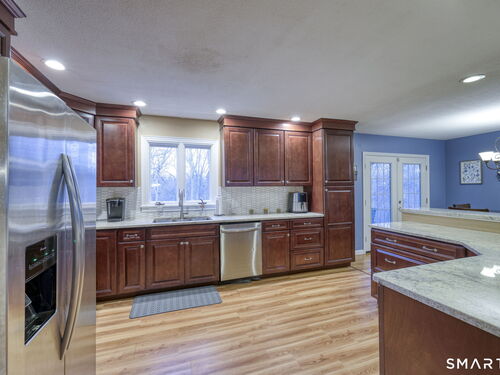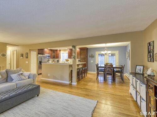 In Danbury, there is a 4-bedroom, 1 full and 2 half bath raised ranch offering 2,196 square feet of comfortable living space, set on a spacious 0.57-acre lot in a cul de sac. The home features an open-concept living room and eat-in kitchen highlighted by a beautiful oversized island, ideal for gathering and entertaining. A formal dining area flows seamlessly to an enclosed sunroom and deck, creating the perfect indoor-outdoor connection. Additional highlights include bright living areas, hardwood-style flooring, a 2-car attached garage, and a finished lower level providing 1 bedroom and flexible bonus space for a family room or recreation area. Enjoy a private backyard setting while being conveniently close to shopping, dining, schools, parks, and easy access to I-84, offering an ideal blend of space, convenience, and location.