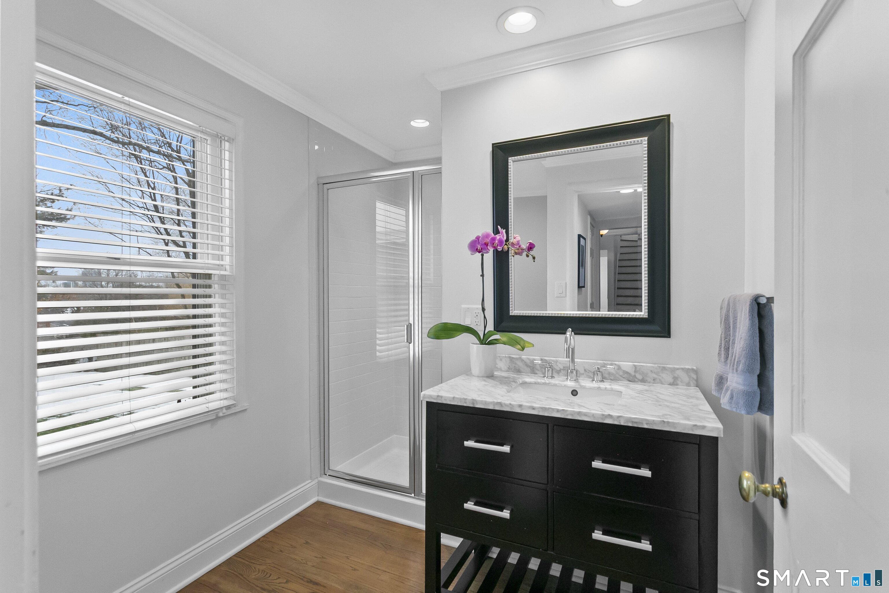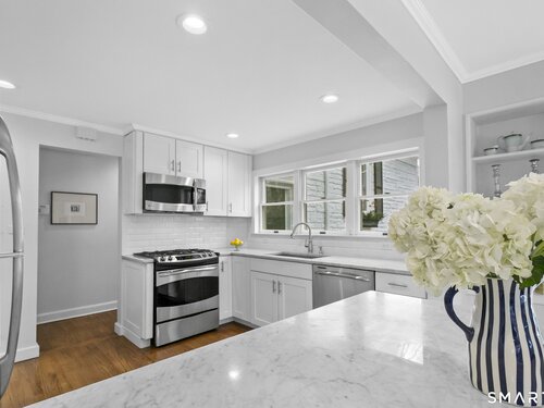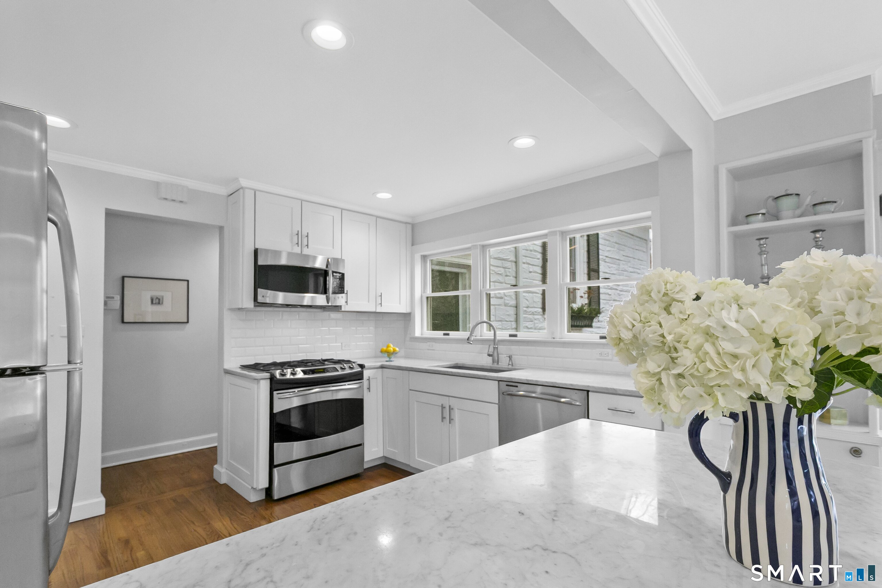 Welcome to 19 Emery Drive, nestled in the private, gated community of Westover Park. This beautifully maintained home offers open-concept living at its finest. The designer renovated eat-in-kitchen features white shaker cabinets, marble countertops, and stainless steel appliances which will delight the serious home chef. The spacious living room is highlighted by a charming rounded fireplace, creating a warm and inviting focal point. The dining area is surrounded by windows, allowing natural light to pour in and creating the perfect setting for everyday meals or special gatherings. Need to work from home? A first-floor office a provide wonderful flexibility and can easily be used as an additional bedroom. Gleaming hardwood floors throught add to the perfection. Upstairs, the primary bedroom serves as a private retreat, complete with a full bath with vaulted ceiling, skylight, and elegant tumbled marble. Two additional bedrooms and another full bath complete the upper level. Step outside to enjoy beautiful perennial gardens and a genrous sized slate patio, ideal for outdoor entertaining or peaceful relaxation. Located just minutes from downtown Stamford, this home offers the perfect blend of privacy, comfort, and convenience.