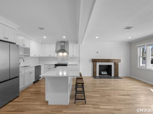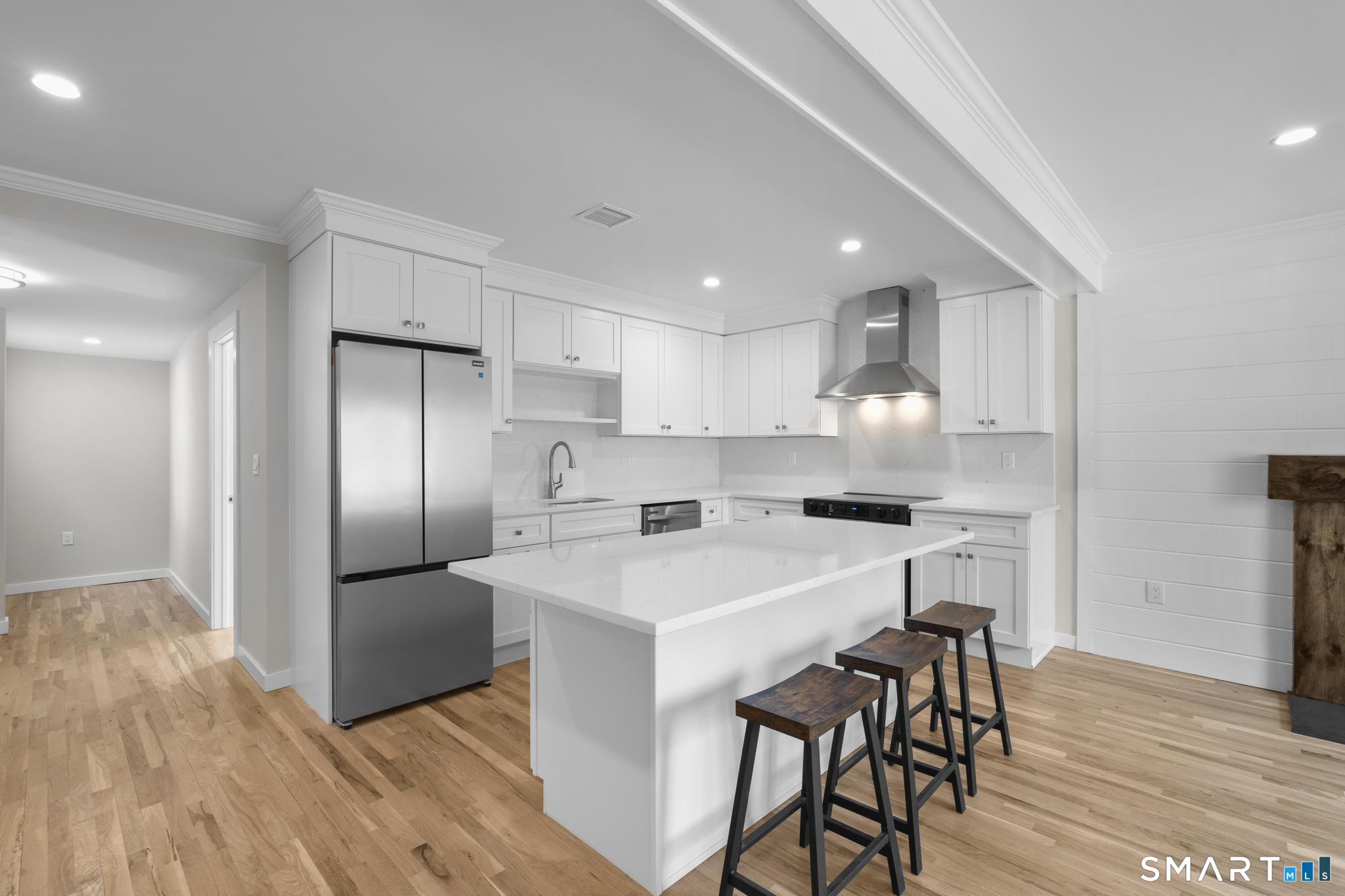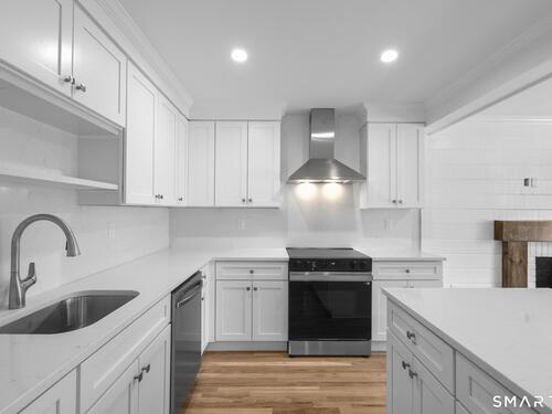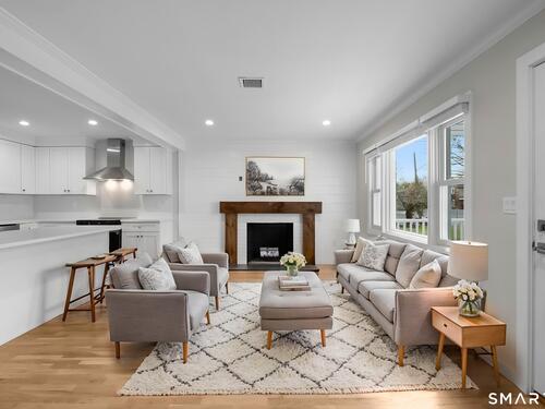 Extensively and tastefully renovated, this turnkey ranch in Stamford's sought after Newfield neighborhood offers beautifully updated interiors, flexible living space, and an exceptionally convenient location. Major cosmetic remodeling throughout the home has created a fresh, cohesive feel, including refinished hardwood floors, fresh interior and exterior paint, a stunning new kitchen with quartz countertops, and stylishly updated finishes throughout. The sun filled main level features an open, easy flow layout designed for modern living, with the kitchen, dining area, and main living space connecting seamlessly for both casual daily living and effortless entertaining. The primary suite offers a comfortable retreat with a walk-in closet and updated bath, while the additional bedrooms and baths are equally well appointed. The finished lower level provides outstanding versatility with additional family space, bonus space, laundry, mudroom, separate entry, and potential for in-law, guest, or home office use. Outside, the level yard and private parking add to the home's everyday practicality. Ideally situated near the shopping and dining of Newfield and Bulls Head, with easy access to Downtown Stamford, this home delivers the rare combination of move-in ready condition, stylish upgrades, and true convenience.