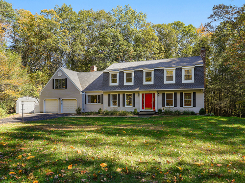 Nestled in the lovely, serenely private area of Barkwood Falls this spacious updated almost 2700SF 4 bedroom, 2.5 bath sun drenched colonial home has everything you have been looking for!! Welcoming entry with formal living room with cozy fireplace, large dining room for family gatherings and stylish kitchen that includes custom cabinets, granite counters, lovely stainless steel appliances and island with seating for all...sunken family room with wood accents, fireplace & builts-ins with access to the huge freshly stained deck for hosting parties or relaxing after a long day at work...upstairs the light filled primary suite has plenty of storage-updated bath and 3 roomy additional bedrooms-2 with walk-in closets with an updated private bath...oversized bonus room for home office/playroom/exercise room or additional bedroom for guests...tons of storage, 2 car garage and sheds for all your toys...updates include brand new roof 6/2025 and lots of fresh paint...enjoy all that nature offers yet being close to everything Brookfield has to offer including premier restaurants, shopping, Candlewood Lake and access to Rte 84 & lower Fairfield county...make this amazing home yours today!!