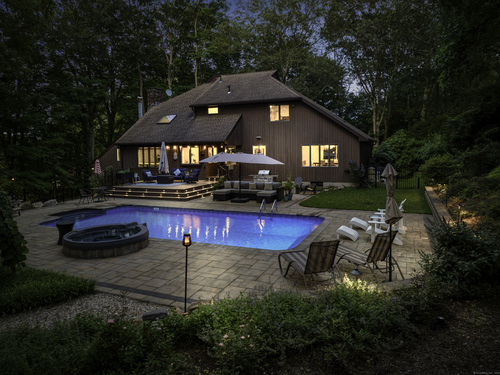 Welcome to 19 Pumpkin Hill Road located in Trumbull's highly sought-after Tashua neighborhood! This stunning Tudor style colonial offers the perfect blend of classic charm and comfortable living with 4 bedrooms, 4 baths, and over 4,000 SQ FT of living space. If you're looking for a peaceful retreat on a serene end of the cul-de-sac, this 1.4 acres has it all! From the moment you arrive you'll experience meticulously landscaped grounds designed by Stopa Landscaping, complete with elegant stone walls and a sweeping circular driveway. The private, fenced-in backyard transforms into your personal sanctuary - an entertainer's dream featuring an expansive stone patio, a shimmering in-ground Salt water pool, hot tub with waterfall, and a secluded firepit sitting area. This tranquil setting ensures year-round enjoyment and unforgettable gatherings. The home's interior boasts a seamless design, ensuring a natural flow between living areas, bedrooms are located on the first and second level. The main level of the home has a spacious family room with cathedral ceiling and cozy wood-burning fireplace, ideal for winter evenings and gatherings. The Kitchen offers a plenty of space for cooking and entertaining and provides quick access to the beautifully landscaped back yard. There is a generous size bonus room situated above an attached 2 car garage ready to be transformed into your ideal home office, workout space, hobby haven, or children's playroom.