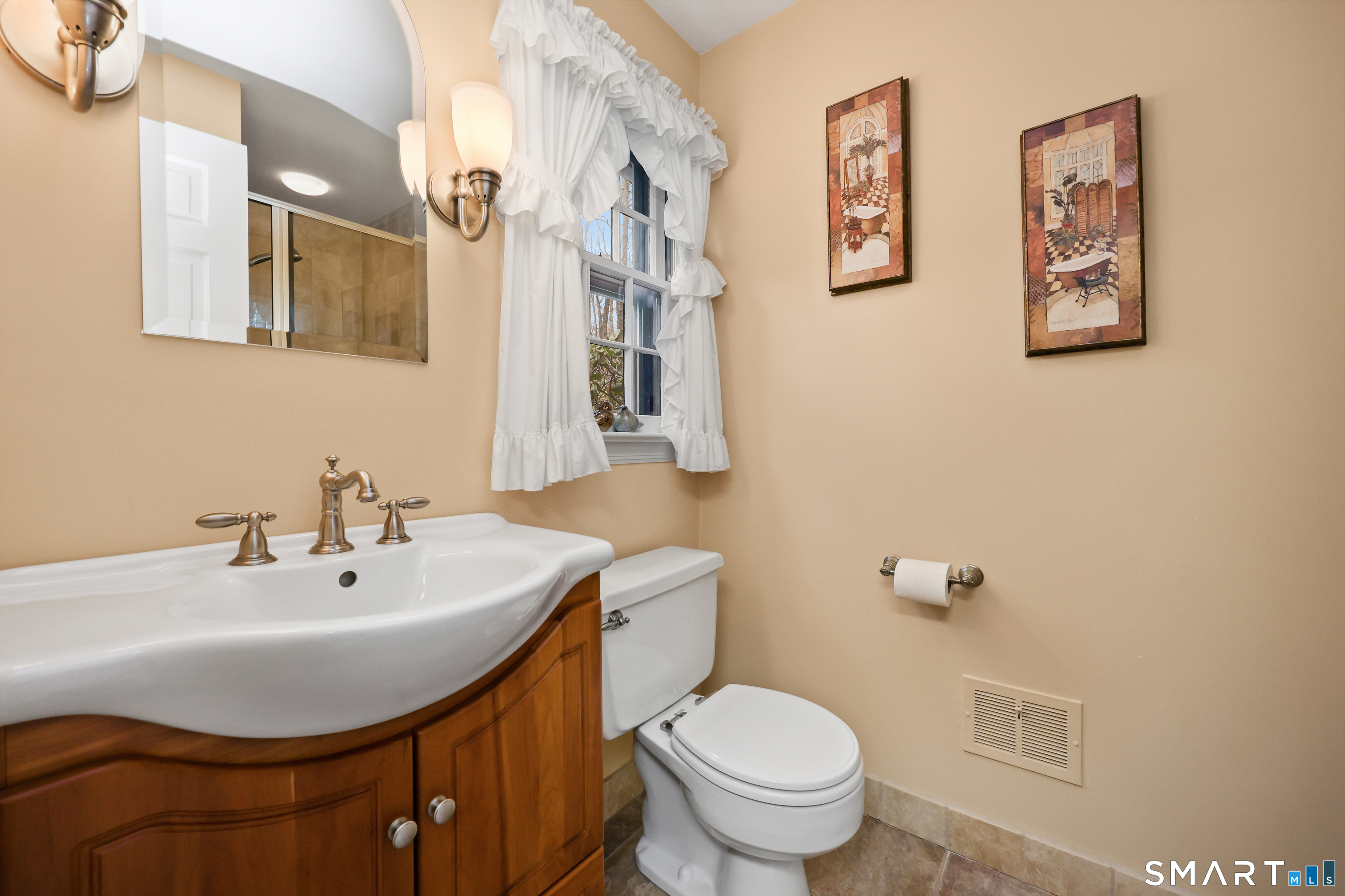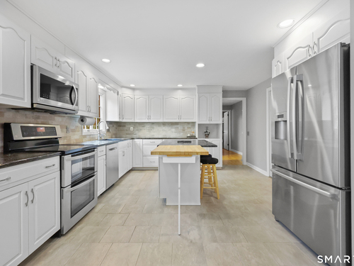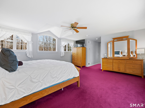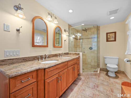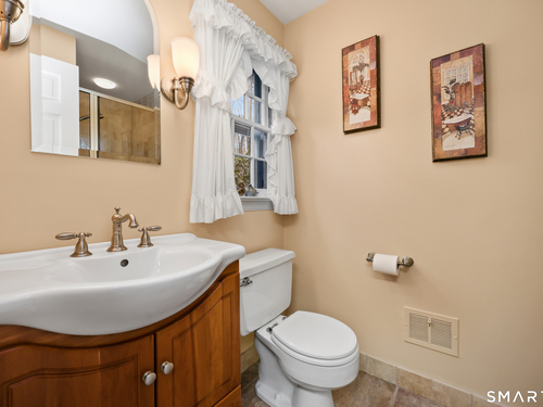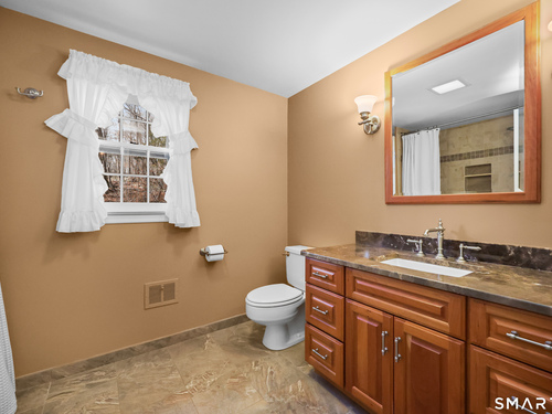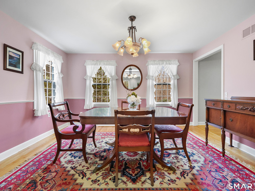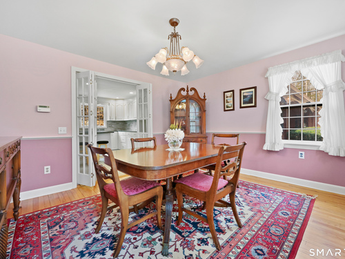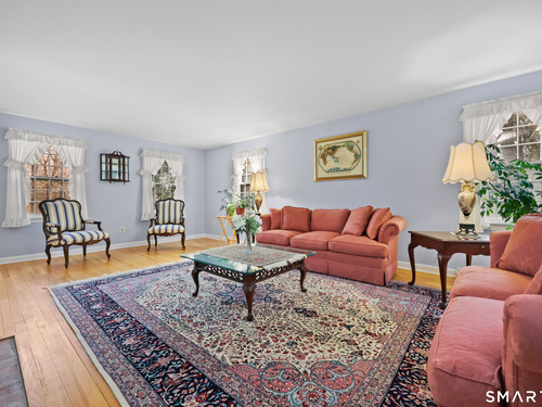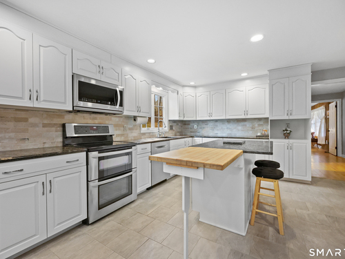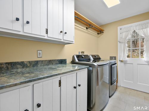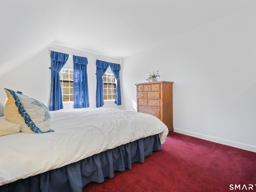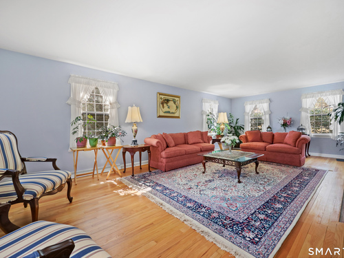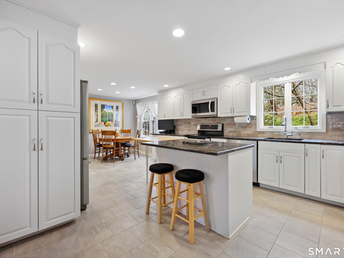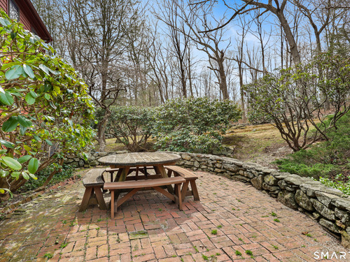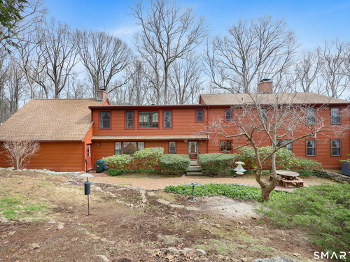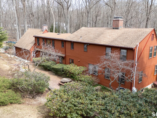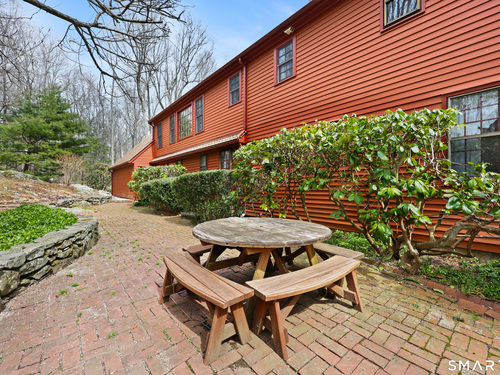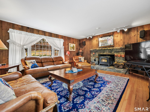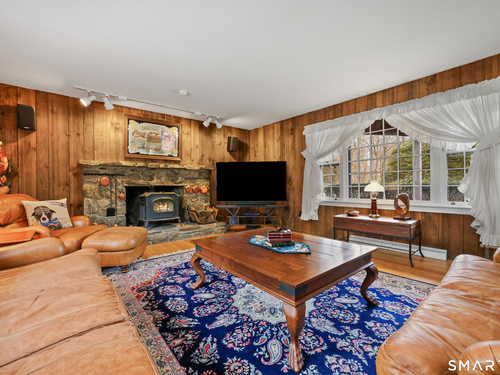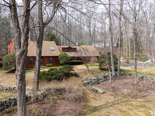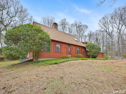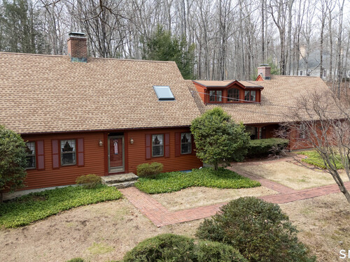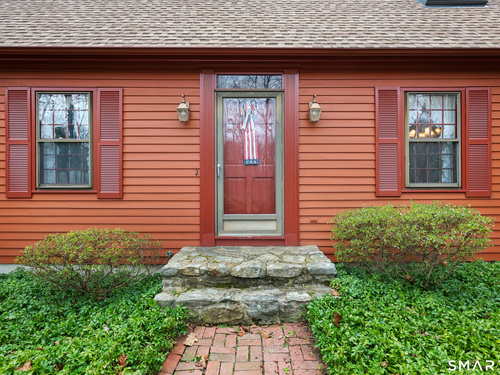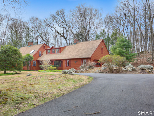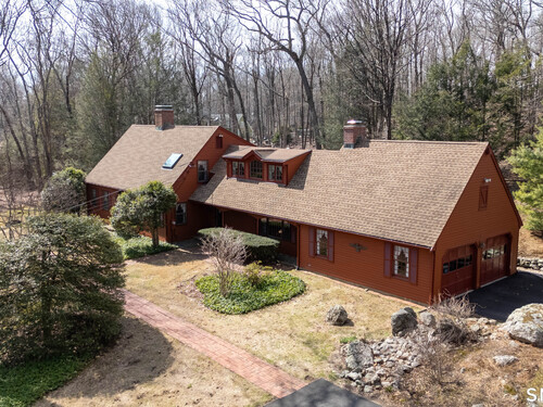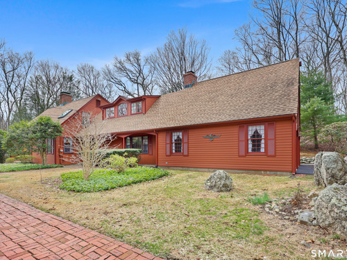 Set back along a scenic road, this timeless Cape offers plenty of charm, a well-designed layout, and thoughtful updates throughout. Walk up the brick path to either the side door w/covered porch or front door w/stone steps. Upon entering, the foyer welcomes you w/gleaming hardwood floors & an exposed brick wall, flanked by a spacious living room and an intimate dining room w/french doors. The front-to-back living room is filled with natural light, features a wood-burning fireplace, and offers views of the tranquil landscape from three sides. The kitchen captures serene rear views, features a cozy dining area enhanced by a unique open-hearth fireplace, granite counters & center island. Enjoy the spacious den w/custom cabinetry w/wet bar & stone fireplace w/wood stove. Full bath/laundry complete the main floor. The second floor features a primary MBR, w/an abundance of natural light, en-suite granite double sinks, jacuzzi & separate glass shower. Beyond the walk-in closet there is generous storage space offering potential for expansion. There are two add'l bedrooms, a full marble/tile bath, & an office/flex space w/skylight & walk-in closet. The lower level offers oodles of storage space. Enjoy your cup of coffee on the front covered porch w/access to the oversized garage. The scenic views continue into the backyard, featuring a well-designed brick patio w/stone wall set among landscaped grounds. Convenient location to shopping, Merritt and all of Easton's amenities!