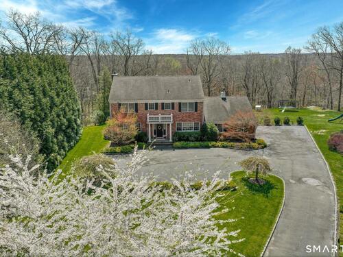Privately set at the end of a quiet North Stamford cul-de-sac, this gracious brick Colonial offers timeless architecture, thoughtful updates, and exceptional indoor-outdoor flow on over an acre of level, park-like grounds. Sun-filled living spaces and a seamless connection to the outdoors create a peaceful retreat with room to breathe-just beyond the city. A welcoming foyer opens to a curved staircase flanked by formal living and dining rooms. The beautifully updated kitchen features a large island, generous cabinetry, and stainless steel appliances-including Thermador ovens and gas range, a Sub-Zero refrigerator, and a wine cooler-and opens to the family room with fireplace and access to the expansive deck. Just off the garage entry, a functional mudroom with laundry space leads to a flexible office or guest bedroom with a nearby full bath. Upstairs, the primary suite offers an exceptionally large walk-in closet and a spacious en suite bath with dual vanities and soaking tub. Three additional bedrooms and a hall bath with double sinks complete the second level. The finished lower level provides generous recreation space and ample storage. The private backyard, complete with a large deck and flagstone patio, enjoys southern exposure and is ideal for outdoor dining or relaxation. Additional highlights include natural gas, city water, and an automatic generator. Conveniently located near neighborhood amenities while offering the peace and privacy North Stamford is known for!