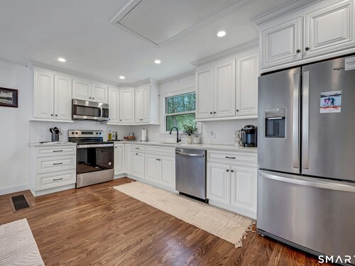 Turn-key and ideally set on a cul-de-sac near the Greenwich and Westover border, 192 Barclay Drive offers updated living, flexible space, and convenience less than one hour from NYC. Beautifully maintained, the home features sun-filled rooms, refinished hardwood floors, a recently renovated kitchen, updated baths, premium custom windows, new siding, upgraded HVAC, and numerous recent system improvements that reflect exceptional care. The private backyard is designed for both relaxation and entertaining, with a pool, refreshed deck, updated hardscape, and inviting outdoor spaces. An integrated wing of the home adds exceptional versatility, ideal for an in-law suite, guest quarters, pool lounge, home office, or studio. Just minutes to the Merritt Parkway, shopping, and dining.