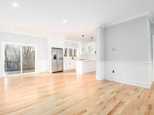 Balcony/Deck, Breakfast Bar, Breakfast Nook, Island, Sliders, Hardwood Floor