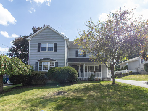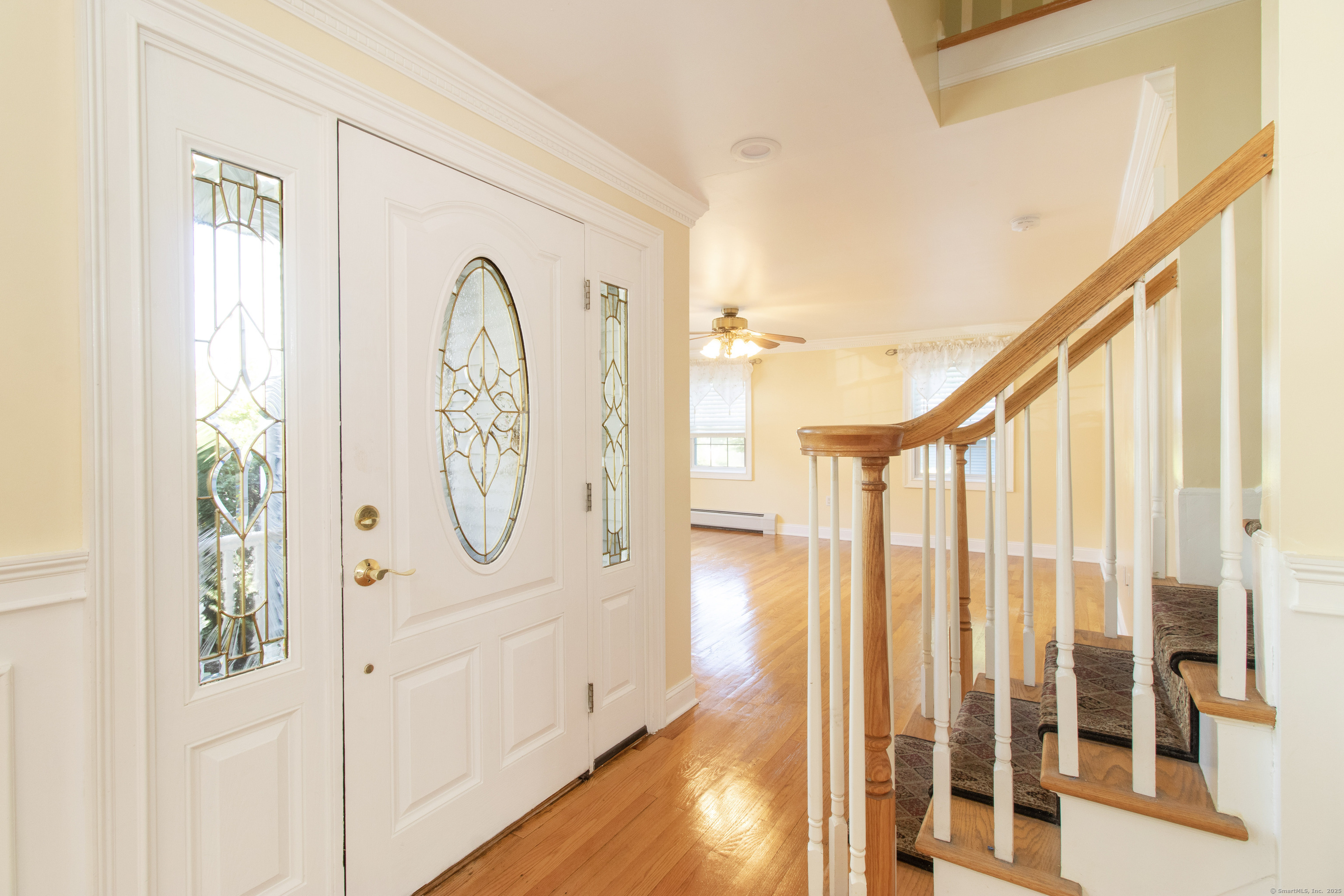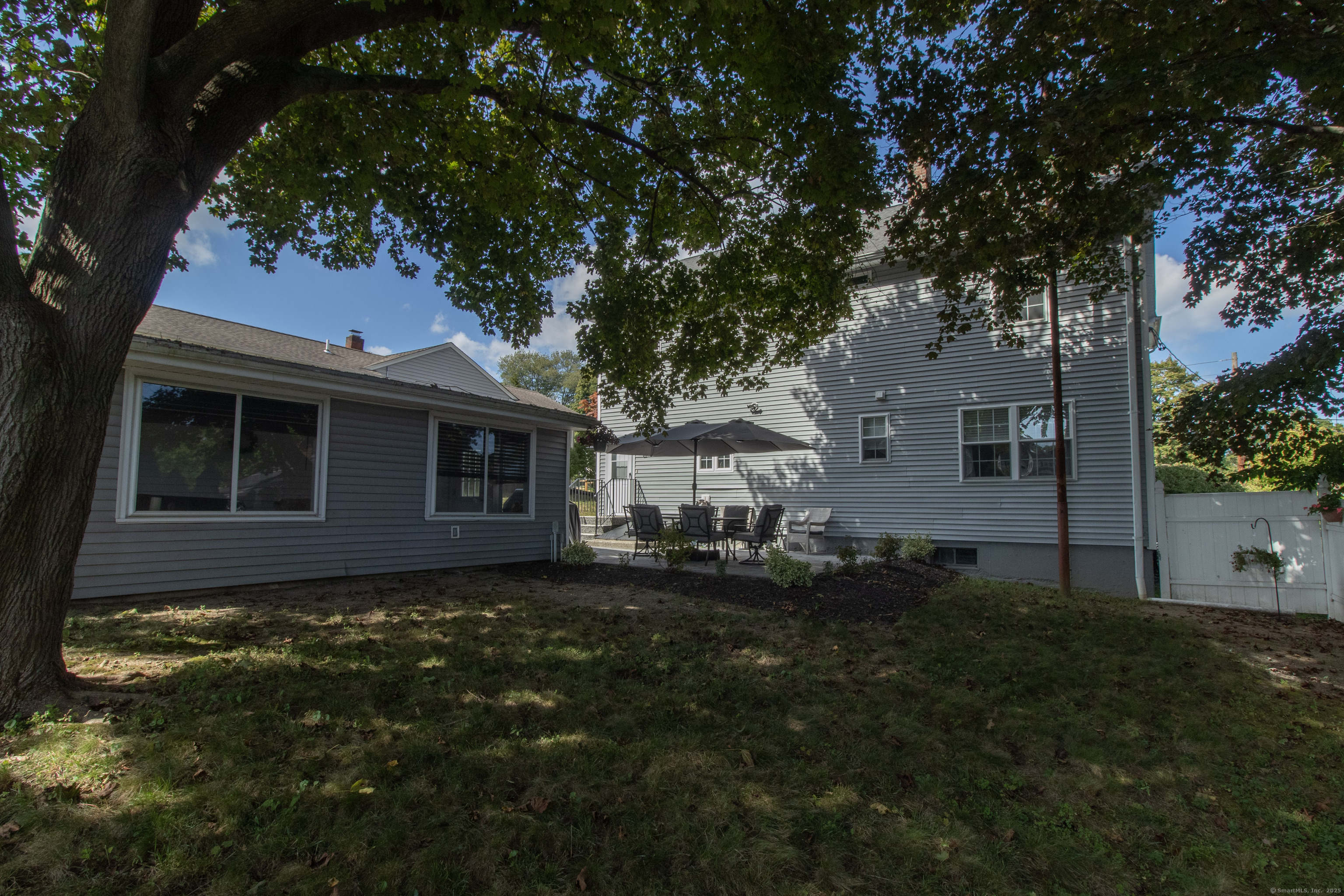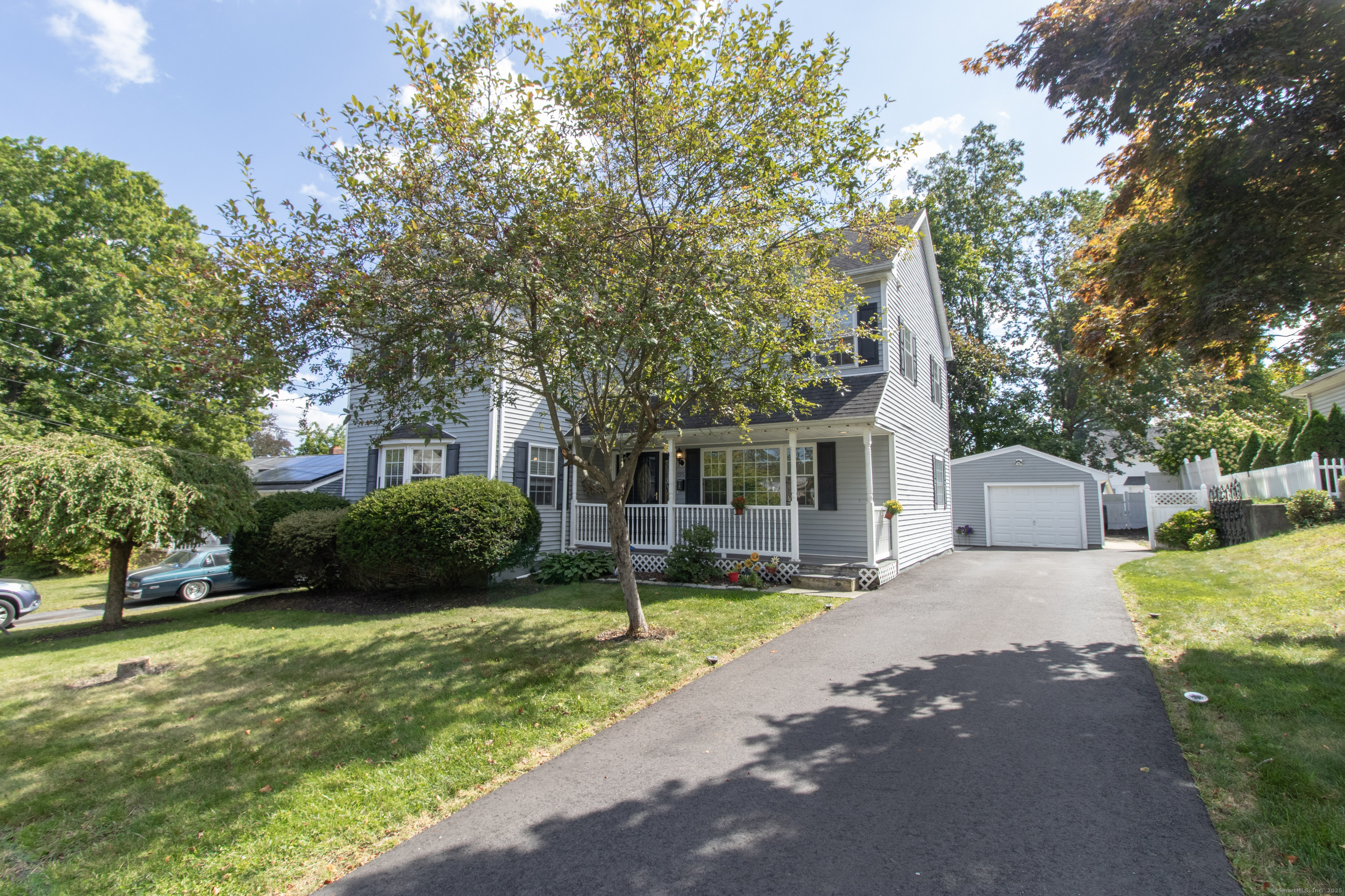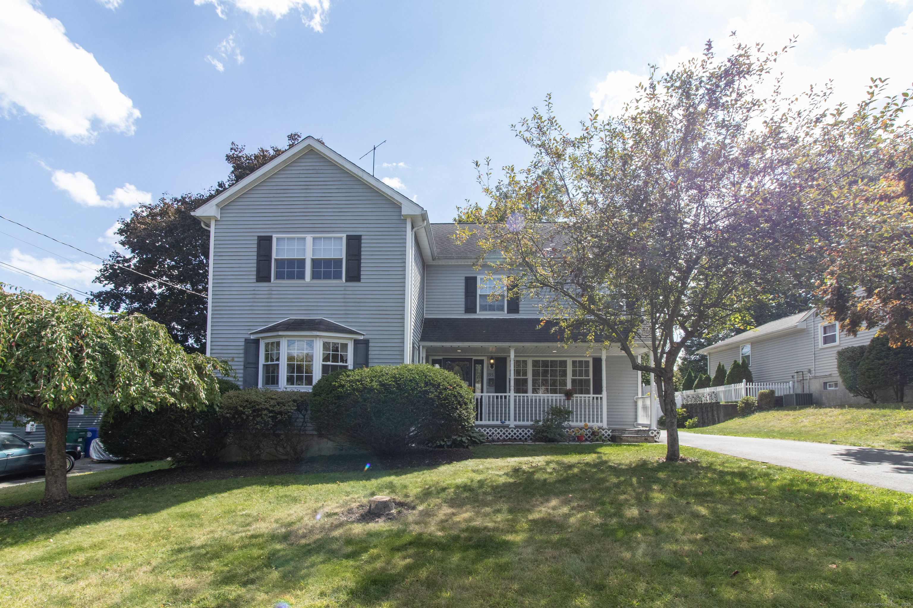 Welcome to this stunning 5-bedroom 3 full bath Paradise Green center-hall colonial, completely rebuilt in 2003 & lovingly maintained by the same owner for 31 years! One step from the inviting covered front porch brings you into a sun-filled interior designed for comfort and style. The first floor offers a formal living room with a pretty bay window, a spacious formal dining room with French doors leading to a large eat-in kitchen featuring rich walnut cabinetry, a center island, & granite counters. A first-floor primary bedroom with double closets & a full bath with stall shower provides convenience & flexibility. Custom moldings and fine finishes enhance the elegance throughout. Upstairs, you'll find a king-sized bedroom plus three additional queen-sized bedrooms, all serviced by two beautifully remodeled full baths with tub/shower enclosures & a laundry room. Enjoy outdoor living in the private, deep yard-perfect for entertaining with its patio area and a three-season porch with electric fireplace & hot tub. The lower level offers an additional 600 sq ft recreation room for play, work, or relaxation. Long, newly paved driveway provides plenty of off-street parking & leads to a one car garage. New furnace and hot water heater! Tucked away at the end of a cul-de-sac, this home is just a short stroll along sidewalks to the shops, restaurants, & vibrant community of Paradise Green. Easy access to I-95, Merritt Pkwy, Route 8 & Metro North. Truly a wonderful home and value!
