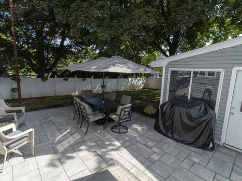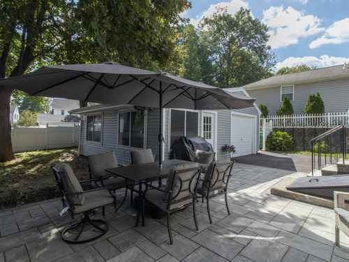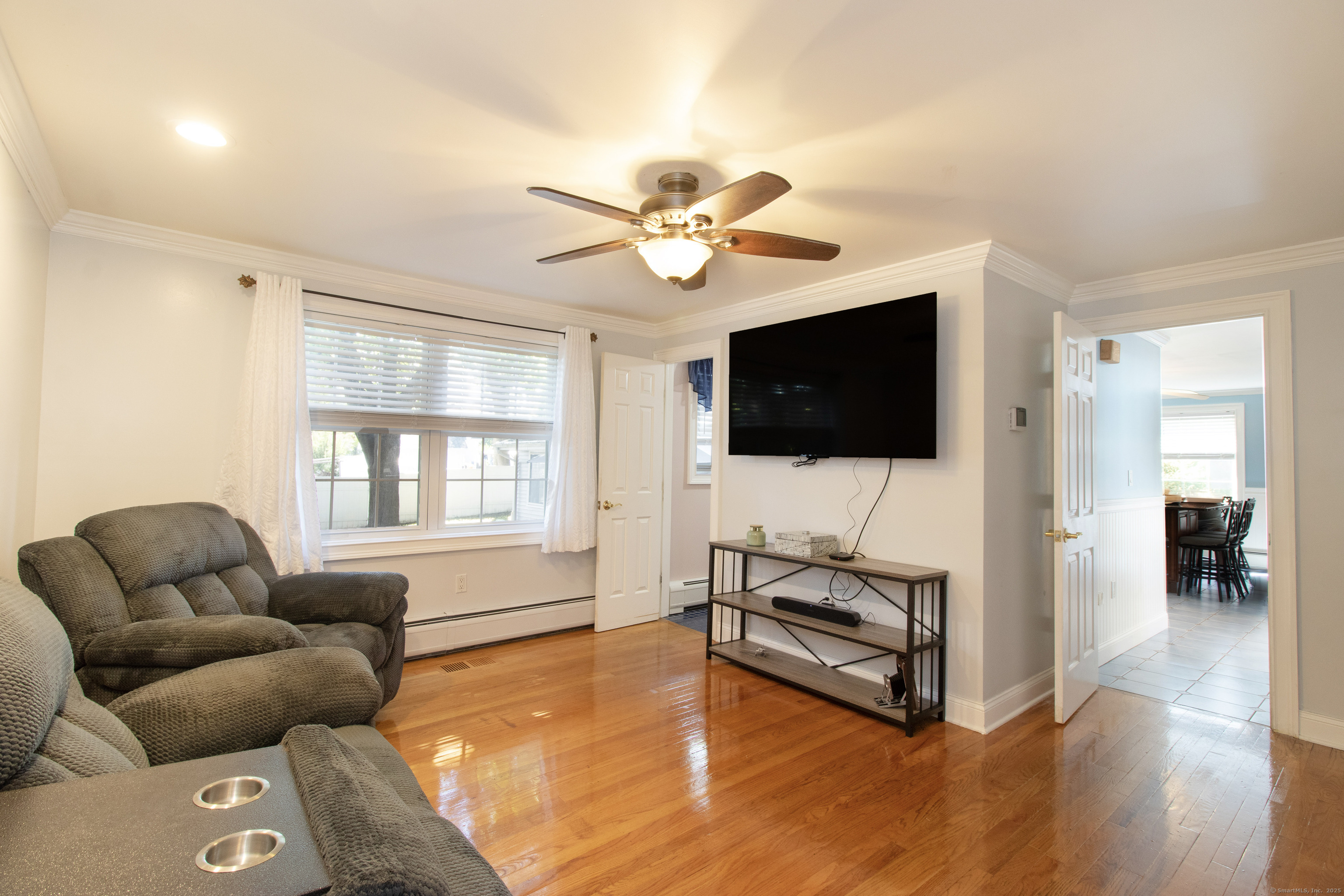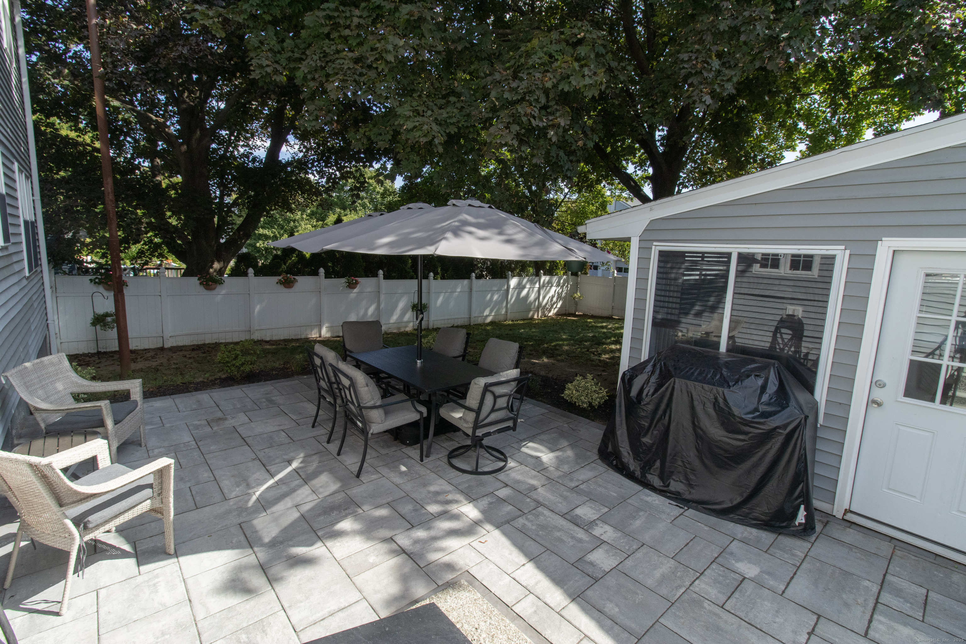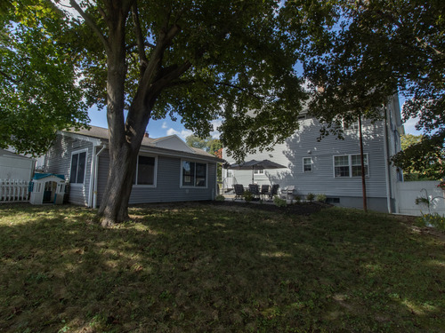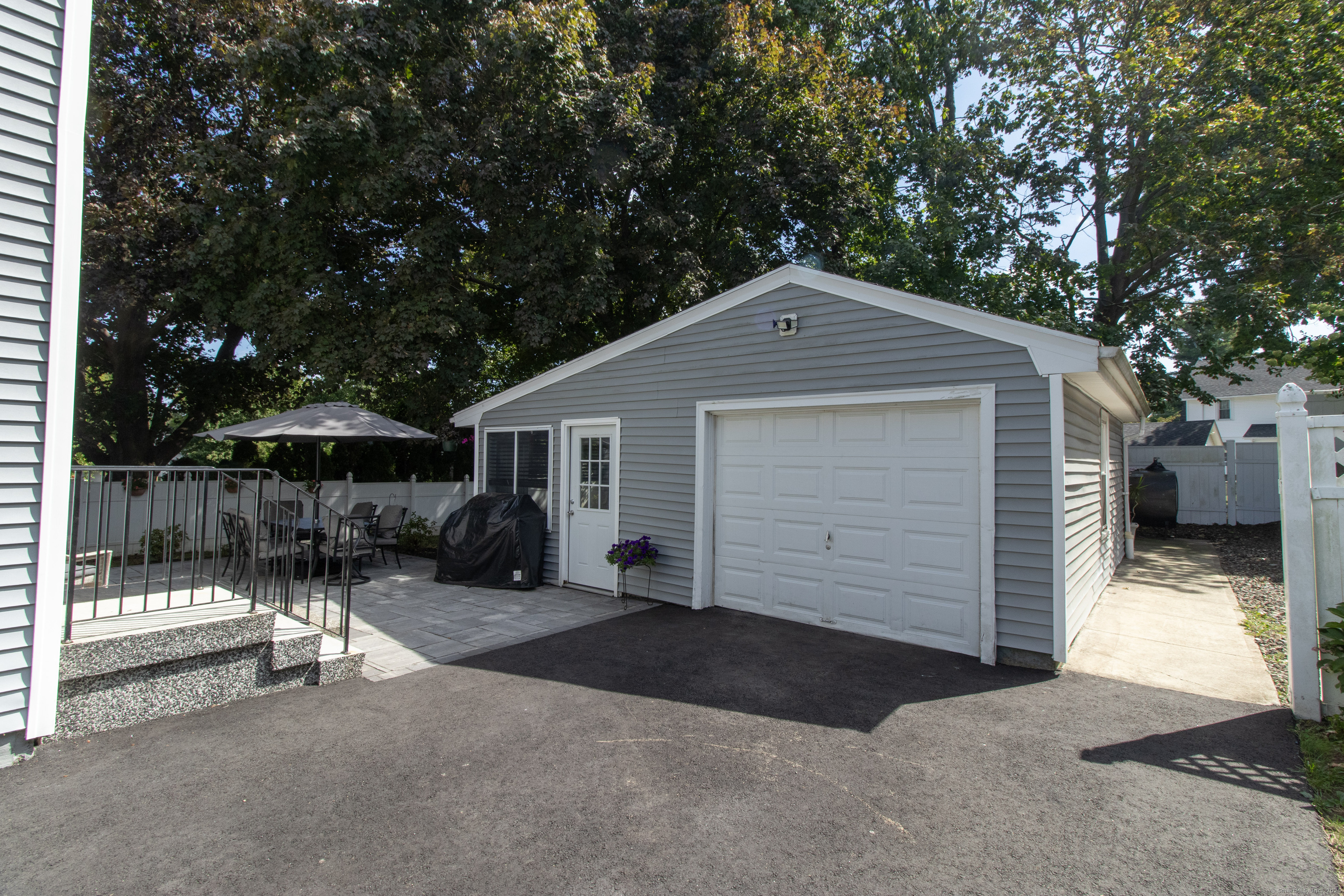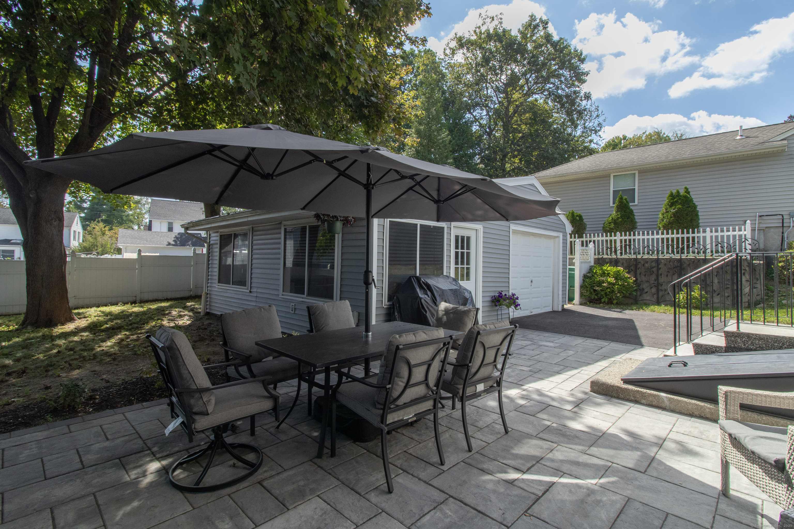 Welcome to this stunning 5-bedroom 3 full bath Paradise Green center-hall colonial, completely rebuilt in 2003 & lovingly maintained by the same owner for 31 years! One step from the inviting covered front porch brings you into a sun-filled interior designed for comfort and style. The first floor offers a formal living room with a pretty bay window, a spacious formal dining room with French doors leading to a large eat-in kitchen featuring rich walnut cabinetry, a center island, & granite counters. A first-floor primary bedroom with double closets & a full bath with stall shower provides convenience & flexibility. Custom moldings and fine finishes enhance the elegance throughout. Upstairs, you'll find a king-sized bedroom plus three additional queen-sized bedrooms, all serviced by two beautifully remodeled full baths with tub/shower enclosures & a laundry room. Enjoy outdoor living in the private, deep yard-perfect for entertaining with its patio area and a three-season porch with electric fireplace & hot tub. The lower level offers an additional 600 sq ft recreation room for play, work, or relaxation. Long, newly paved driveway provides plenty of off-street parking & leads to a one car garage. New furnace and hot water heater! Tucked away at the end of a cul-de-sac, this home is just a short stroll along sidewalks to the shops, restaurants, & vibrant community of Paradise Green. Easy access to I-95, Merritt Pkwy, Route 8 & Metro North. Truly a wonderful home and value!