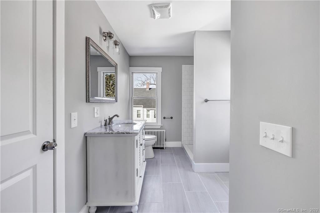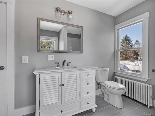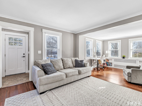 *** Weather permitting open house Sunday from 12-2PM. Please check before coming to open house. This beautiful colonial has been renovated and is waiting for its new owners. Home features a white kitchen, stainless steel appliances, tiled back splash and quartz counters. Beautiful, enclosed porch off kitchen. Hardwood floors throughout. Large formal dining and living room combo. Main level bedroom (currently being used as an office) and updated half bath finish off the 1st floor. Primary bedroom with newer primary full bath. Additional 2 bedrooms with shared updated full bath with newer fixtures and vanity. Walk up attic. This home has newer siding, roof, replacement windows throughout. Basement area features laundry hook up and mechanicals, with 2 areas for storage. 3 car detached garage with loft storage. City water and sewers. This one won't last long!