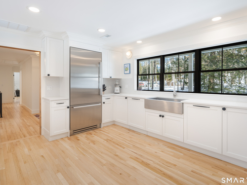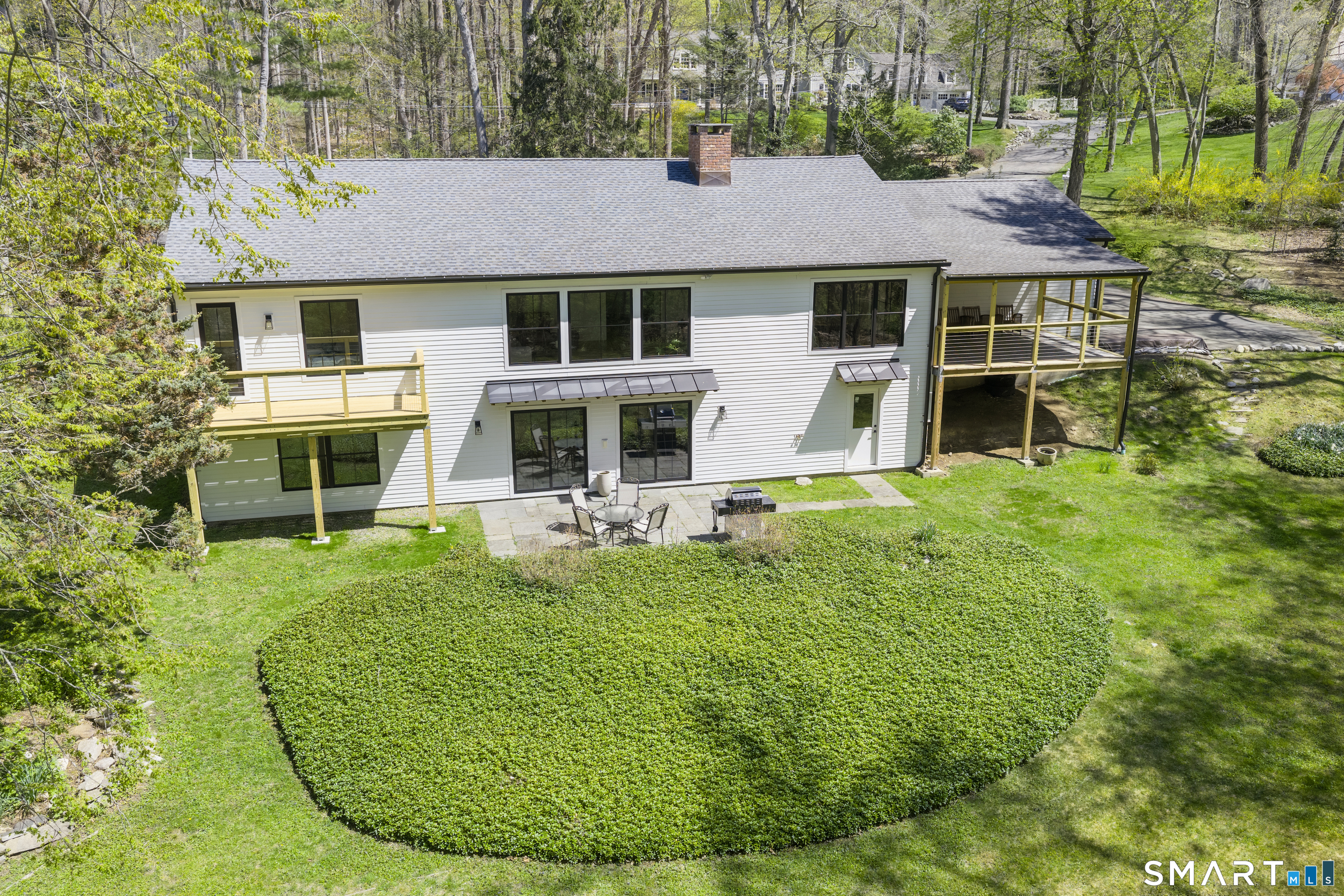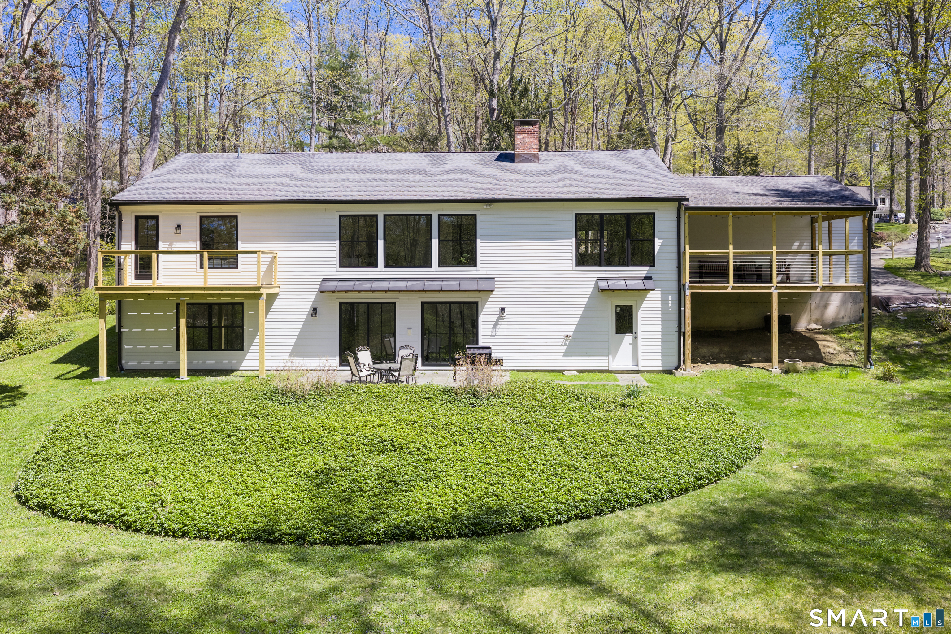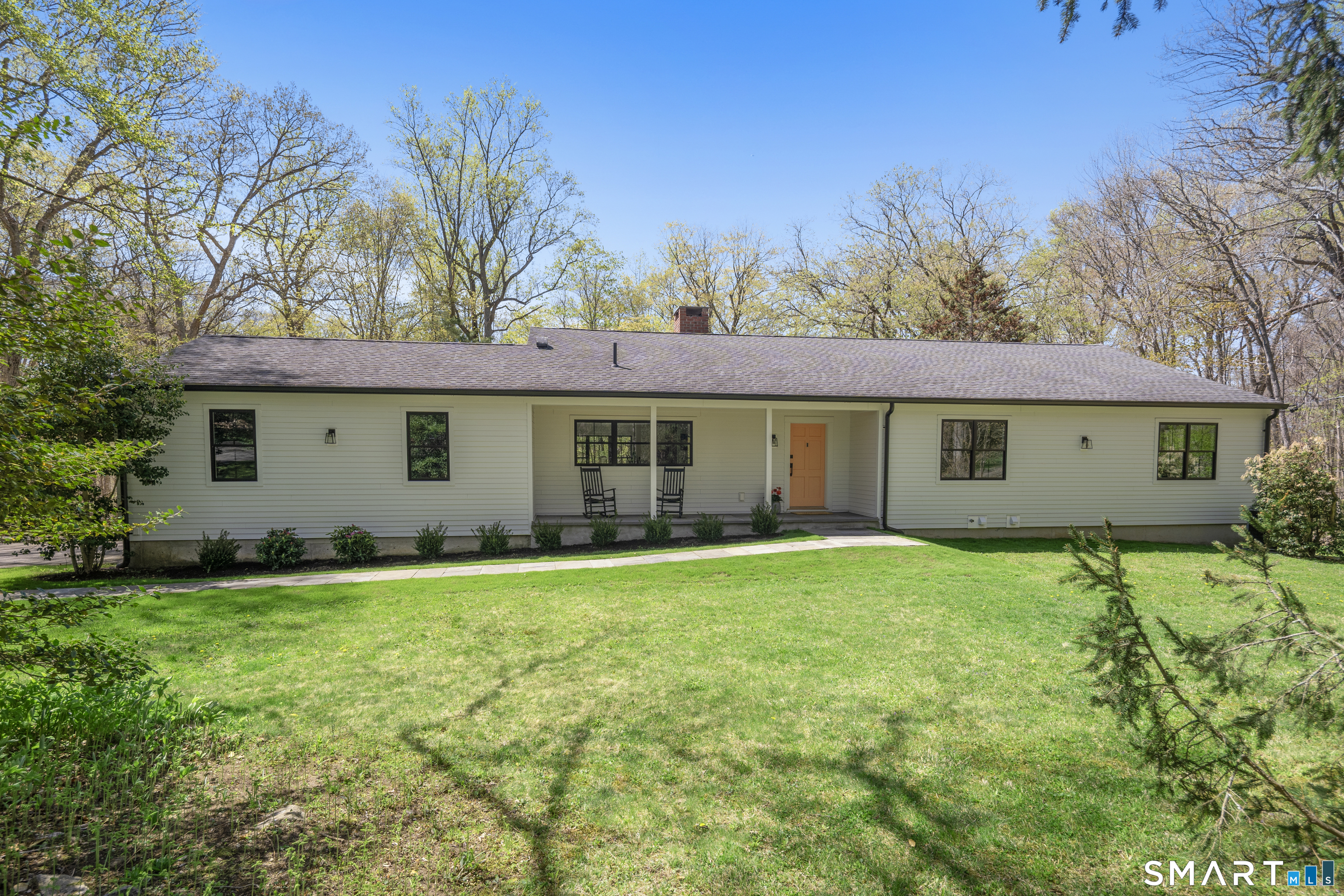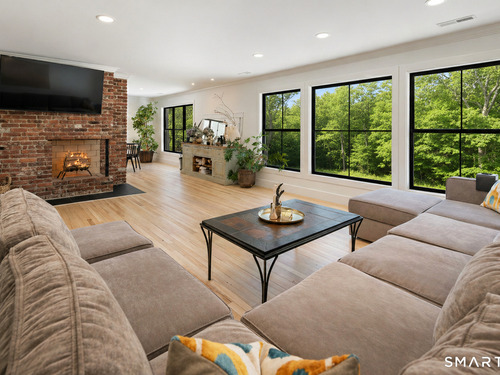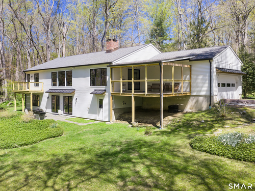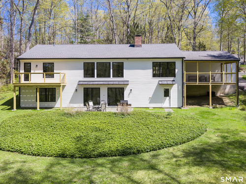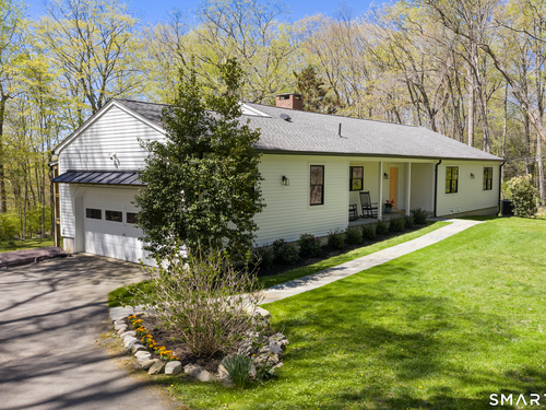 Located in the highly sought-after Charcoal Hill neighborhood, this home sits on 2+ private acres bordering a 7-acre Aspetuck Land Trust preserve. Tucked on a quiet cul-de-sac among distinguished Frazier Peters homes, it offers serene privacy with convenient access to town, the Merritt Parkway, and Coleytown schools. This meticulously maintained, move-in ready 2-level residence features 3 bedrooms and 3 full baths, PLUS a fully finished walk-out lower level with a spacious living room featuring a fireplace, a full bath, and two additional rooms ideal for a home office, guest space, or gym-perfect for today's flexible living needs. The main level is anchored by a sprawling living room that flows seamlessly into the dining area and a chef's kitchen. Outfitted with premium built-in Bertazzoni appliances, Kohler fixtures, and generous storage, the kitchen is truly the heart of the home. Sunset views can be enjoyed from the primary bedroom, living areas, and dual decks. Structural double-hung Marvin windows and handmade iron stair railings add architectural elegance, while modern Insteon SMART systems for lighting and HVAC ensure efficiency. This is a rare opportunity to enjoy luxury living surrounded by protected natural beauty in a prime Westport location.