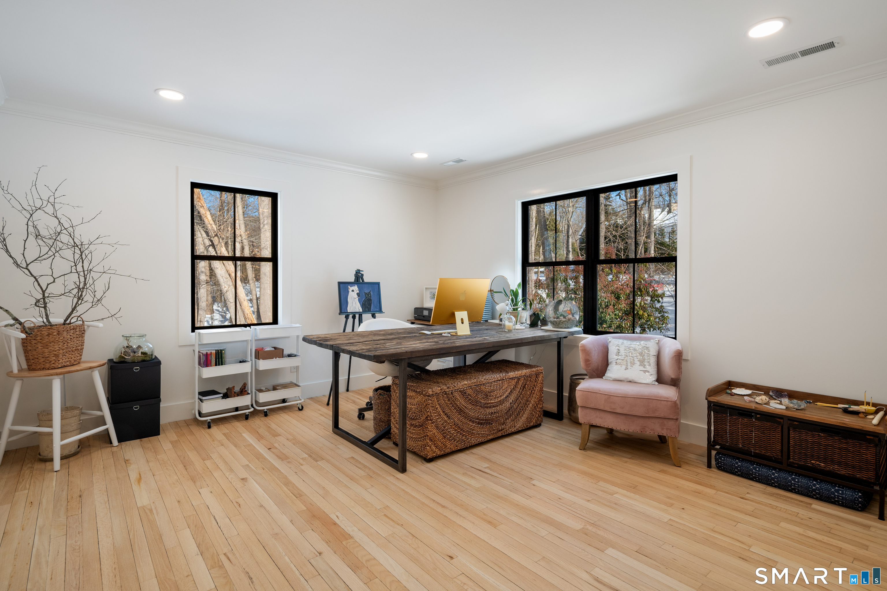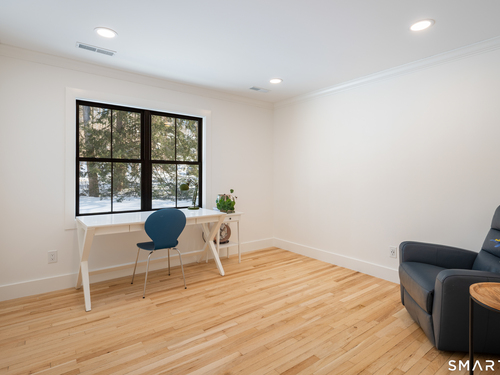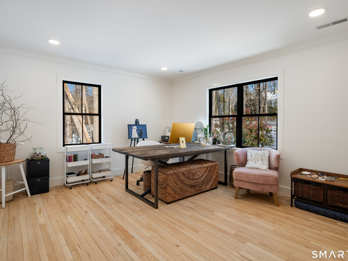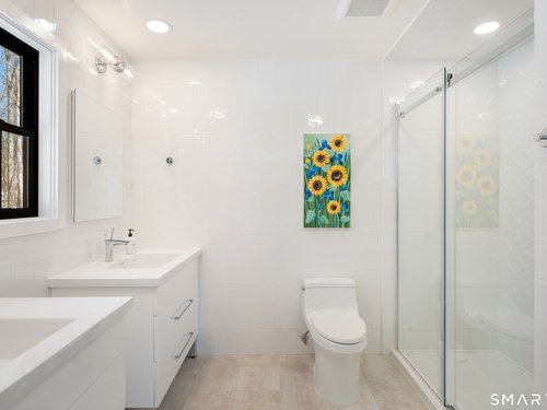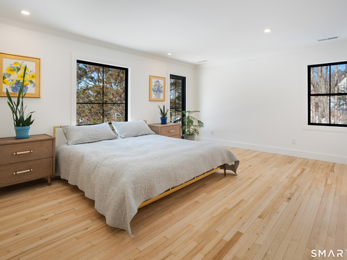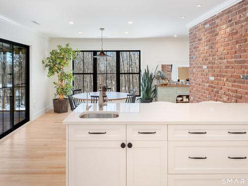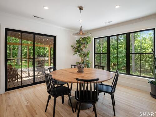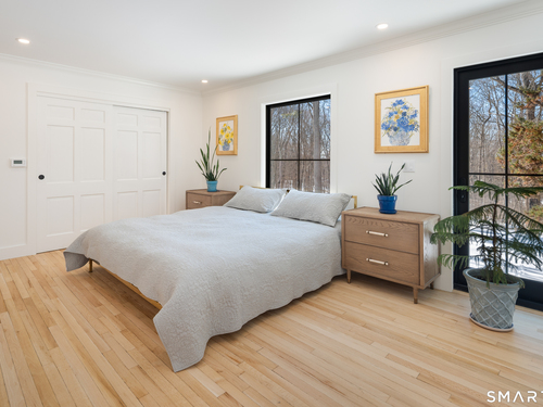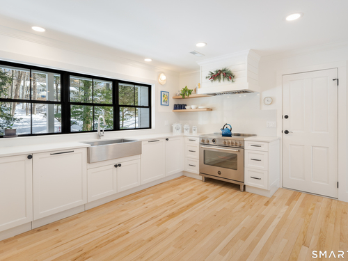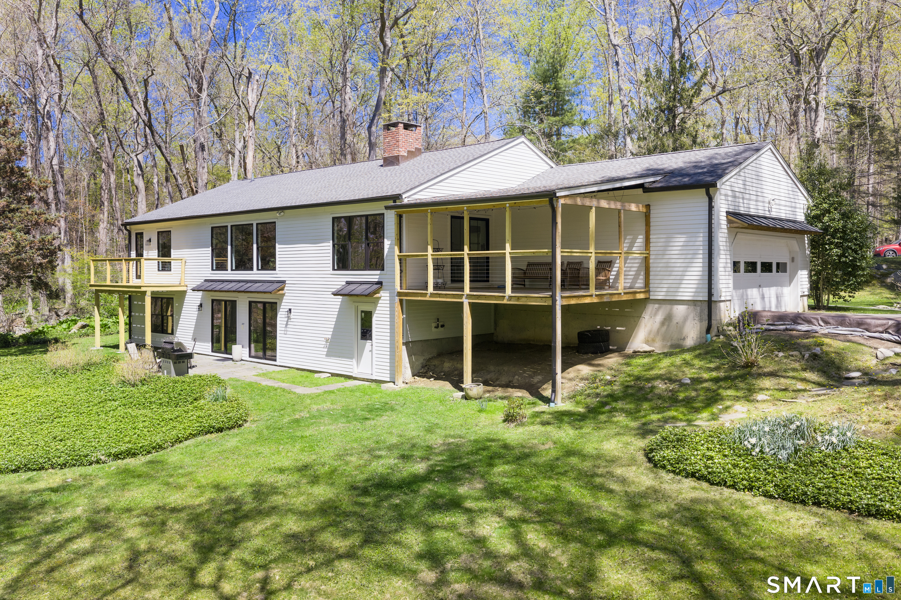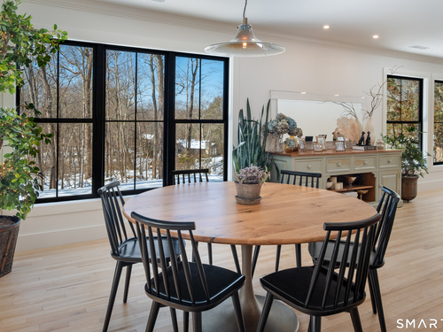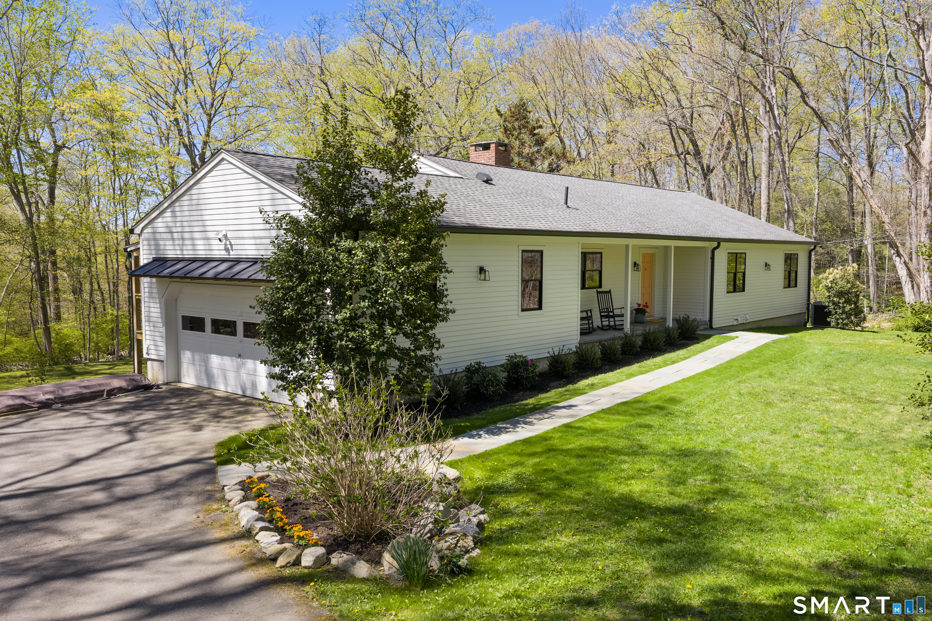 Located in the highly sought-after Charcoal Hill neighborhood, this home sits on 2+ private acres bordering a 7-acre Aspetuck Land Trust preserve. Tucked on a quiet cul-de-sac among distinguished Frazier Peters homes, it offers serene privacy with convenient access to town, the Merritt Parkway, and Coleytown schools. This meticulously maintained, move-in ready 2-level residence features 3 bedrooms and 3 full baths, PLUS a fully finished walk-out lower level with a spacious living room featuring a fireplace, a full bath, and two additional rooms ideal for a home office, guest space, or gym-perfect for today's flexible living needs. The main level is anchored by a sprawling living room that flows seamlessly into the dining area and a chef's kitchen. Outfitted with premium built-in Bertazzoni appliances, Kohler fixtures, and generous storage, the kitchen is truly the heart of the home. Sunset views can be enjoyed from the primary bedroom, living areas, and dual decks. Structural double-hung Marvin windows and handmade iron stair railings add architectural elegance, while modern Insteon SMART systems for lighting and HVAC ensure efficiency. This is a rare opportunity to enjoy luxury living surrounded by protected natural beauty in a prime Westport location.