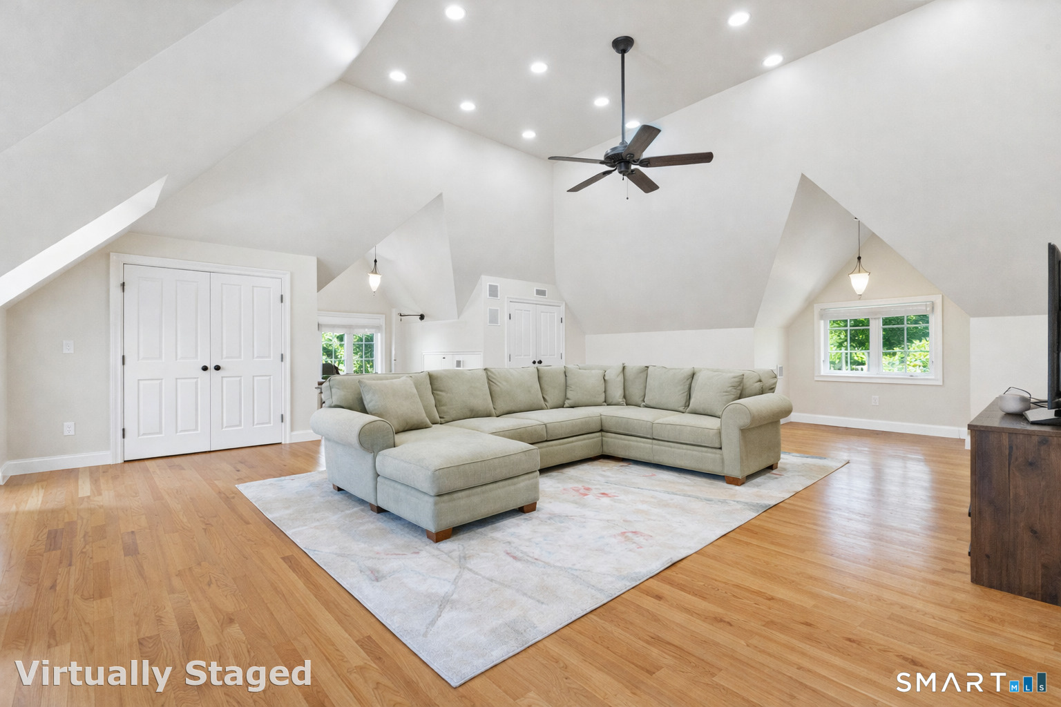 Skylight, Cathedral Ceiling, Ceiling Fan, Hardwood Floor