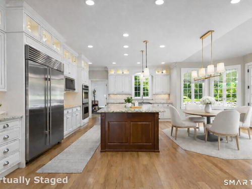 ***Exceptional Value in Redding CT*** A refined Connecticut country residence for full-time living or weekend enjoyment. Set on nearly three meticulously landscaped acres on a private cul-de-sac drive with only 4 residences, you will enjoy living in one of Redding's most desirable residential enclaves. 2 Longwood Drive offers a safe, secure, and sophisticated country lifestyle that resonates naturally with buyers seeking space, privacy, and enduring quality. Commuters into NYC enjoy a reasonable 1.5 hour drive or can take the Redding train directly to Grand Central if preferred. Thoughtfully designed and meticulously maintained by its original owner, this custom-built colonial blends classic New England architecture with modern luxury, creating a residence equally suited for full-time living or refined weekend use. Spanning 6,259 square feet, the home features beautifully proportioned interiors with spacious 9-14 foot ceilings, hardwood floors throughout, and an open yet elegant flow ideal for both everyday living and entertaining. A 47' stone-covered front porch, perfect for watching the amazing sunsets, and a central foyer introduce the main level, where light-filled spaces unfold seamlessly from room to room. The sunlit chef's kitchen serves as the centerpiece of the home, appointed with premium Sub-Zero/Wolf/Thermador appliances, custom cabinetry, a generous center island, and a butler's pantry, each designed for effortless hosting and daily comfort.