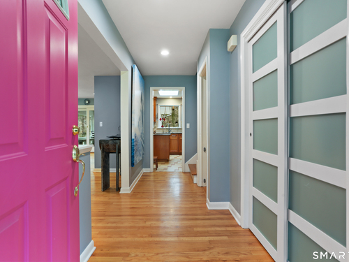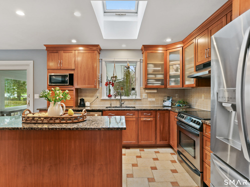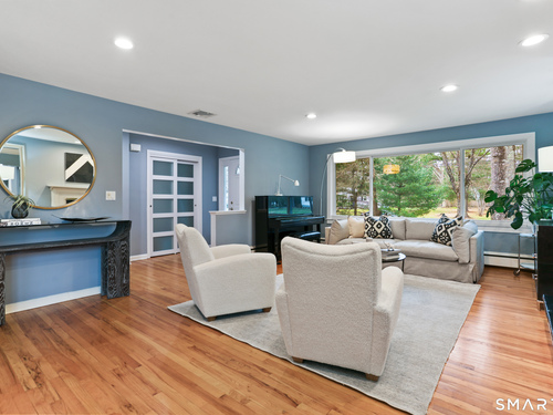NOTE: Best and Final offers by Monday Jan 26 5 PM. No Escalation clauses.Welcome to this gracious, impeccably maintained home, perfectly situated on a serene, one-acre flat lot in a lovely neighborhood with no through traffic. Offering the ideal combination of comfort & convenience, this inviting residence features 3 bedrooms & 2.5 baths with a light-filled, open main level designed for everyday living & effortless entertaining. The spacious living room centers around a cozy fireplace, while the kitchen features clean-lined wood cabinetry, a functional island, & easy entry to a fabulous three-season porch-perfect for enjoying tranquil views of the landscaped gardens. The primary suite includes an en-suite bath with double sinks; skylights fill the bedroom with natural light. Two additional bedrooms flank a versatile sitting room that can serve as a library, office, or relaxation area. The lower level offers a generous family/playroom, laundry area, & a sunlit additional room ideal for a second office, art studio, or craft space. Direct access to the two-car garage adds everyday convenience, & the home's solid construction ensures lasting quality. Step outside to discover a beautifully maintained garden with blooming shrubs, a patio for lounging, & a spacious lawn for play. A whole-house generator provides peace of mind year-round. Located near Coleytown schools and just minutes from town, this property offers a private, walkable neighborhood with easy access town.