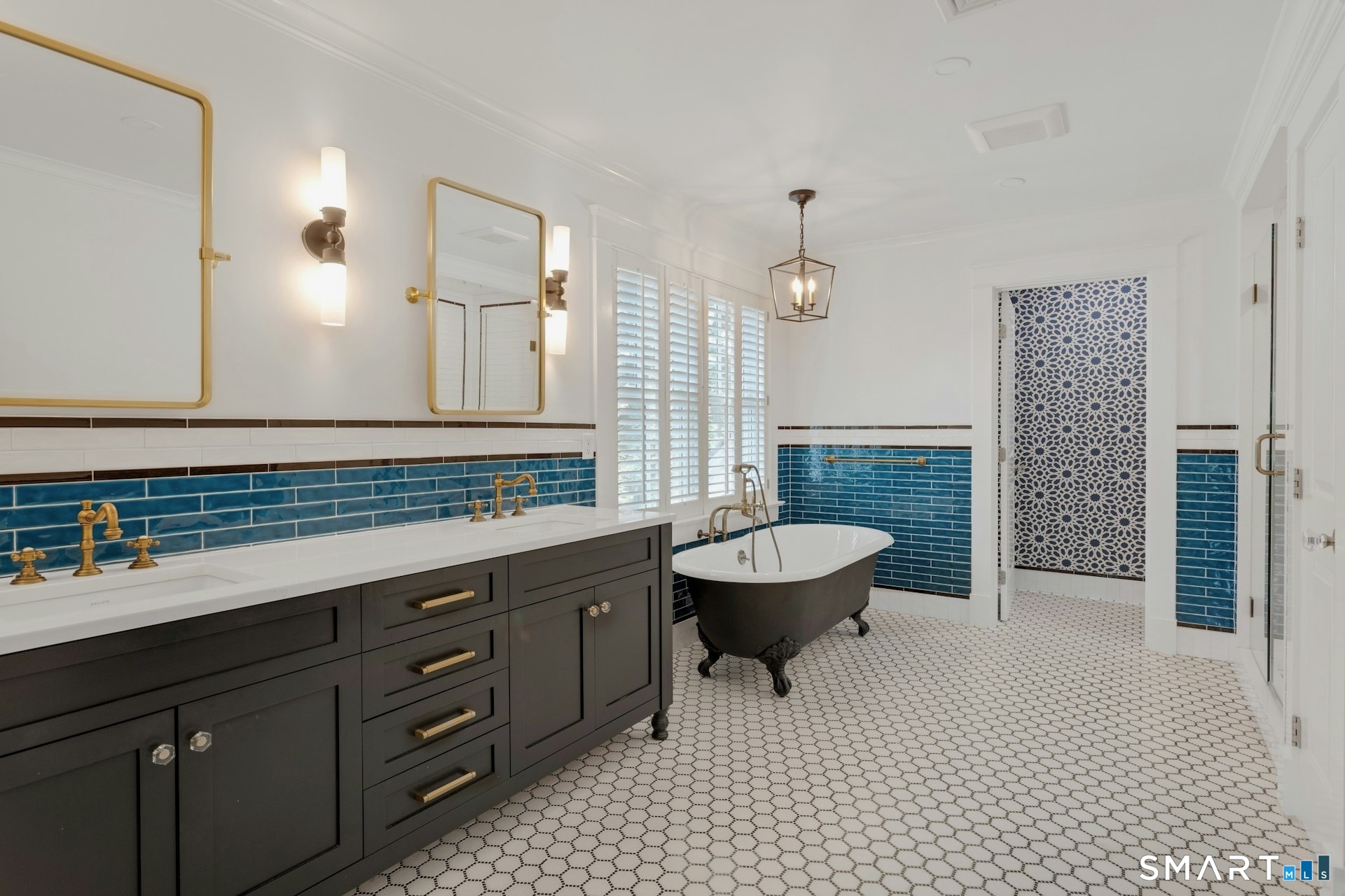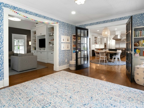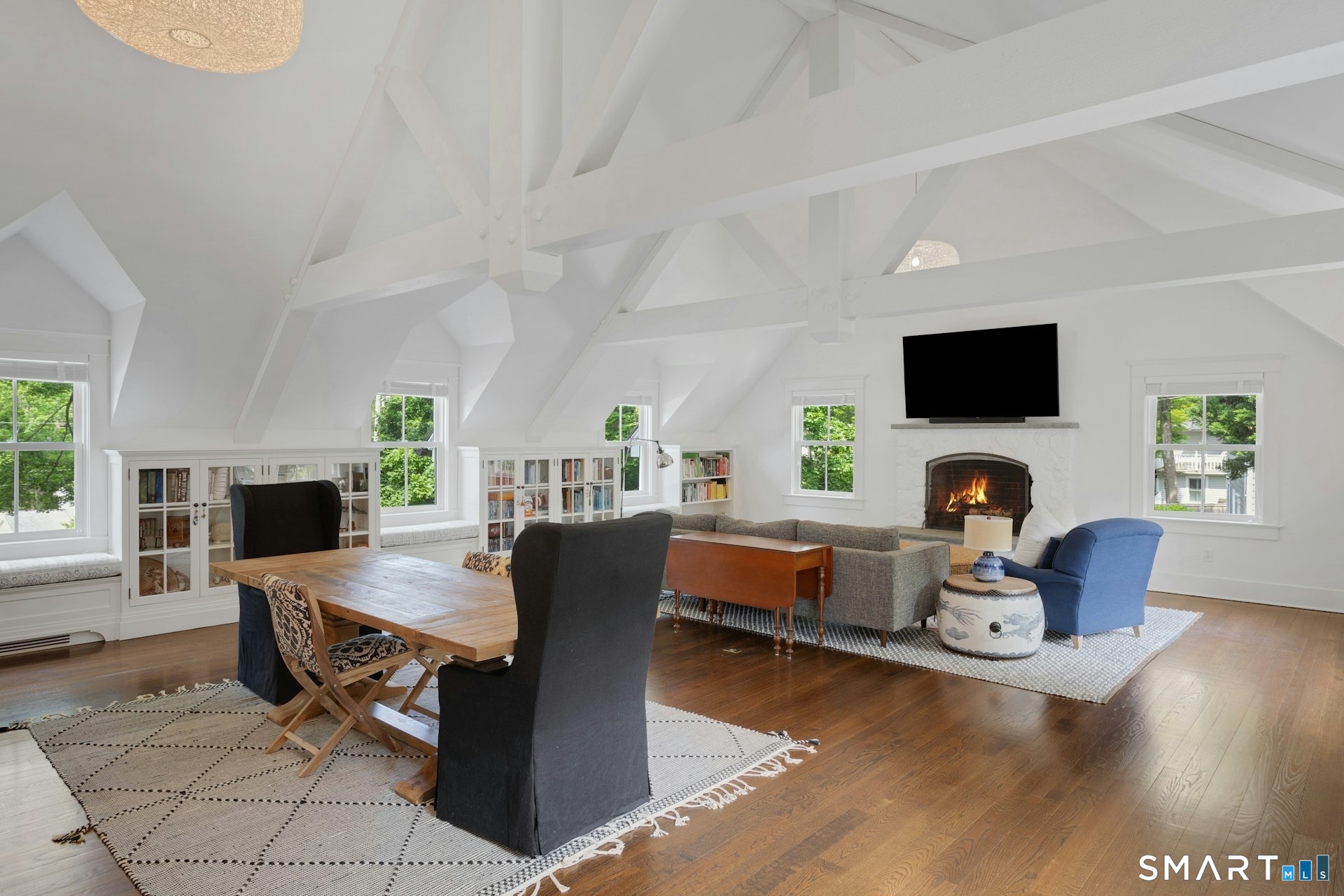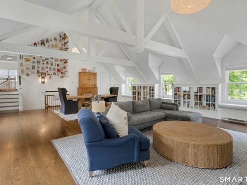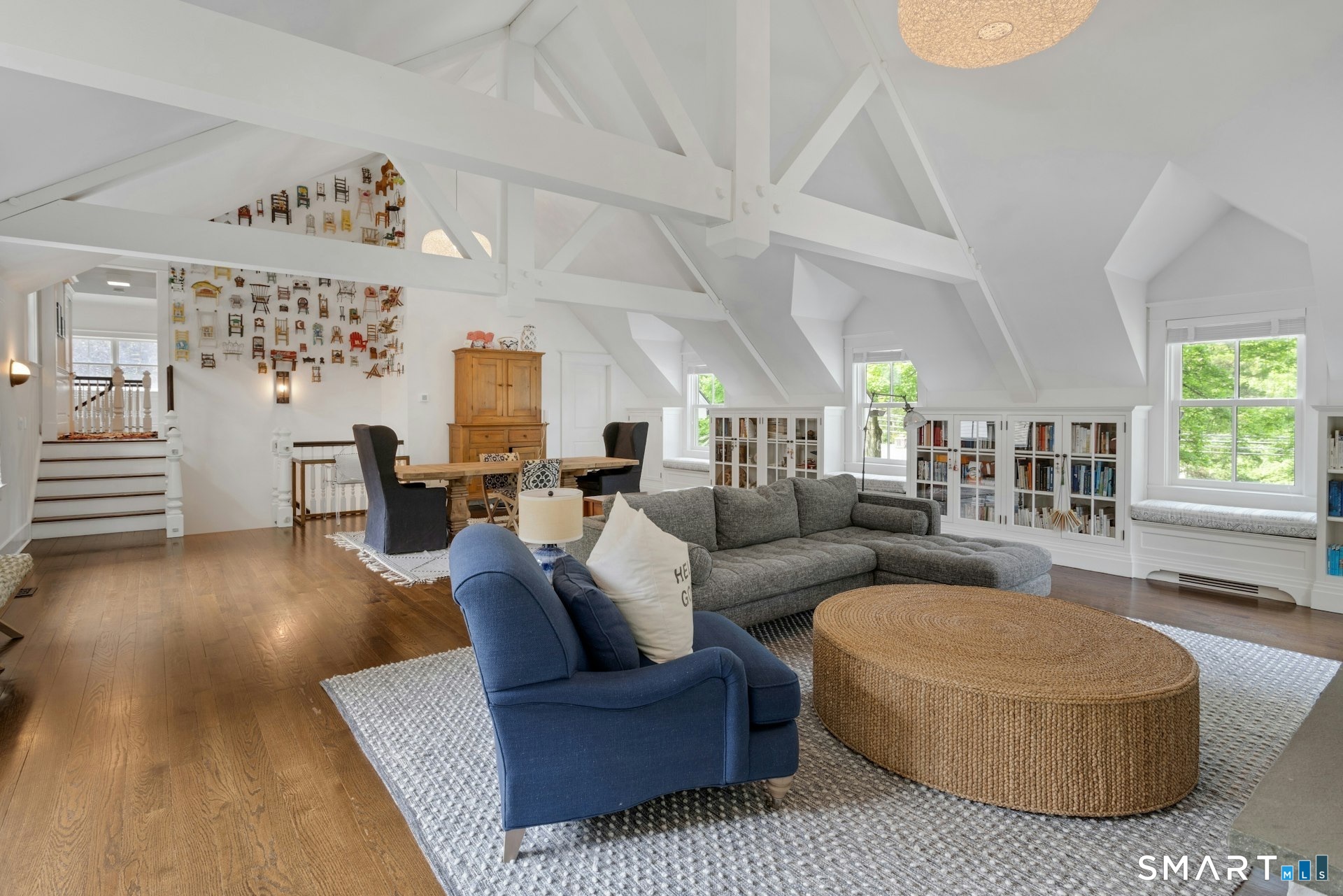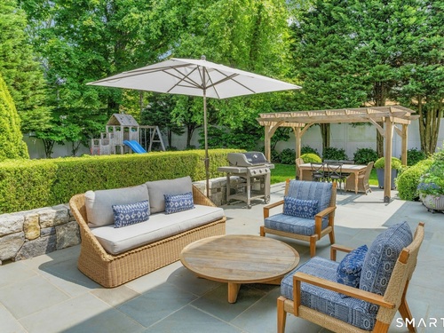 The moment you step onto the inviting front porch, you'll feel the warmth and charm of this exceptional 5-bedroom, 4.5-bath Colonial perched on a quiet cul-de-sac. Experience sophisticated design, unparalleled comfort, and an unbeatable location. Welcome to your dream home in Darien. The heart of the home is the chef's kitchen, fully renovated and featuring top-of-the-line appliances, a leathered black quartz island, and space for everyone to gather. Flowing through french doors to the spacious family room, adorned with custom built-ins and the sun-drenched playroom that opens to the professionally landscaped backyard and terrace-your private oasis for outdoor living. Upstairs, the luxurious primary suite is a true retreat, boasting a cozy fireplace, an expansive walk-in closet, and a spa-inspired bathroom with a double vanity, oversized shower, and a classic clawfoot tub. The additional 4 bedrooms all gift generous size, oversized closets and 3 more fully renovated bathrooms. The great room wows with size and soaring exposed beams, a striking stone fireplace. A fun, warm and inviting spacee for all to enjoy. Don't forget the basement with finished space, workout area and a hockey shooting room. Situated just minutes from school, the train, parks, downtown shops, and acclaimed restaurants, this property offers luxury living along with convenience and a true sense of community.
