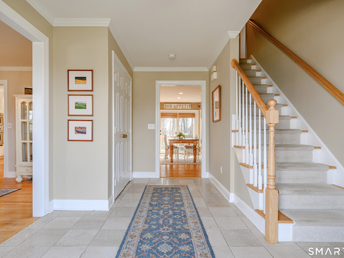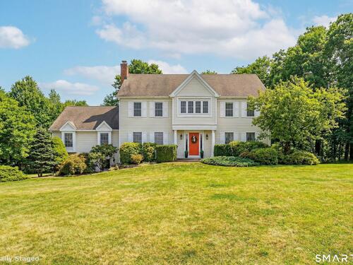 Welcome to 20 Charter Ridge Road, a classic 4-bedroom Colonial nestled on a 1.31 acre corner lot that offers a blend of timeless design and everyday comfort. Enjoy the views of the spectacular sunsets from the front of the house. Upon entering this warm and inviting home, you're greeted by a wide foyer that flows into the cozy living room and large dining room or straight into the kitchen. You'll love the updated kitchen with it's soft, neutral palette featuring loads of storage, granite counters, induction cook top, convection wall oven and microwave, and island with butcher block top. The french door in the eating area leads out to the deck with a view of the beautiful, private back yard perfect for outdoor entertaining. The kitchen's open design flows effortlessly into the family room with vaulted ceiling and cozy wood-burning fireplace and built in entertainment center. On the main level, you'll also find a spacious laundry room and half bath. The upper level includes the primary suite with hardwood floor, large bathroom with separate tub and shower and a large walk-in closet, as well as 3 other bedrooms with newly installed wall/wall carpet and fresh paint in the two front bedrooms, and another full bathroom filled with natural light. The partially finished basement includes room for a home office, playroom and/or gym. Don't miss this opportunity to make this wonderful home your own!