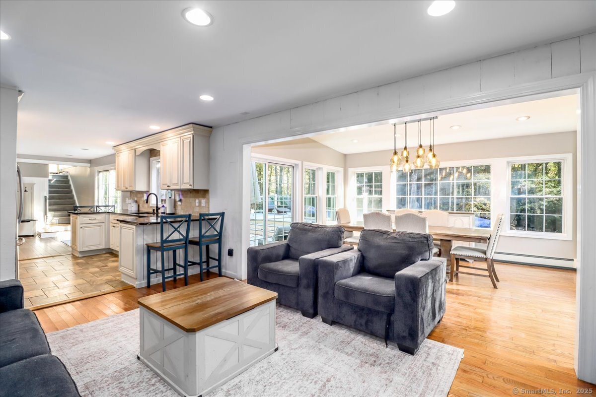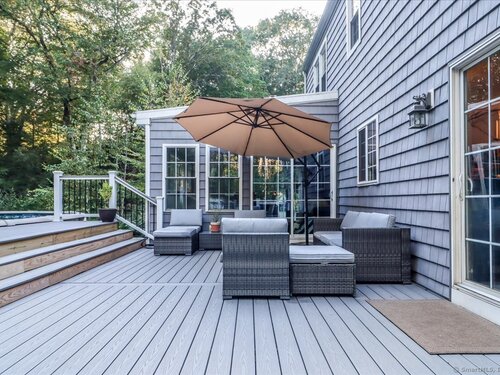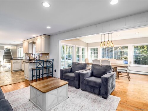 Welcome home to this beautifully maintained classic New England Cape, nestled on a quiet, tree-lined cul-de-sac! Brimming with natural light, warmth & timeless charm, this home offers the perfect balance of cozy comfort & modern convenience. Step inside to find gleaming hardwood floors throughout, creating a seamless & elegant flow from room to room. The heart of the home is the chef's kitchen, thoughtfully designed with granite countertops, custom cabinetry, and SS appliances. The sun-filled living, dining & family rooms offer inviting spaces to relax or entertain, with large windows that bring the outdoors in. Upstairs, you'll find 3 spacious bedrooms with great closet space & classic Cape-style charm. 2 tastefully updated full bathrooms (2025) complete the upper level. A standout feature is the bonus space above the garage (2023). This versatile flex room can serve as a 4th bedroom, home office, playroom, etc. Out back, enjoy your own private oasis. The spacious, level yard is fully fenced & includes a playground, cozy firepit area and a pool surrounded by an expansive deck (2024); perfect for summer barbecues, lounging, & making memories. Additional highlights include a new high-efficiency furnace, well tank & water softener! PLUS the roof, siding & windows are all less than 10 years old! Close to Brookfield public schools, local parks, shopping, and major commuter routes, this home offers a rare combination of charm, space & convenience!