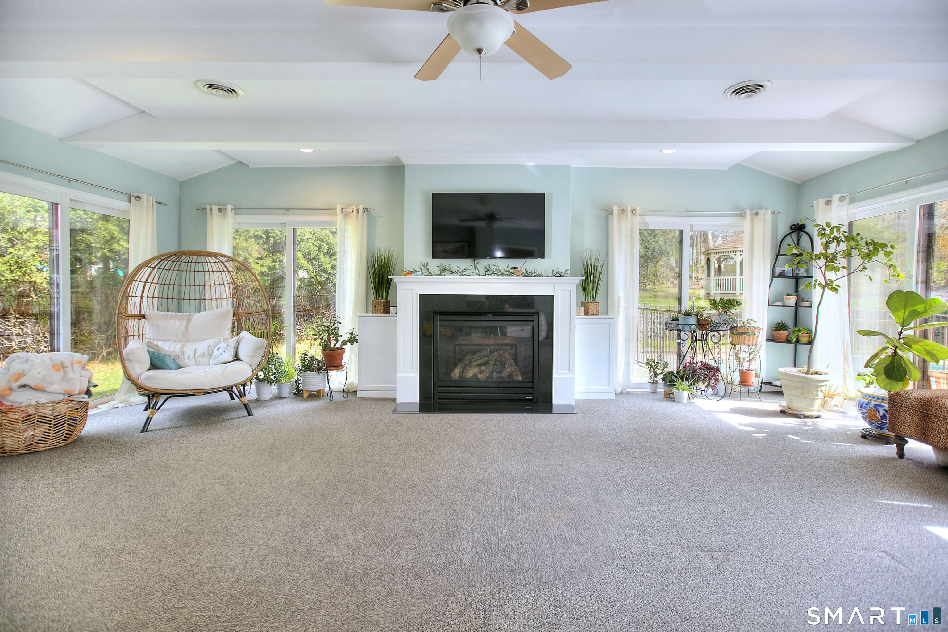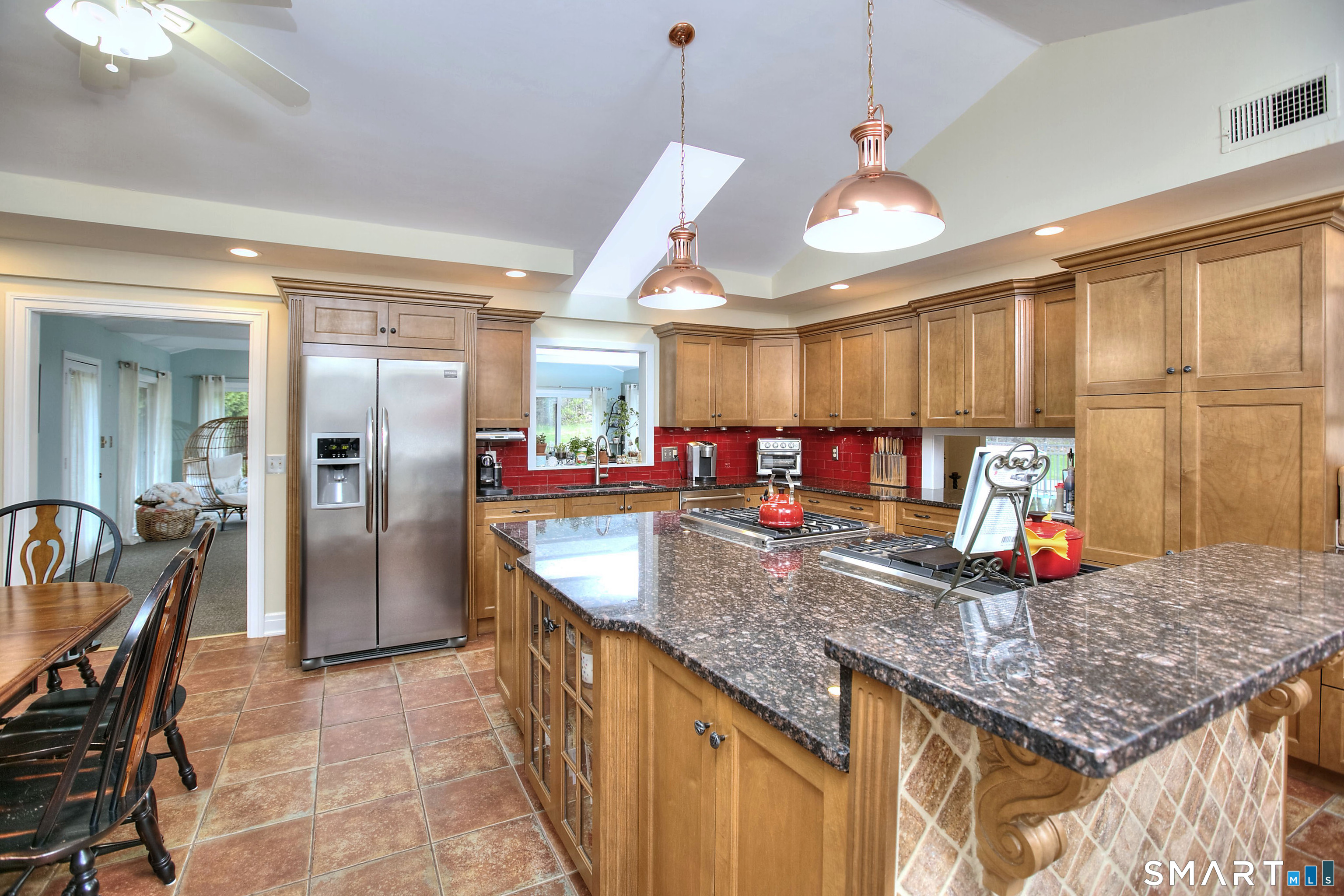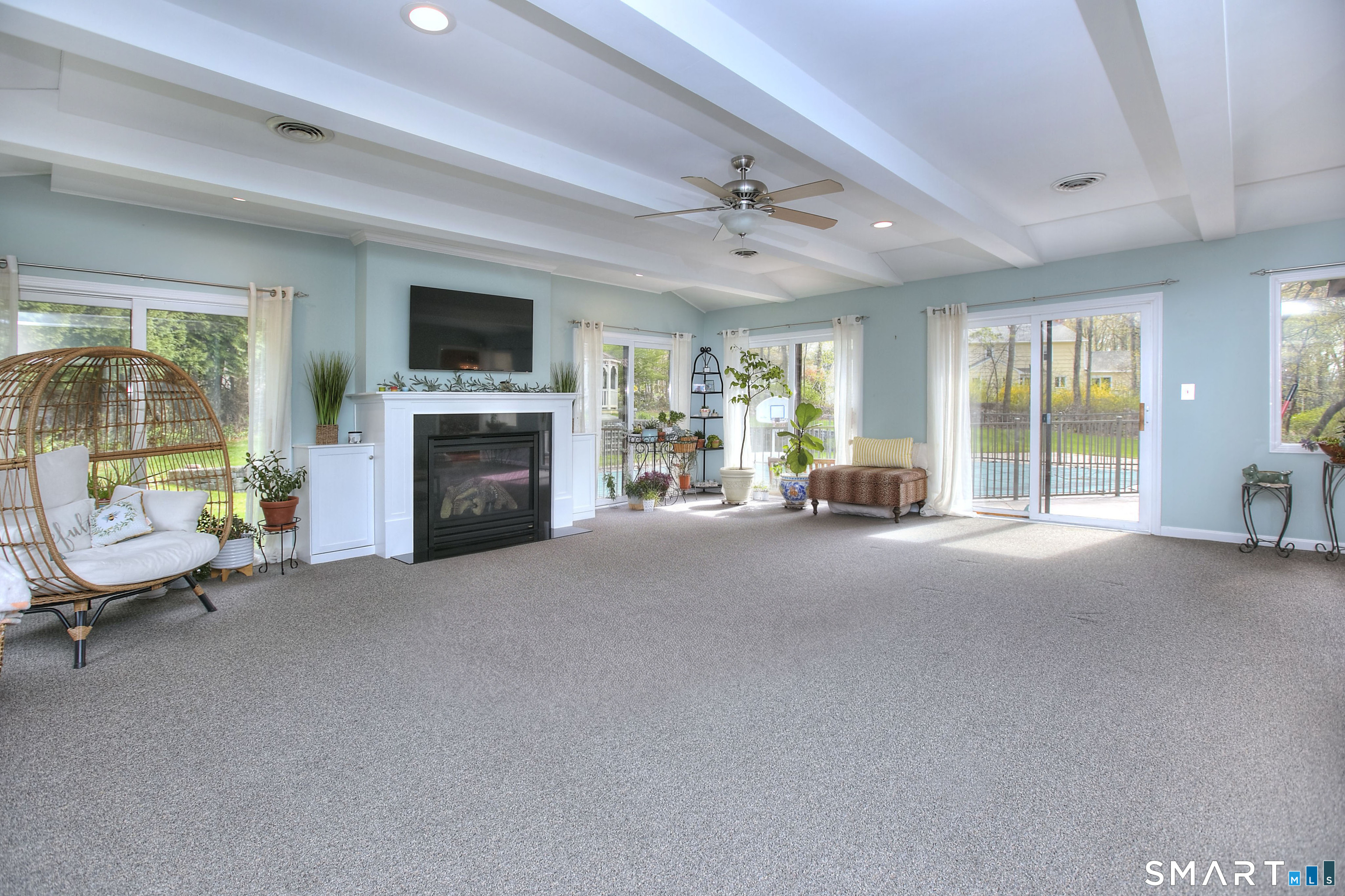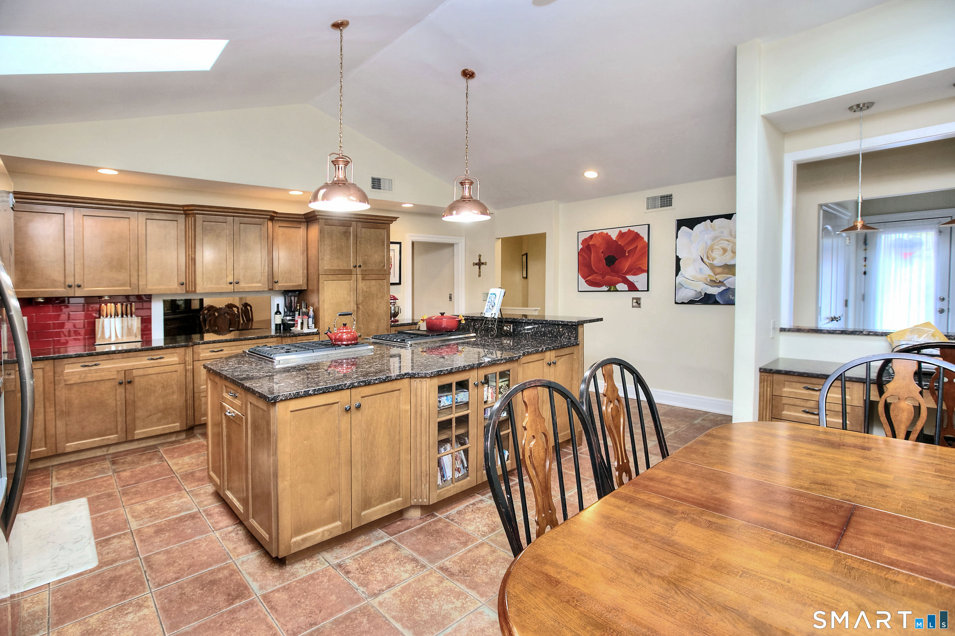 Tucked away on a highly sought-after lane, a sweeping driveway entry to this distinctive custom-built home. Masterfully blending character with privacy, a grand portico and mahogany double-doors open to a sunken main family room anchored by the stunning floor-to-ceiling fieldstone fireplace. The exposed timber beams through soaring vaulted ceilings of this great room, flowing seamlessly into a beautiful glass-wrapped sunroom. This heated space offers indoor-outdoor luxury, night or daytime sky viewing, and overlooks the stone patio surrounding the inground pool, with stone steps to the outdoor gazebo atop this resort-style oasis. The elegant open-archways thoughtfully designed for soft transitions to each room preserve an open-layout concept while curating each room's viewpoint into a dramatic setting. The formal dining room highlights this feature with matching arched windows, picture-framing the outdoor grounds and diffusing indoor natural light. The chef-inspired kitchen is a showpiece centering on an expansive granite island with dual gas cooktops, skylights, and striking copper pendants. This space flows effortlessly into the sun-drenched living room featuring a sleek gas fireplace, vaulted ceilings, and walls of sliding glass to the patio. A walk-out lower level with a gym & private room offers exceptional flexibility for an office or fourth bedroom, completing this architectural gem in a premiere, private enclave on this tree-lined cul de sac in the heart of Monroe.