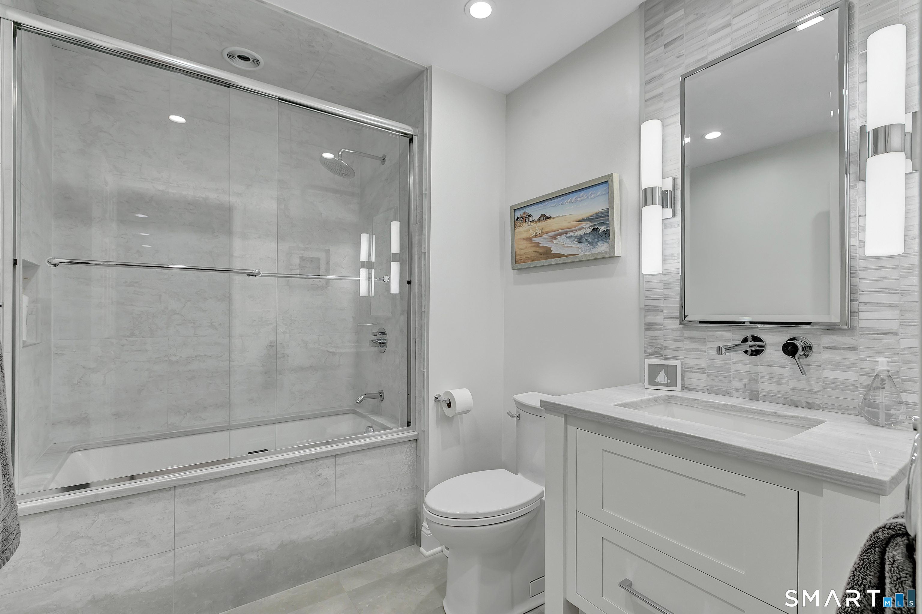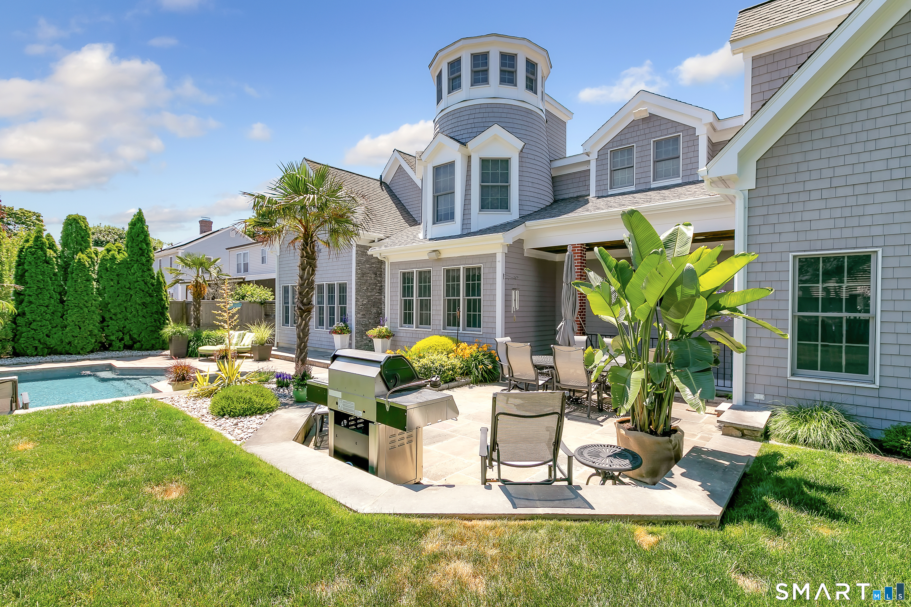 Welcome to 200 Third Avenue! This outstanding contemporary colonial is located in one of Fairfield's best kept secrets! Within a short walk or golf cart to all beaches, Stratford Point Lighthouse, golf, waterfront restaurants, deli, & ice cream this home is a perfect location to enjoy all that waterfront living has to offer. This captivating home boasts over 5300 square feet of living space and is nestled on a .30 acre level lot with impeccable landscaping and attention to outdoor living. A tasteful walkway lends itself into a gorgeous entrance leading into a custom eat in kitchen with granite counters, stainless steel appliances, recessed lighting, and attached to a light and bright sunroom. There is a banquet sized dining room with fireplace for all of your family's gatherings, and a step down to a large living room with an abundance of natural lighting as well as a home office. There are four generous sized bedrooms along with a turret office with long range water views, 4.5 updated baths, hardwood flooring throughout, new ultra efficient boiler and hot water heater installed in 2026, new gas insert in the fireplace, surround sound, irrigation system, and central AC. Exquisite outdoor space in which you can relax by a palm tree and enjoy a salt water inground pool and spa which is private and fenced in! There is also a finished lower level along with a game room with fireplace and a full gym for all of the exercise enthusiasts for fitness goals and needs! Come See!