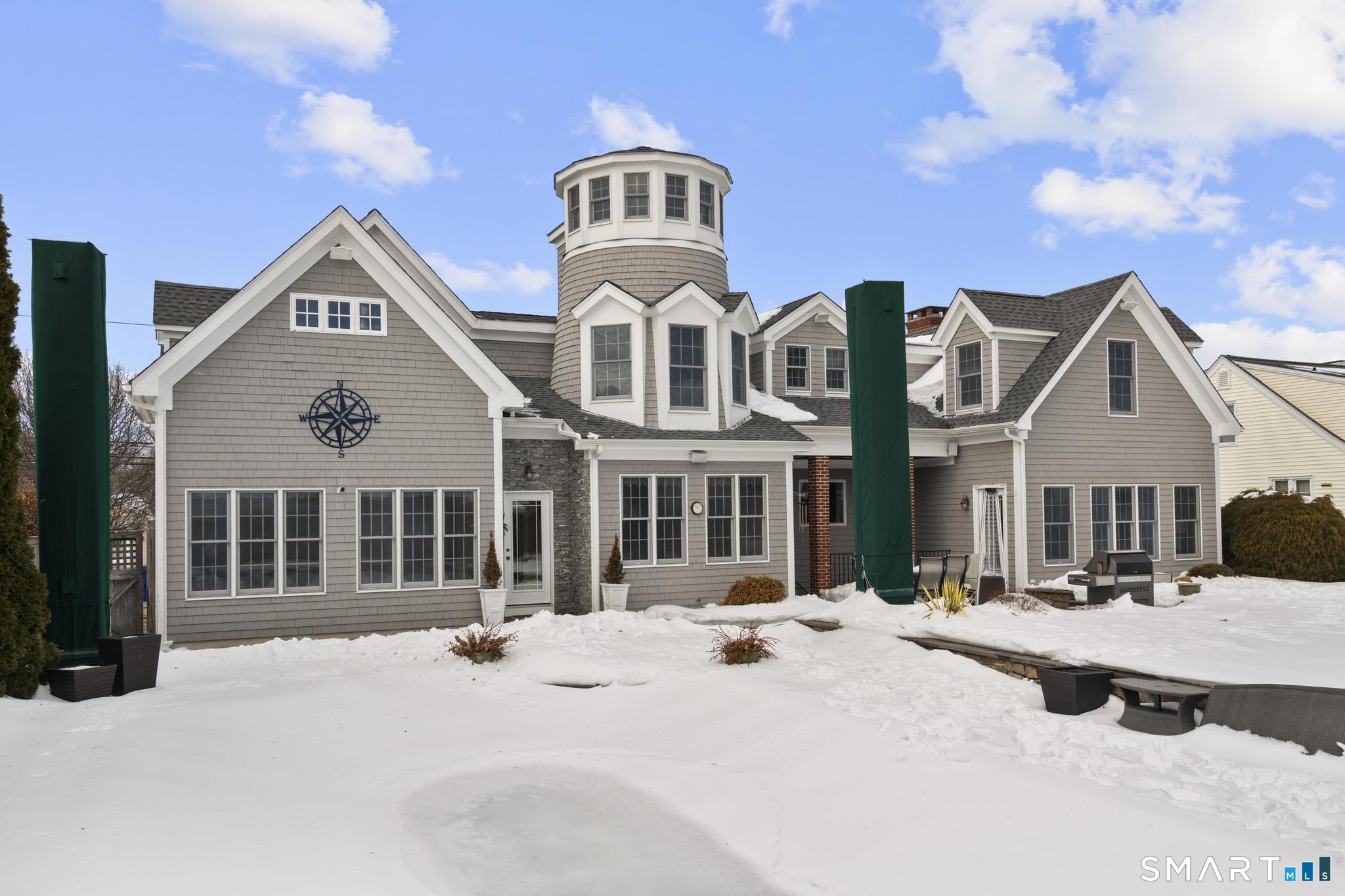 Welcome to 200 Third Street! This outstanding contemporary colonial is located in one of Fairfield's best kept secrets! Just in time to live in this community on Connecticut's Gold Coast jutting into the heart of Long Island Sound! Within a short walk to all beaches, this is a perfect time to enjoy all that waterfront living has to offer. This captivating home boasts over 5300 square ft and is nestled on a .30 acre level lot with impeccable landscaping and attention to outdoor living. A tasteful walkway lends itself into a gorgeous entrance leading into a custom eat in kitchen with granite counters, stainless steel appliances, recessed lighting, and attached to a light and bright sunroom. There is a banquet sized dining room with fireplace for all of your family's gatherings, and a step down to a large living room with an abundance of natural lighting as well as a home office. There are four generous sized bedrooms along with a turret with water views of Long Island sound, 4.5 updated baths, hardwood flooring throughout, new ultra efficient boiler and hot water heater installed in 2026, new gas insert in the fireplace, surround sound, irrigation system, and central AC. Exquisite outdoor space in which you can relax by a palm tree and enjoy a salt water inground pool and spa which is private and fenced in! There is also a finished lower level along with a game room with fireplace and a full gym for all of the exercise enthusiasts for fitness goals and needs! Come See!
