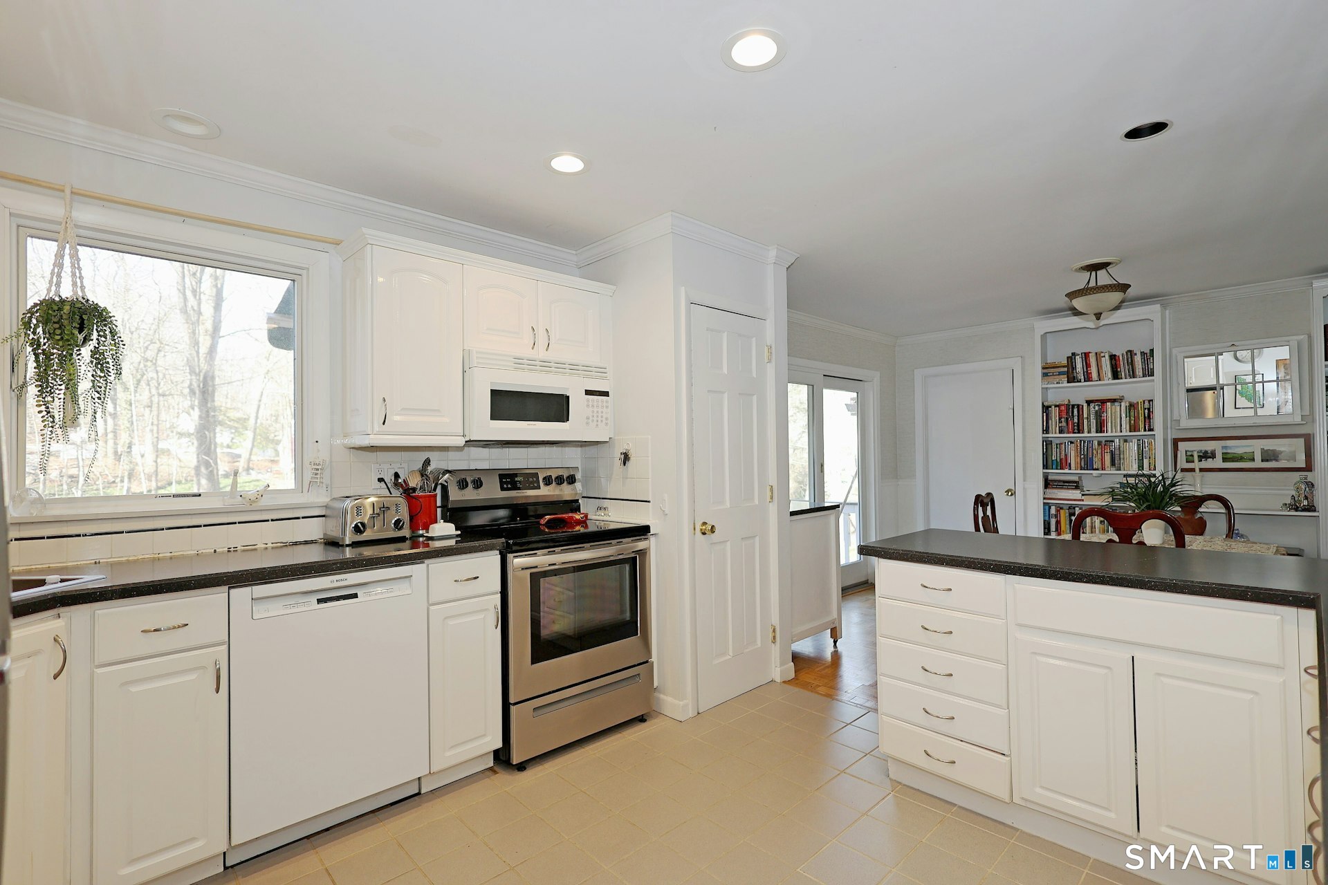 Located in the desirable Lake Hills section of Fairfield, this charming three-bedroom Cape offers comfort, character, and an ideal setting. Walking through the front door, you are welcomed into the center hall and immediately feel the warmth and charm of the home. The main level features an open-concept living space with a spacious living room with fireplace that flows seamlessly into the dining area and kitchen-perfect for everyday living and entertaining. The kitchen offers plenty of counter space and storage. Through the sliding glass door, step out onto the rear deck and enjoy beautiful views of the grounds and river. Also on the main level is a generously sized bedroom with a walk-in closet and convenient access to the full bath. The second floor offers a large primary bedroom with ample closet space, an additional bedroom, and a full bath. The finished lower level provides additional living space with a family room, office, and laundry room. Membership in the Lake Hills Association provides access to the lake and private beaches, offering wonderful opportunities for swimming, kayaking, and enjoying the outdoors. Completing the home is a two-car garage. Move right in and enjoy everything this special home and Lake Hills lifestyle have to offer. Click the link for the virtual tour and to view floor plans.
