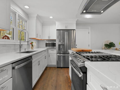 Everything Retouched | 2+ Acres | Expansion Opportunity Located in desirable Greenfield Hill, this fully remodeled single-level ranch offers estate-style living with exceptional expansion potential. Set on over 2 level acres-the smallest home on a street of significantly larger residences-this property presents a rare opportunity to build equity and expand. The usable yard features stone walls, classic New England charm, and privacy, with inland wetlands toward the rear. Ample space for outdoor living or a future pool, plus a chicken coop and storage barn/shed for added versatility. Exterior features include a newer roof, gutter guards, new cedar shingles, cable railing, cedar tongue-and-groove deck ceiling, and high-end materials throughout. Take note of the incredible screened-in back deck, composite front porch, new windows, attached 2-car garage, and storage shed. Above-and-beyond mechanicals include propane heat fueled home w/ two, 100 gallon tanks, Trane HVAC central air, Takagi tankless hot water, fully fenced backyard, and Generac generator. Freshly painted interior with hardwood floors, updated kitchen with extensive cabinetry, quartz island, coffee bar, pantry, and abundant storage. Additional highlights include an ensuite primary bedroom, fireplaced living room, ceiling fans, full unfinished basement spanning the home, and smart home Lutron Caseta system. See full list of highlights and features.