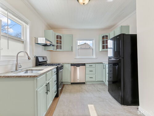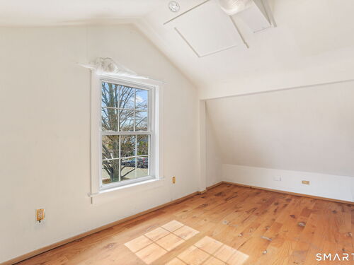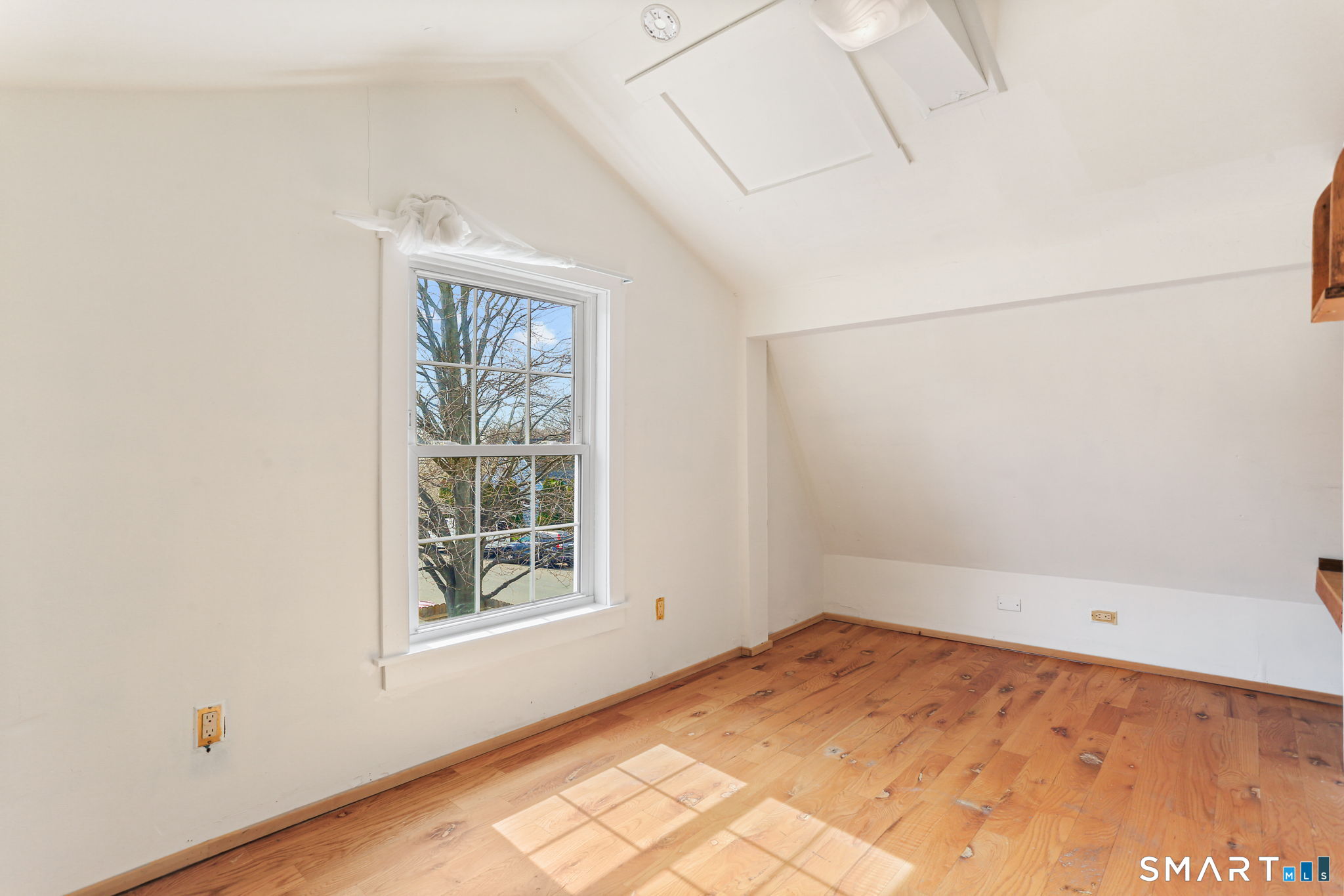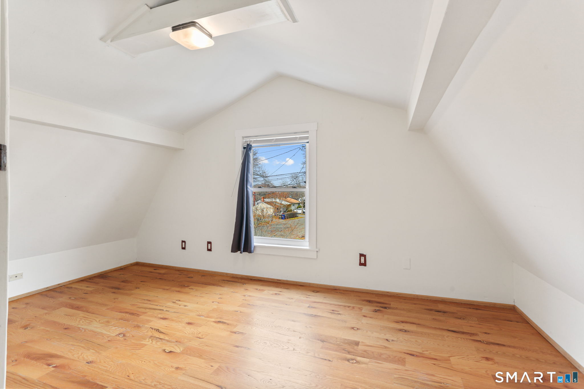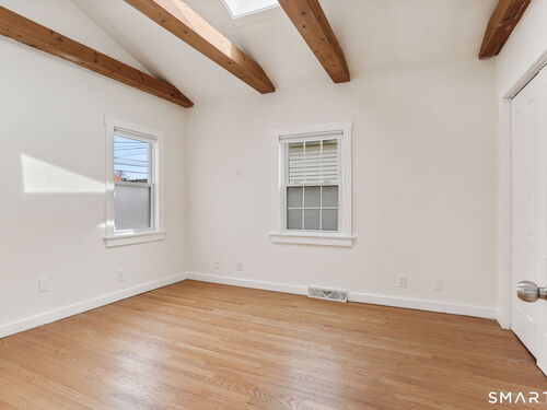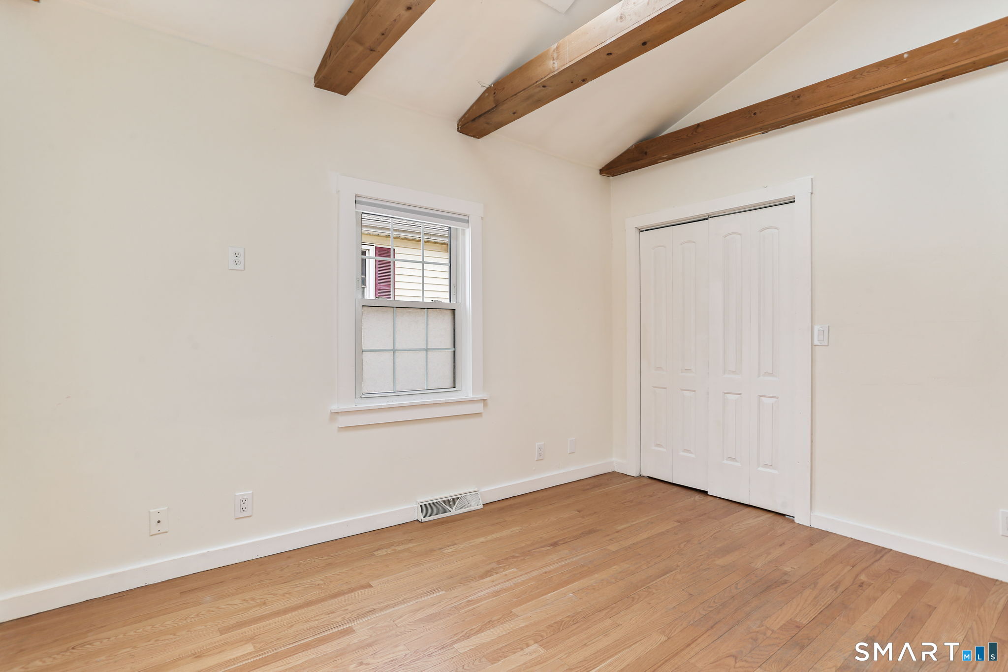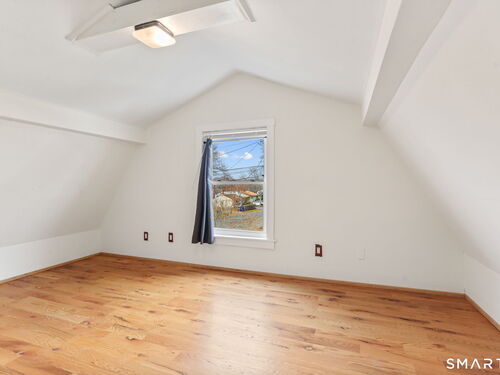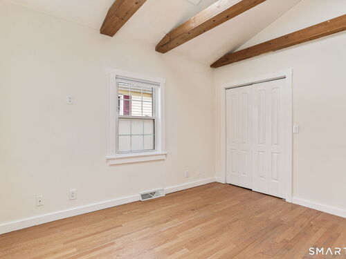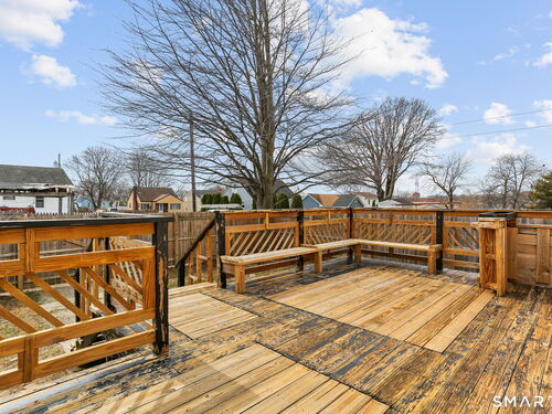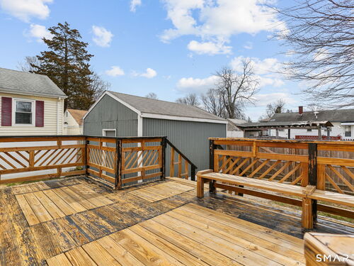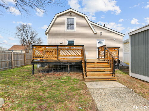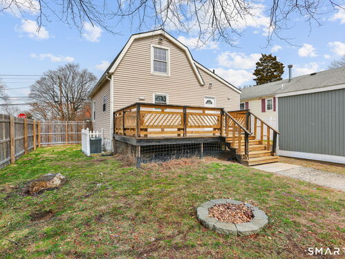 Welcome to 209 Trumbull Ave - a lovely 3-bedroom, 1-bath home offering a flexible layout, inviting living spaces, and a strong indoor-outdoor connection. The main level features a bright and comfortable living room, an updated kitchen with granite counters and ample cabinet space, and a dining area that flows seamlessly to the oversized rear deck. The layout provides an easy, natural flow between spaces while still offering defined areas for everyday living. A first-floor bedroom with high ceilings and beautiful wood beam detail, along with a full bathroom, adds excellent versatility for guests, a home office, or convenient single-level living. Upstairs, you'll find two additional bedrooms with vaulted ceilings that bring warmth and character rarely found at this price point. This level offers a cozy and functional separation from the main living areas. The outdoor space is a standout, with a large deck that extends your living area, a fully fenced yard offering privacy and room to enjoy, and a fire pit area perfect for relaxing or entertaining. A detached shed provides additional storage, and the long driveway allows for ample off-street parking. Recent improvements include updates to major systems such as the roof, furnace, and central air, offering added peace of mind. Conveniently located near shopping, dining, parks, and major commuter routes, this home presents an excellent opportunity to own a 3-bedroom property with flexible living space, character, and value.