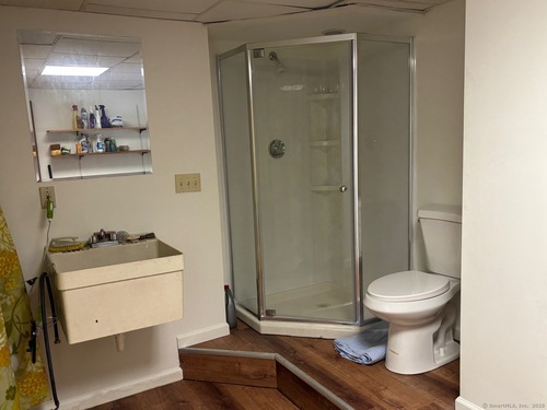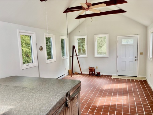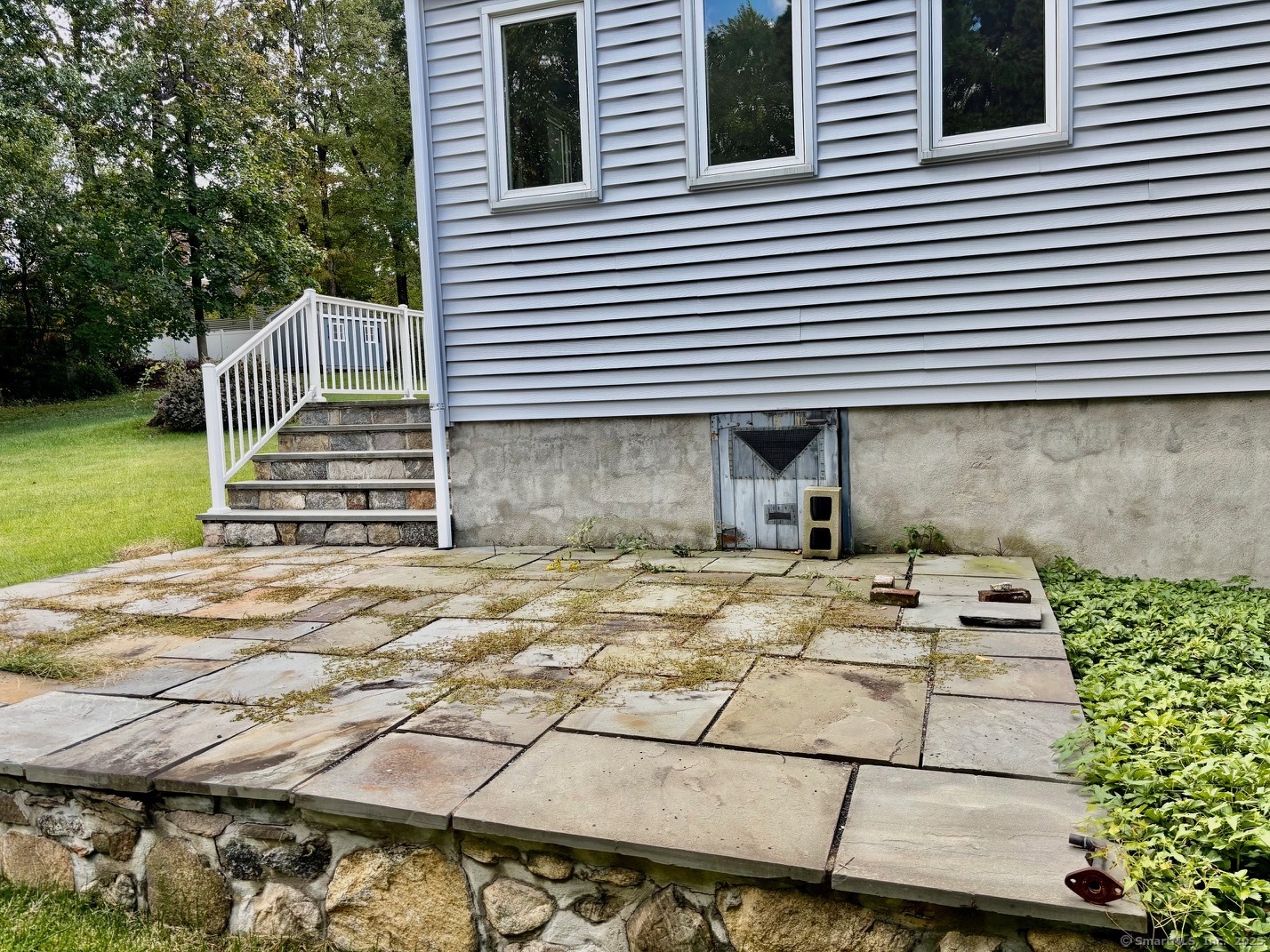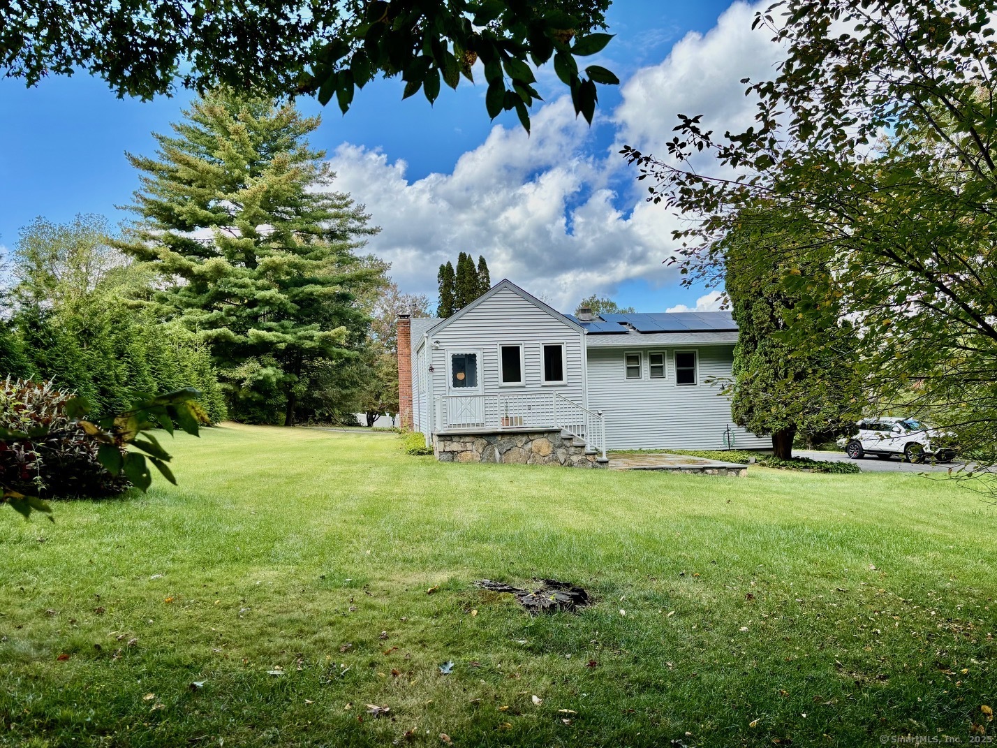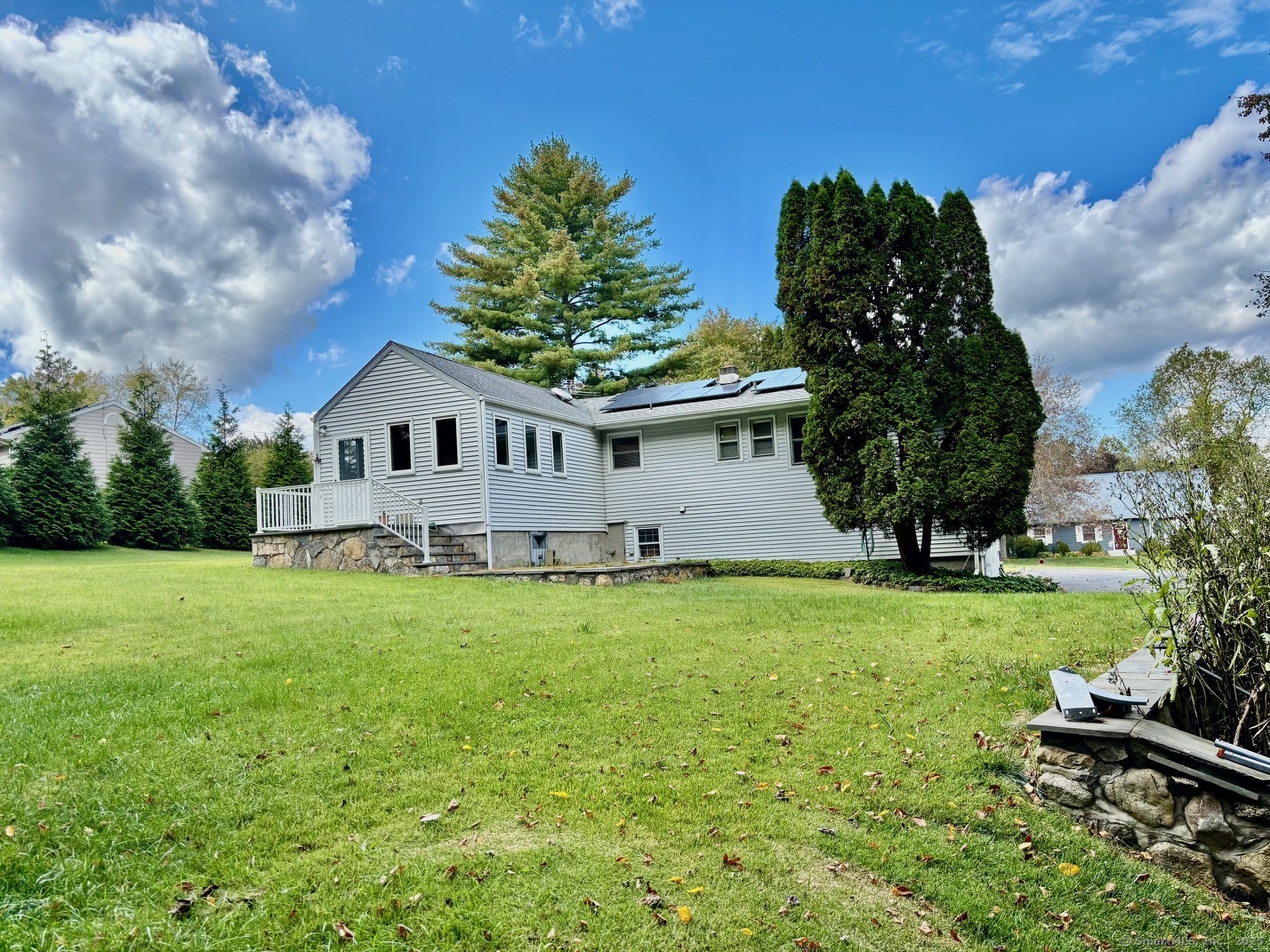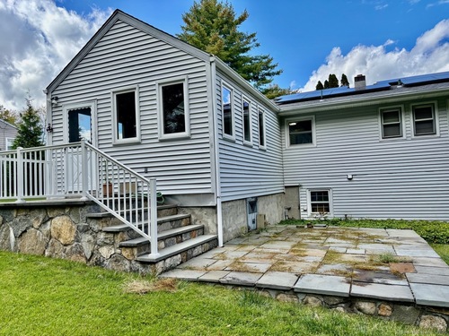 Welcome to 21 Adams Dr. This home offers 3 bedrooms 2.5 baths, Updated kitchen, nice size dining room and large living rm with fireplace. Large family rm with vaulted ceilings and lots of windows and tile floor currently used for a hot tub. backdoor opens to large stone patio. Large private level backyard. Lower level offers great rm with wood stove. Separate laundry rm with full bath. 2 car garage. Main level has hardwood floors under the carpet. Great neighborhood, connected to town sewers. Sewer assessment has a small balance to be assumed by the new buyers. Very quiet subdivision convenient for commuting and shopping. House has been well maintained and being sold As Is.