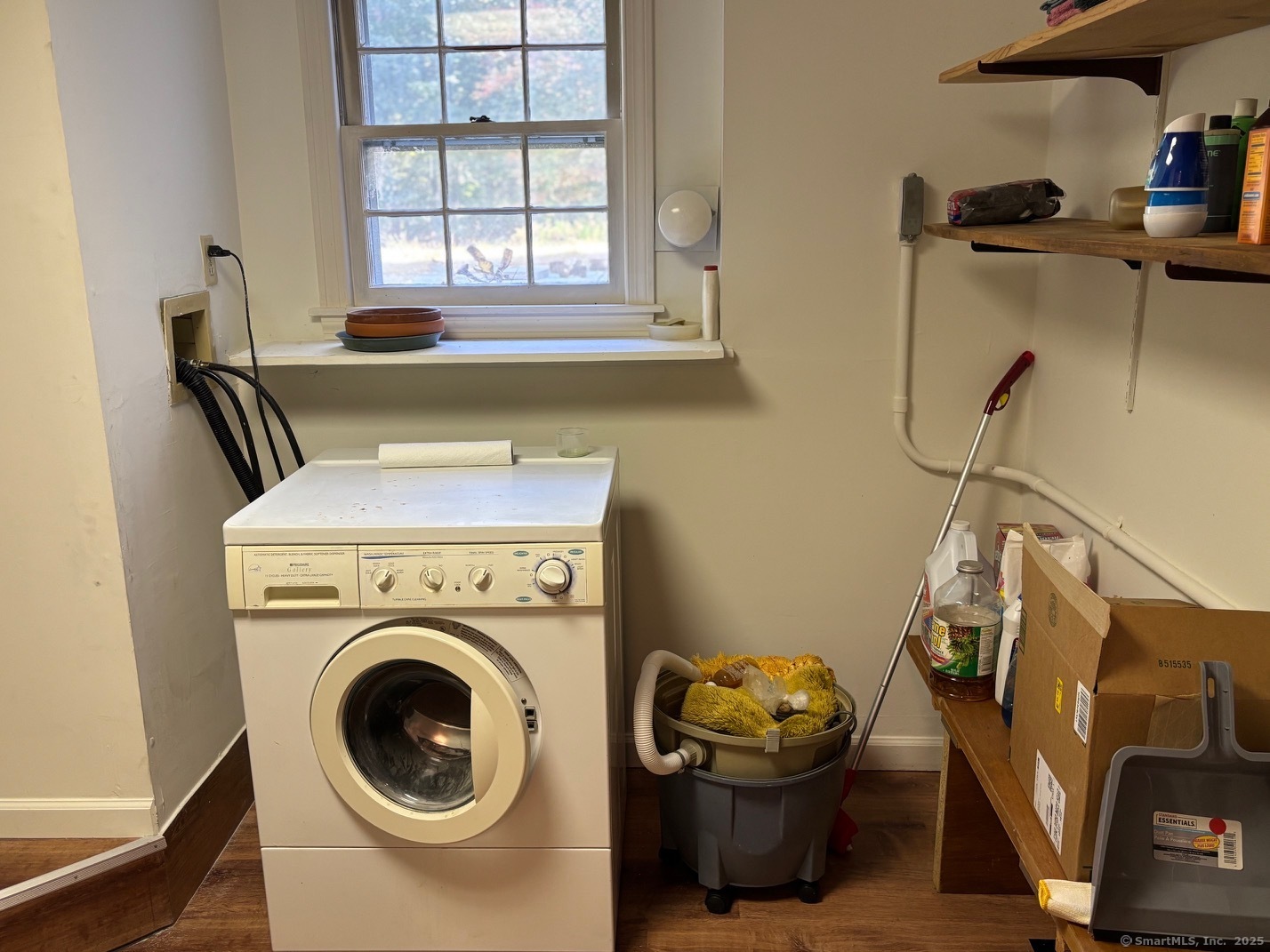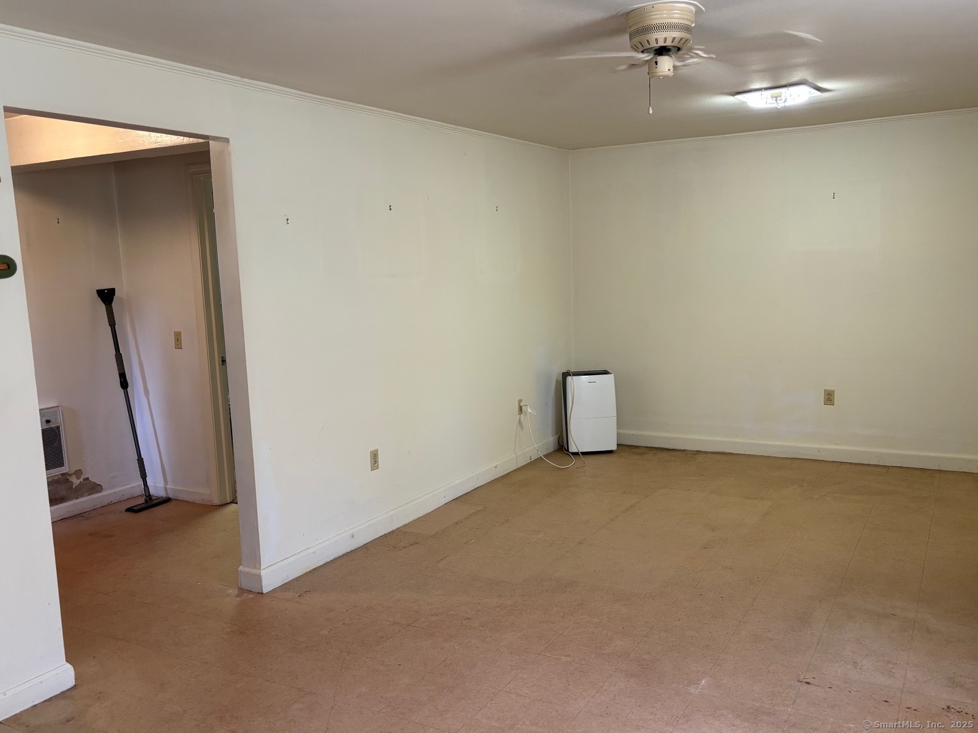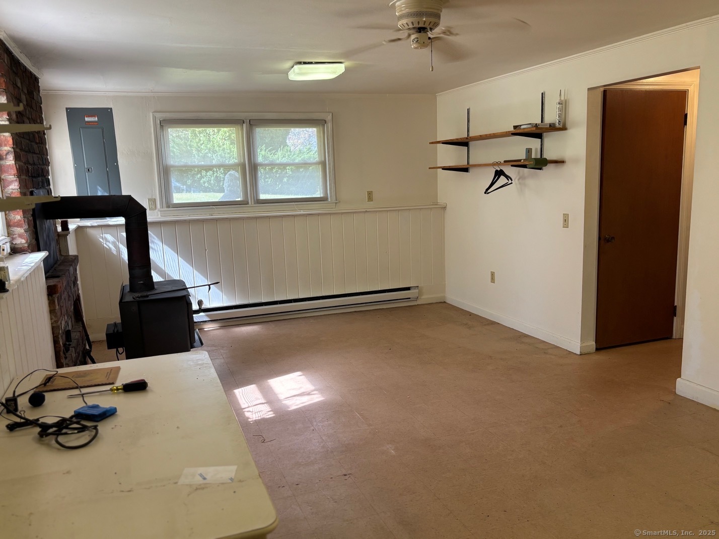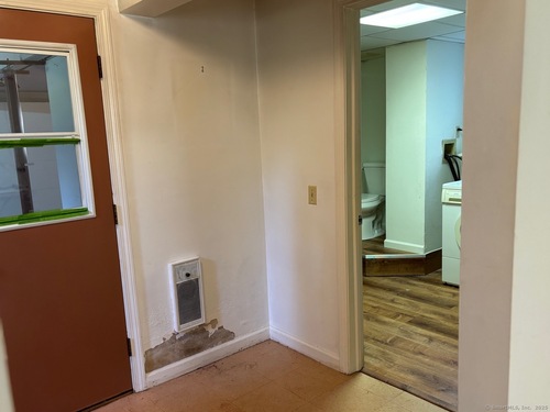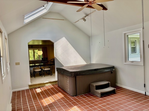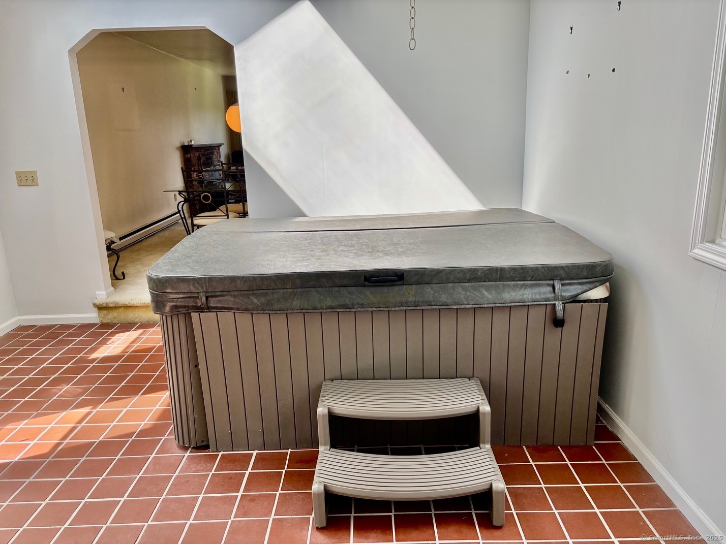 Welcome to 21 Adams Dr. This home offers 3 bedrooms 2.5 baths, Updated kitchen, nice size dining room and large living rm with fireplace. Large family rm with vaulted ceilings and lots of windows and tile floor currently used for a hot tub. backdoor opens to large stone patio. Large private level backyard. Lower level offers great rm with wood stove. Separate laundry rm with full bath. 2 car garage. Main level has hardwood floors under the carpet. Great neighborhood, connected to town sewers. Sewer assessment has a small balance to be assumed by the new buyers. Very quiet subdivision convenient for commuting and shopping. House has been well maintained and being sold As Is.