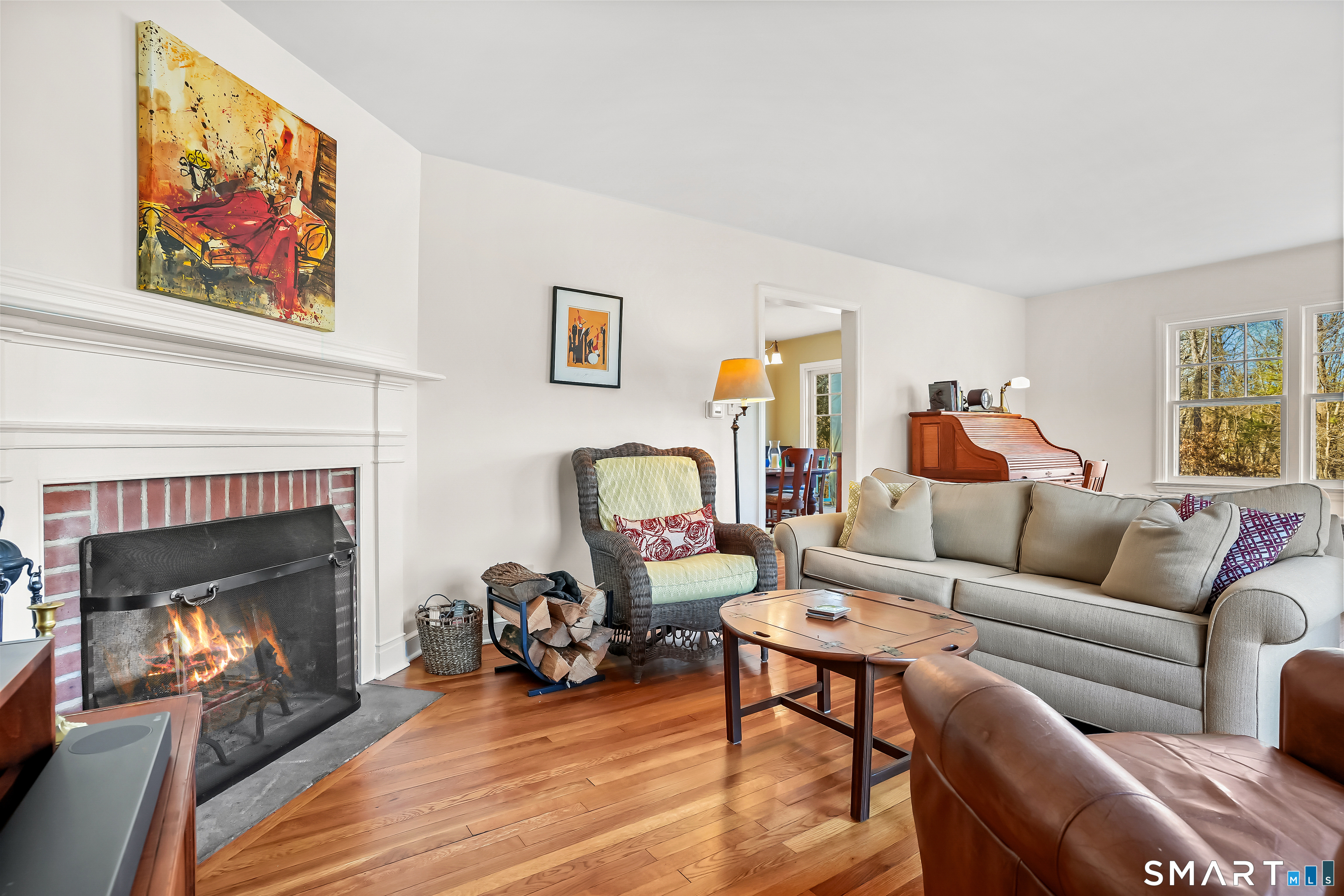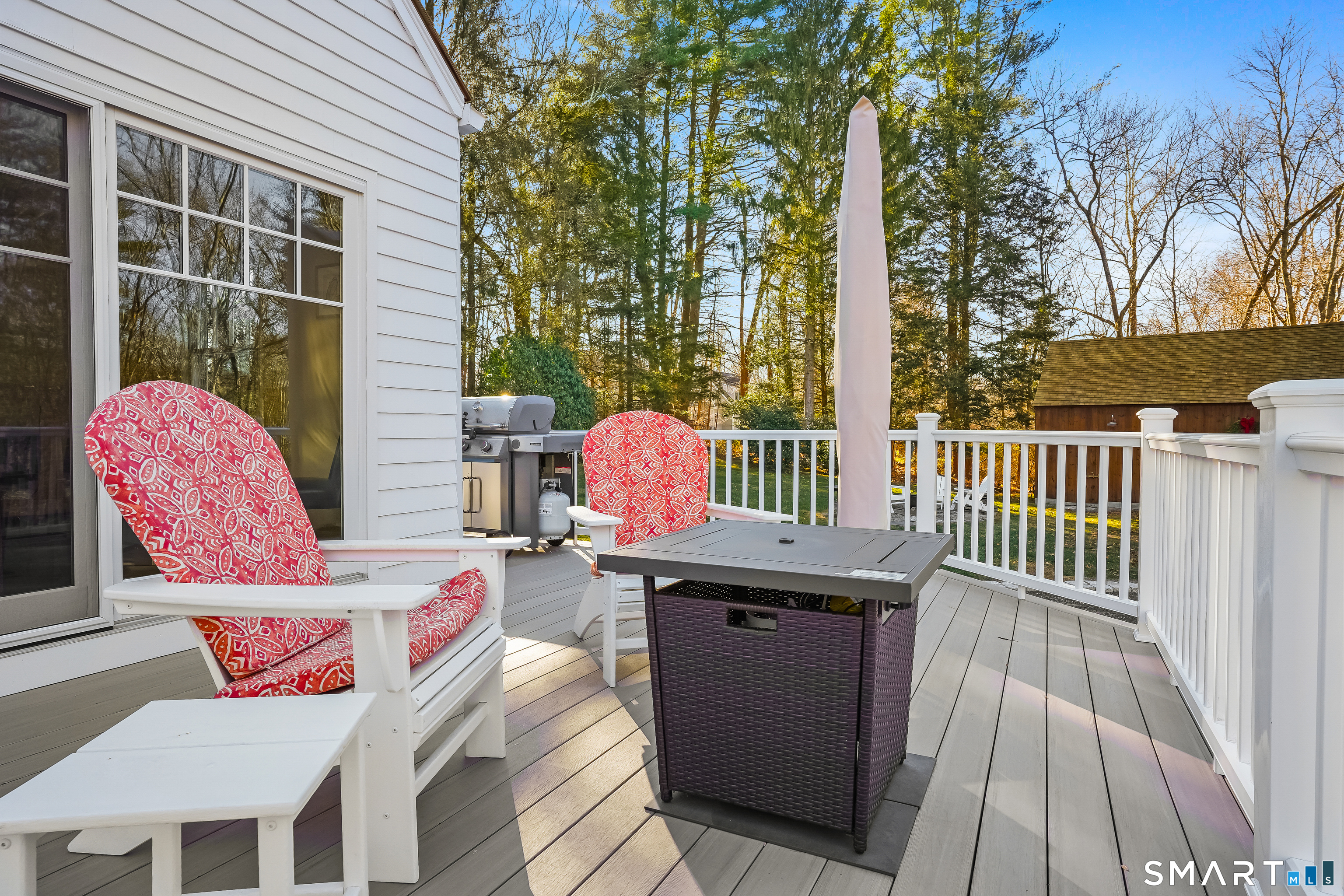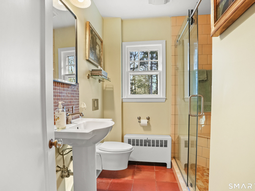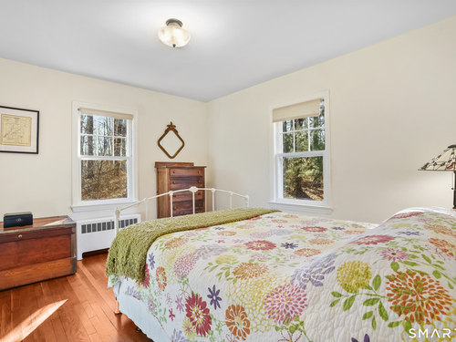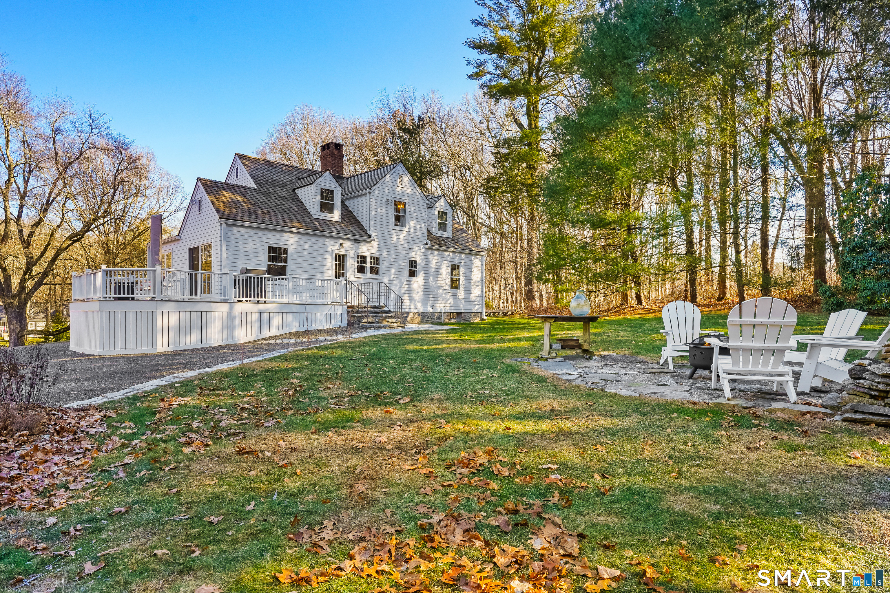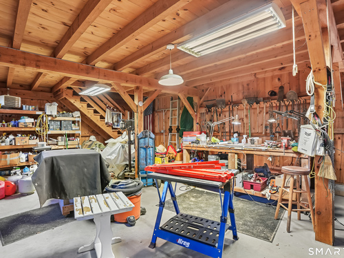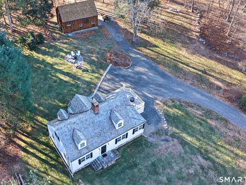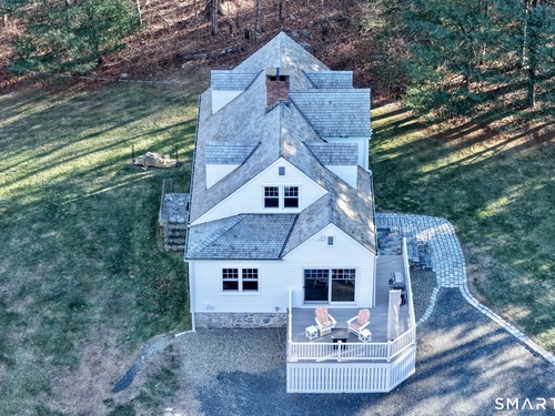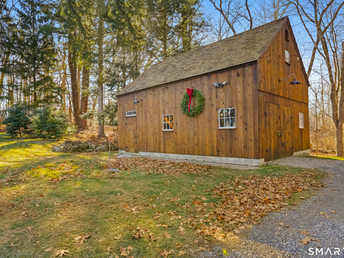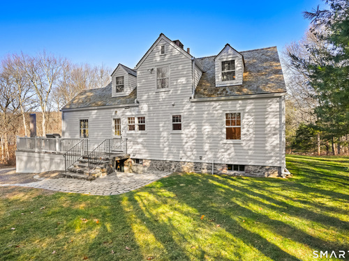 Tucked along a country lane, this exquisite cape style home was built from a classic Better Homes & Gardens plan. It offers timeless character & craftsmanship. Pull up & fall in love with the charm of the crescent moon shutters & newly shingled cedar roof. Step inside the foyer & feel the warmth of this home. The spacious living room with hardwood floors & pretty fireplace greets you. The kitchen has gorgeous custom inset door cabinetry & stainless appliances. It opens directly to the dining room which looks out to the wrap-around composite deck overlooking the private property. There are 2 bedrooms on the main level of this home and a full bath. Walking upstairs you will see the exposed brick leading to 2 sunlit oversized bedrooms & full bath. The lower level has laundry and storage, but also a fireplace which lends itself to future finishing. The outdoor space is a perfect oasis and features the deck, patio and firepit area. The beautifully tended gardens give year-round interest and include a wildflower area as well as pollinator garden. Meander the walking paths through wooded areas bordered by stone walls. A 2-story 20x30 post & beam barn/workshop is a showstopper and perfect for a hobbyist, woodworker, contractor or car storage. Located in tranquil Easton, this home has the feel of a weekend getaway, yet convenient to Fairfield, Westport & NYC. Enjoy the beauty of New England every season of the year in this meticulously maintained home.