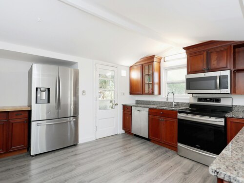 Soulful cottage "Little by Little" directly across from Lake Mamanasco with optional membership to the Mamanasco Beach Club ($120 for individual, $200 for families, and $75 for seniors) for swimming, barbecues, picnics, fishing, canoeing/kayaking and more, plus free state-owned boat launch (non-motorized) on the southwestern end of the lake (https://mamanasco.com/). This updated home offers a modern open floor plan and one level living. The light, bright, and expansive great room combines both living and dining areas and is open to the updated kitchen with granite counters, peninsula with bar overhang, and stainless steel appliances. This sparkling home offers an updated powder room with bead board wainscot, laundry room, and ensuite bedroom with updated full bath, also featuring beadboard and subway tiled tub/shower. This idyllic lake community is just 10 minutes to downtown Ridgefield and 58 miles to Midtown, yet offers an active lake lifestyle and peaceful views of the everchanging seasons. Of note: The land associated with this home has always been rented, but the owner is in the process of finalizing the acquisition of the .127 acres prior to closing. Taxes shown of $2,863 are based on the following: current taxes on the home alone without the land are currently $863, plus the landlord pays approx. $2K on the land; however, taxes are predicted to go up once the house and land are combined. See map attached of subdivision.