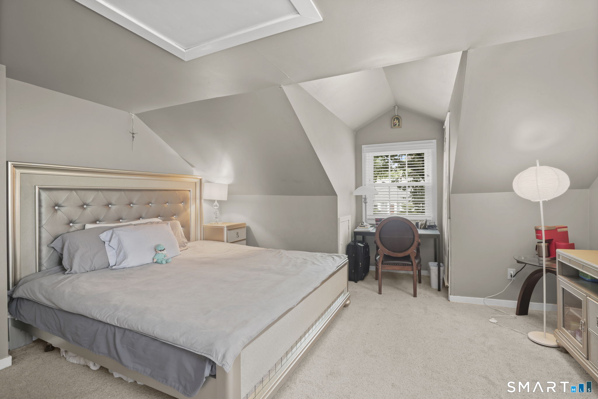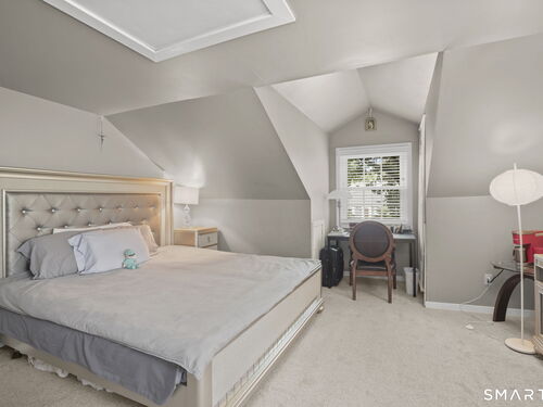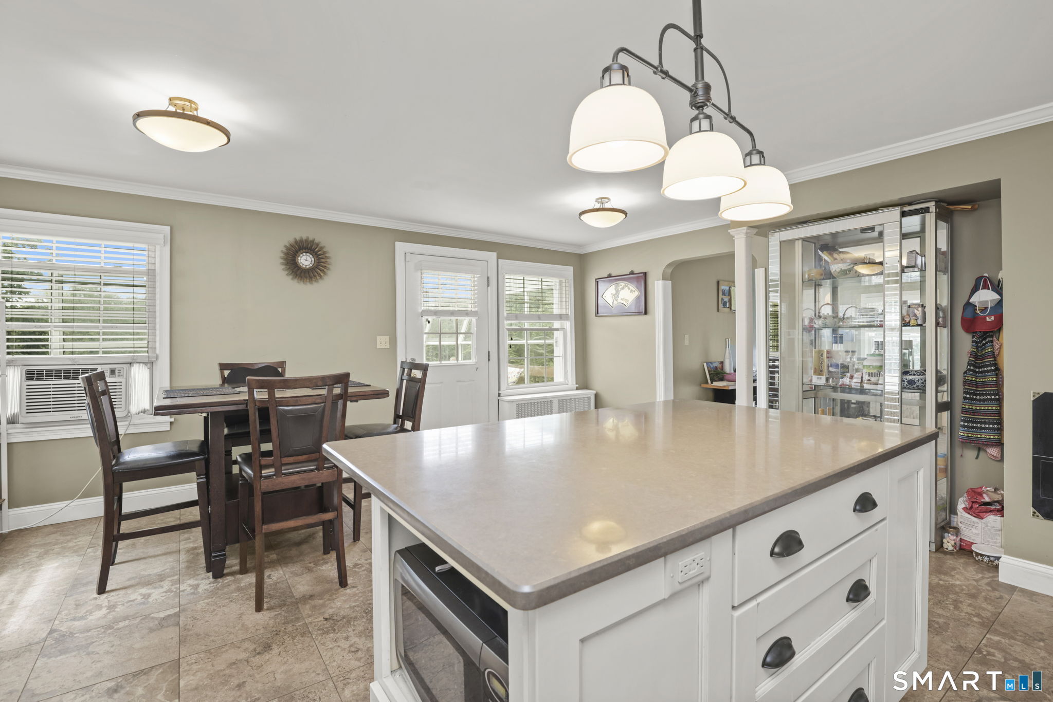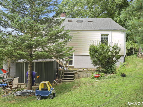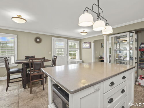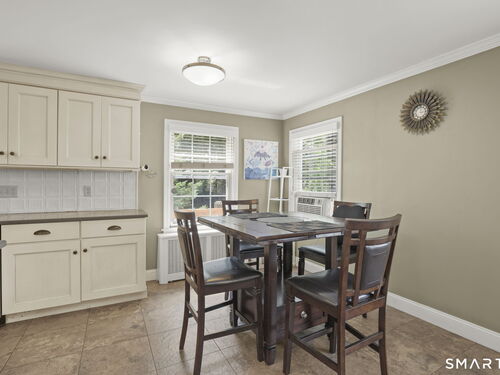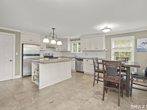 3-4 bedroom Cape located on a quiet Nichols cul-de-sac! This charming and spacious home offers a bright, open floor plan ideal for everyday living and entertaining. The exceptionally large eat-in kitchen, renovated approximately 8 years ago, features white shaker cabinetry, Caesarstone countertops, stainless steel appliances, tile flooring, a center island with seating, and a generous dining area. Because of the oversized kitchen, the formal dining room can easily serve as a 4th bedroom or first-floor office and includes a closet. The inviting living room offers hardwood floors, a cozy wood-burning fireplace, and a large picture window overlooking the private yard. The main level also includes two well-sized bedrooms and a full bath. Upstairs you'll find two additional bedrooms with wall to wall carpeting and a second full bath. Enjoy outdoor living on the large deck overlooking the .49-acre level lot-perfect for relaxing or entertaining. Additional highlights include vinyl siding, newer windows, architectural roof, newer driveway and brick walkway, partially finished walk-out basement with storage, and a private setting. Conveniently located close to schools, parks, Pinewood Lake, shopping, restaurants, and major highways.