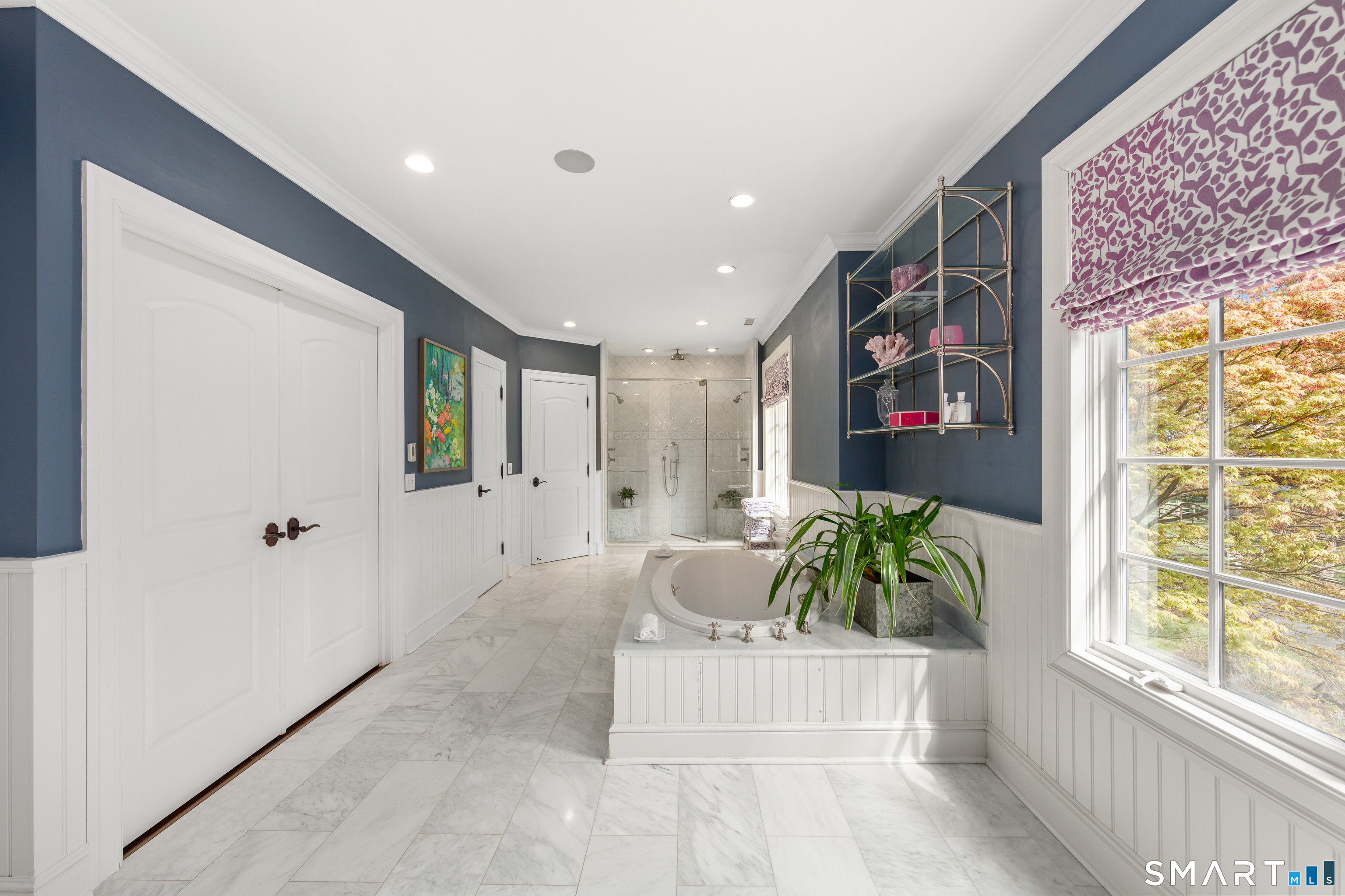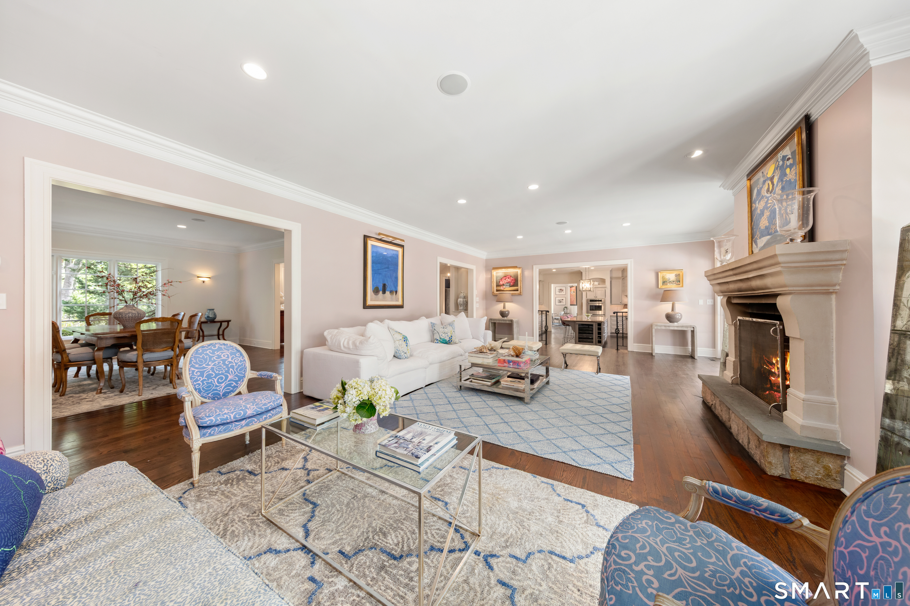 Tucked into one of East Norwalk's most desirable streets in Sasqua Hills, 22 Cavray Road presents 7,800 sq ft of refined, flexible living space in a location defined by both convenience and coastal appeal-just minutes to the beach, train, and the centers of Westport and South Norwalk. Designed with both scale and elegance in mind, the home features sun-filled interiors, oversized windows, high ceilings, hardwood floors, and custom millwork throughout. The kitchen serves as a central gathering space, appointed with a generous island, quality appliances, and a spacious breakfast area, and flows seamlessly into the home's principal living spaces-well suited for both everyday living and entertaining. The main level offers a balanced composition of formal and informal rooms, anchored by two honed stone fireplaces that lend warmth and architectural character. Three sets of French doors open to a bluestone patio with outdoor fireplace and koi pond, creating a private & inviting outdoor setting. A separate lower-level bedroom, full bath, and den provide a well-considered arrangement for guests, in-laws, or au pair. Upstairs, the primary suite offers a quiet retreat with two walk-in closets and a luxurious bathroom finished in Carrara marble. Three additional en-suite bedrooms, a media room, and a finished third floor provide exceptional flexibility for a variety of living arrangements. A rare opportunity in the coveted Sasqua Hills neighborhood!