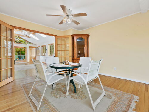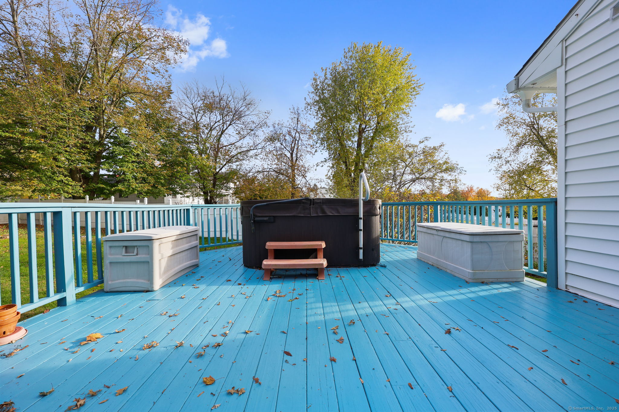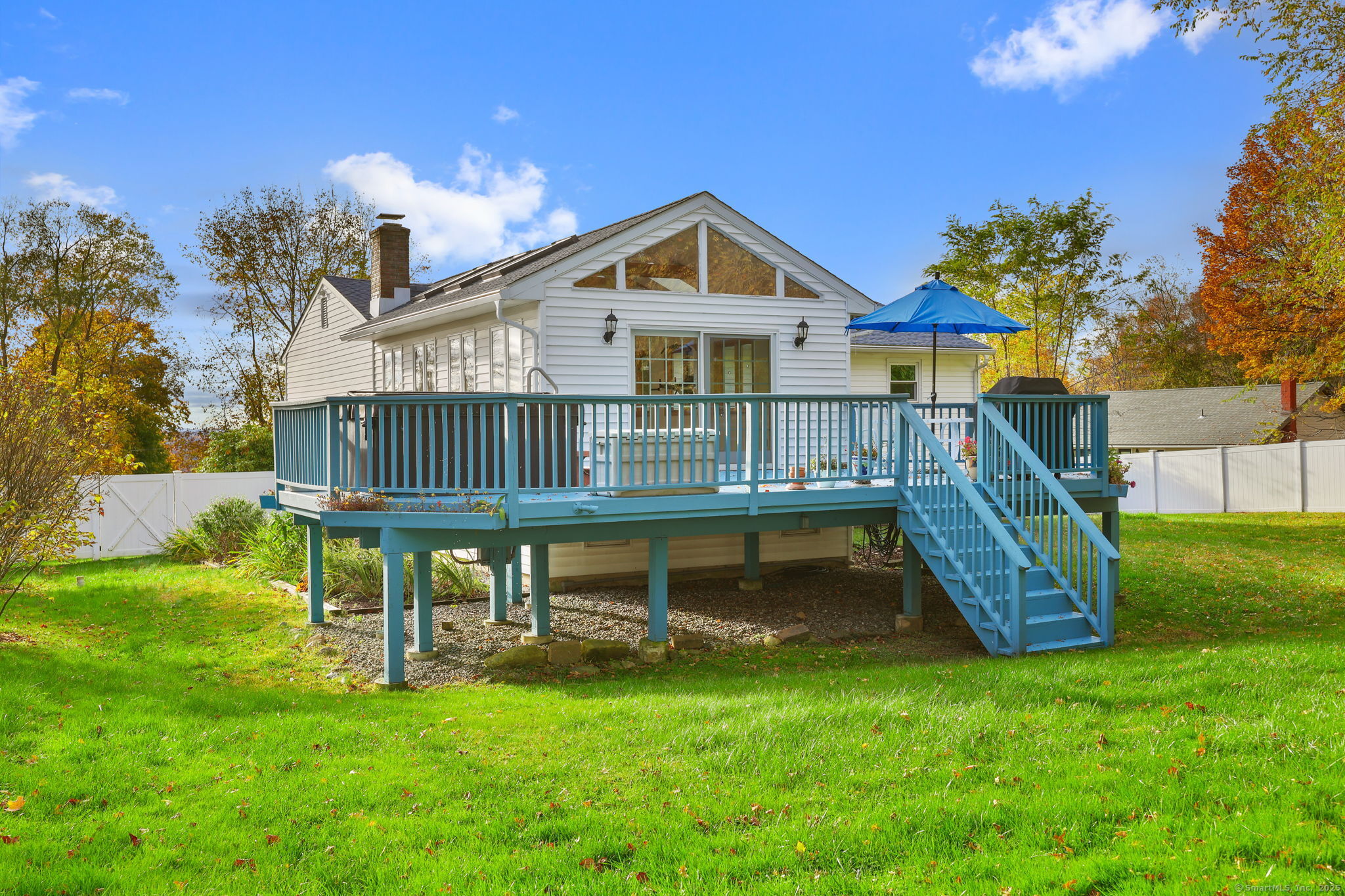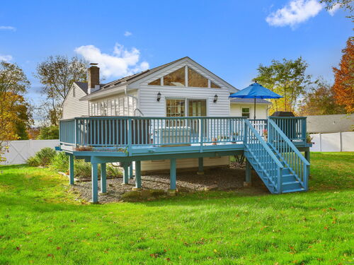 Welcome to this beautifully maintained 3-bedroom, 1.5-bath home located in desirable New Fairfield, CT-just minutes from the NY border and Ball Pond. The main level offers a light and bright kitchen, a spacious living room with distant views, and an extended family room/sunroom featuring walls of windows and French doors that open to a large, expansive deck-perfect for entertaining or relaxing outdoors. The main floor also includes the primary bedroom, two additional bedrooms, and a full bath. The finished lower level provides flexible living space with a family/rec room featuring a cozy fireplace, an office area, half bath, and laundry room. Enjoy the outdoors on the beautifully landscaped, fenced-in property that offers plenty of natural sunlight and privacy. A 1-car garage completes this lovely home. This property combines comfort, charm, and convenience-ideal for commuters or anyone seeking the best of country living with close proximity to NY and local lakes.
